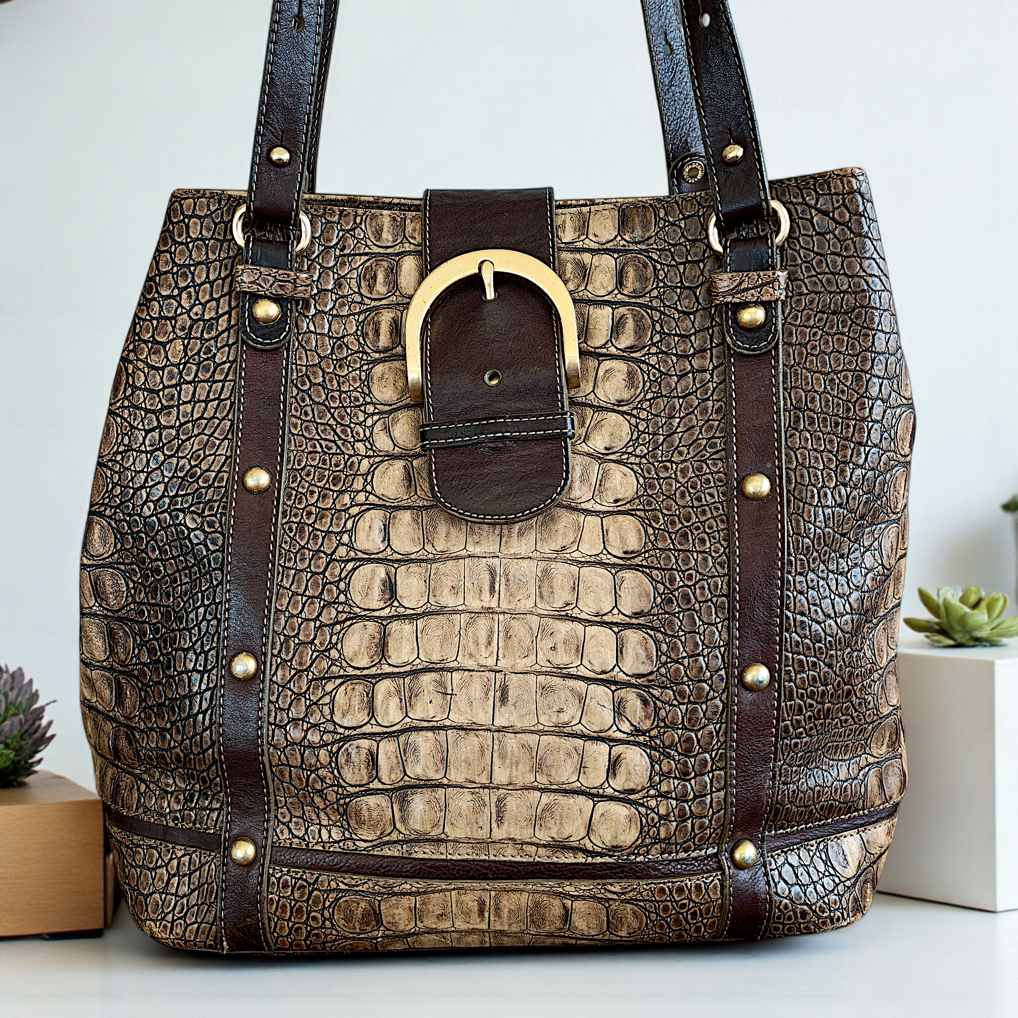 Exterior Material: signature croc-embossed leather