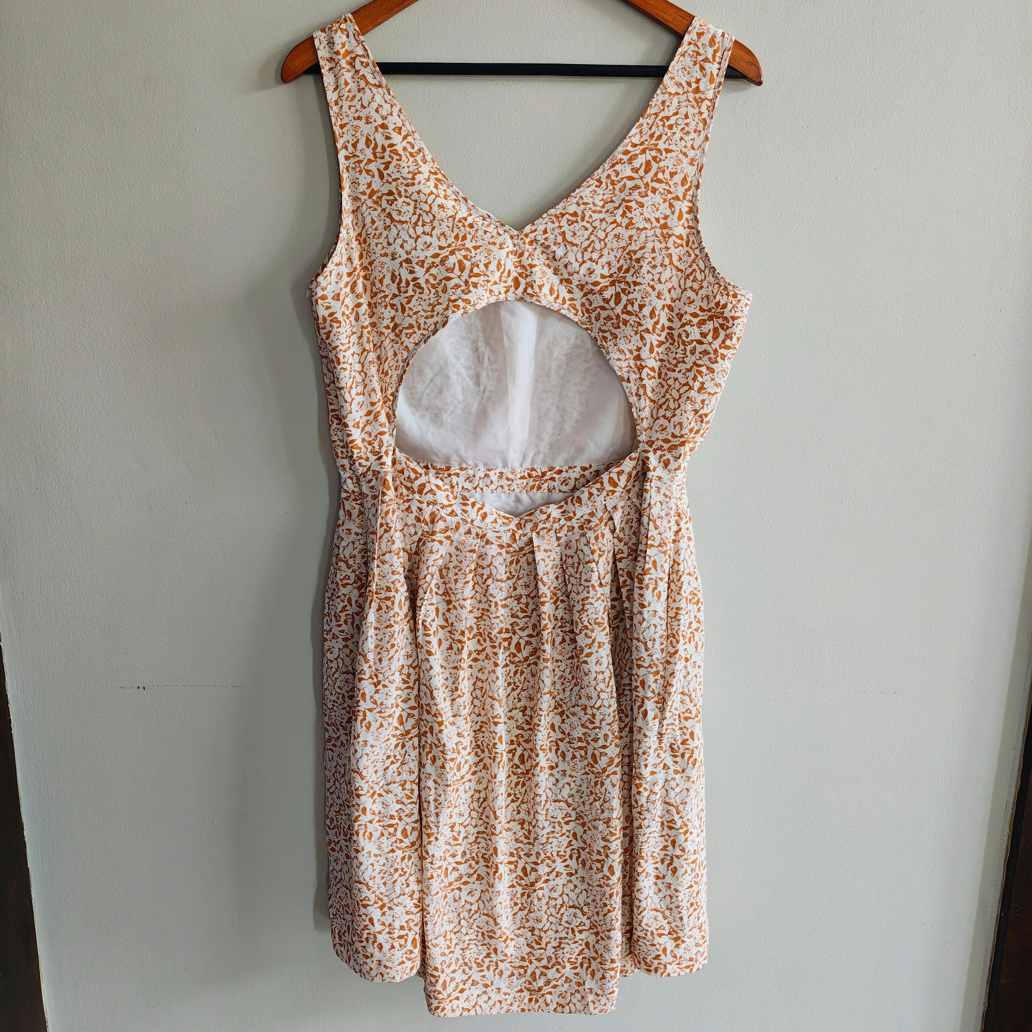 • Style: Sleeveless with a U-neck, fitted waist, side pockets, and a gathered A-line skirt. Cutout v-back.