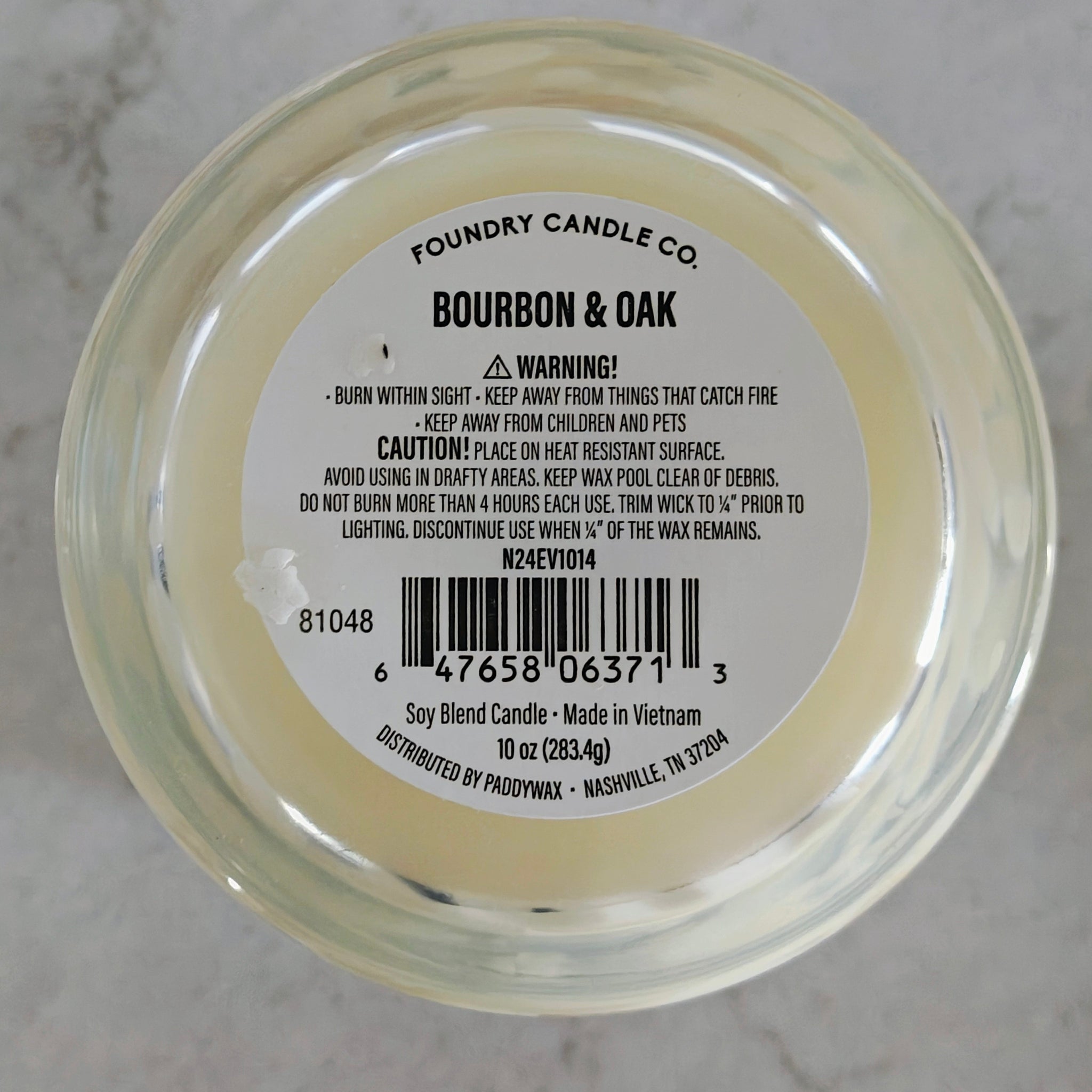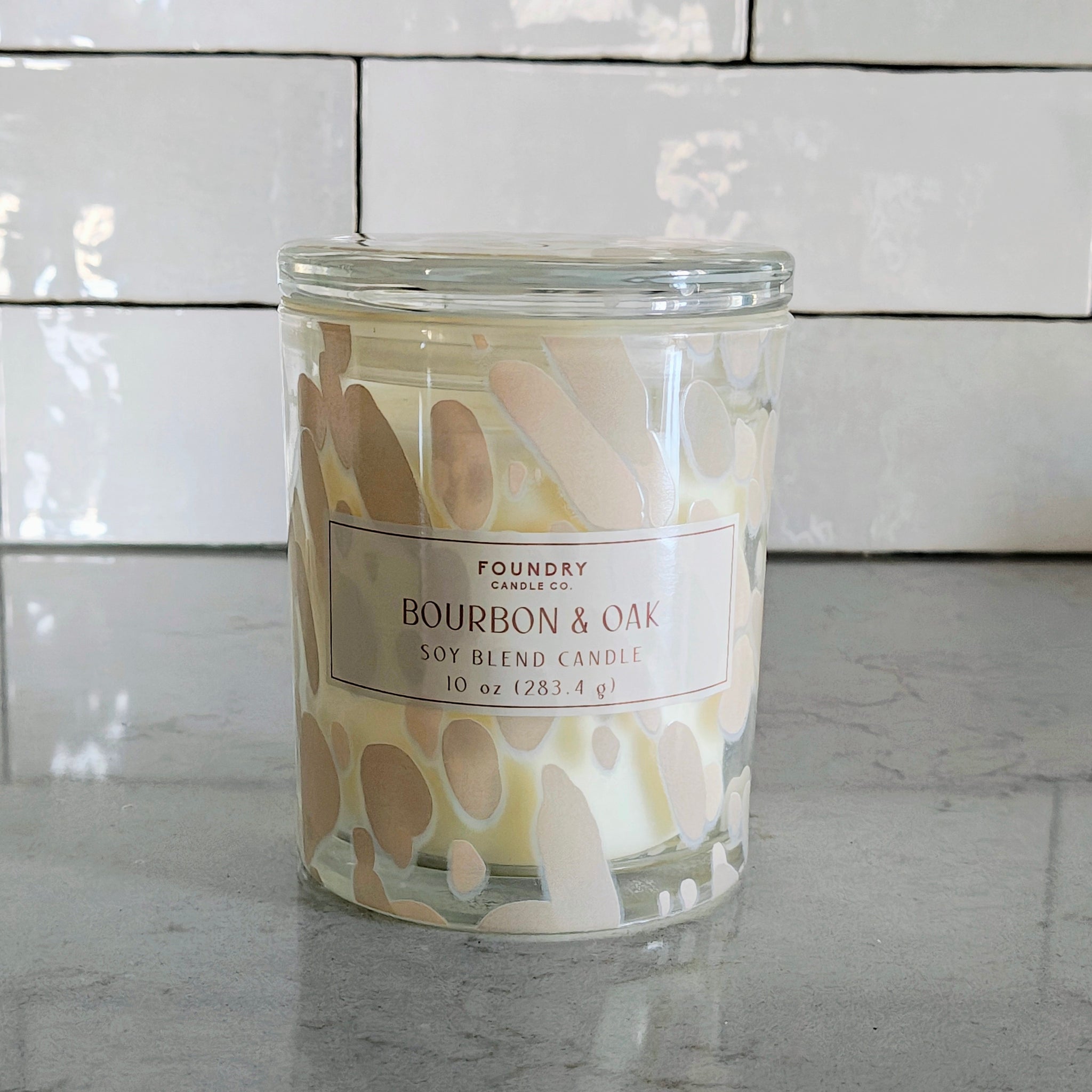 Foundry Candle Co. Bourbon & Oak soy blend candle.