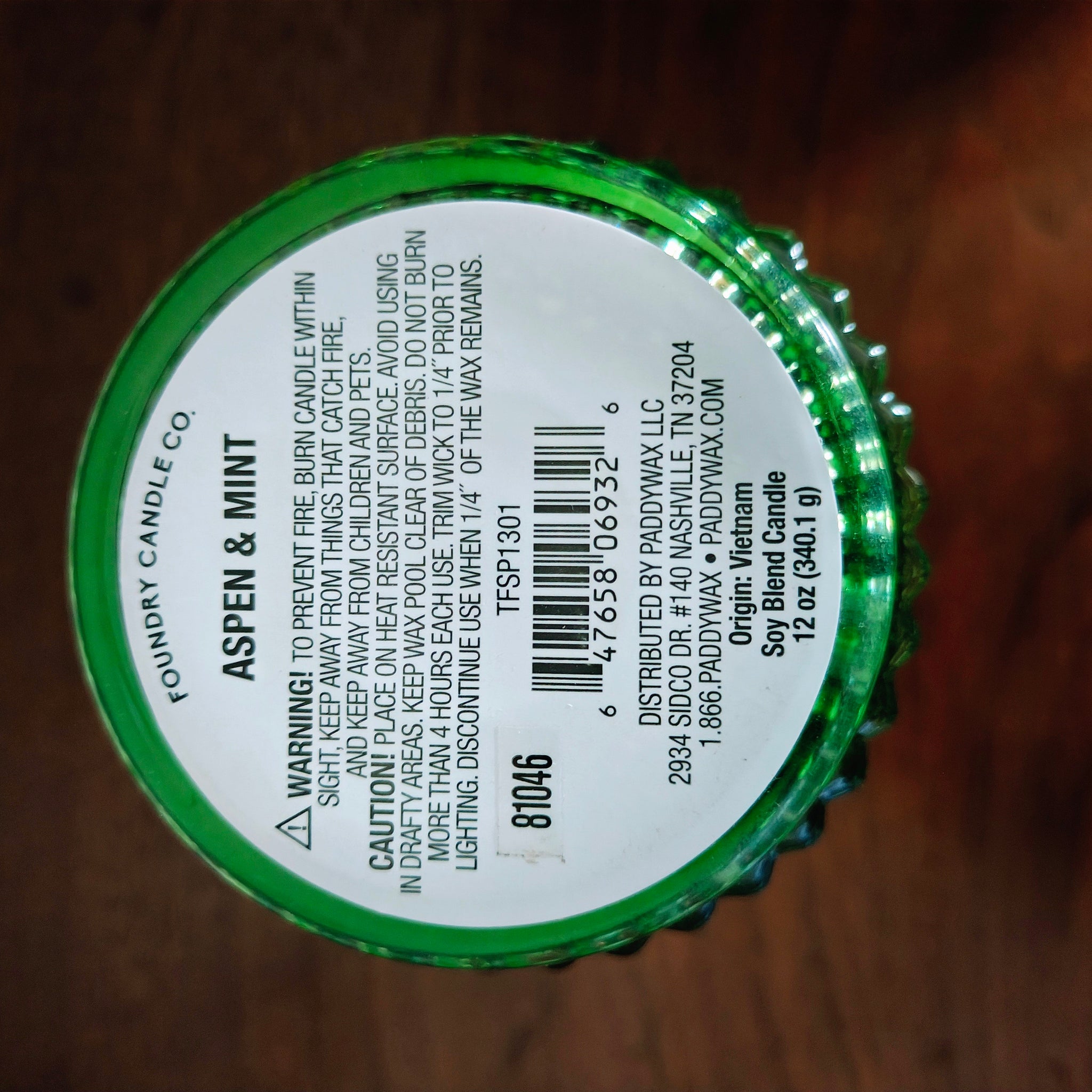 Foundry Candle Co. Aspen & Mint soy blend candle.