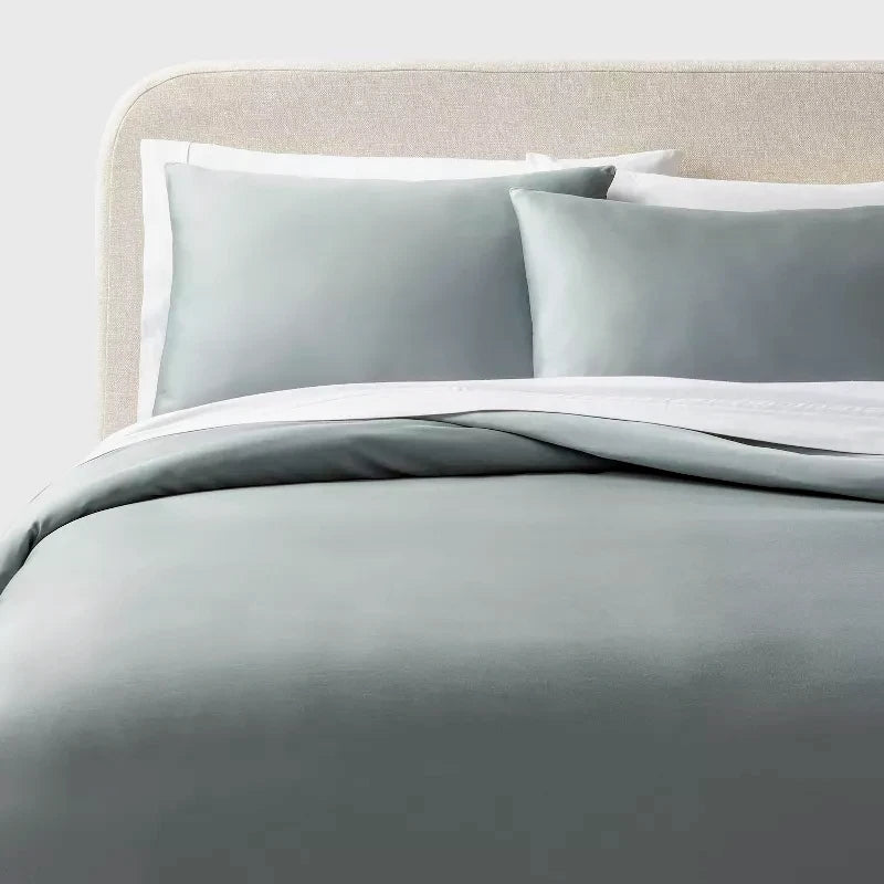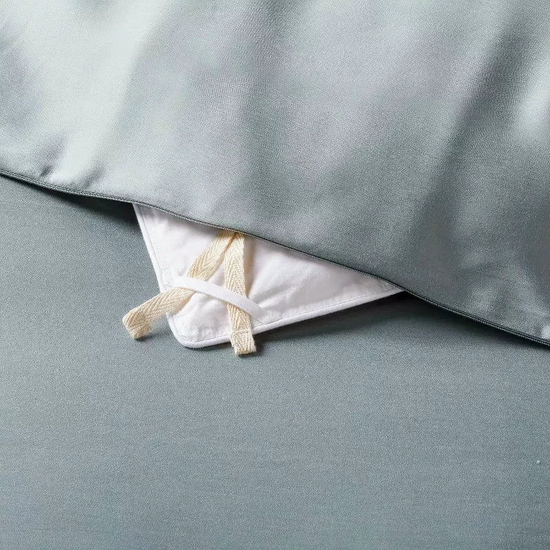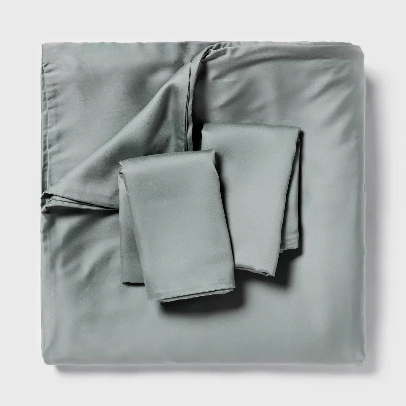 Update your bed with this Luxe TENCEL™ Lyocell Duvet Cover and Sham Set from Threshold™. This coordinated bedding set includes a duvet cover and two matching pillow shams in a solid hue that pairs well with any other bedding and decor. The soft and silky-smooth TENCEL™ lyocell fabric gives it a luxe look and offers breathable comfort. The zipper closures on the duvet cover and sham make it easy to insert the comforter and pillows. Corner ties in the duvet cover neatly secures the insert.