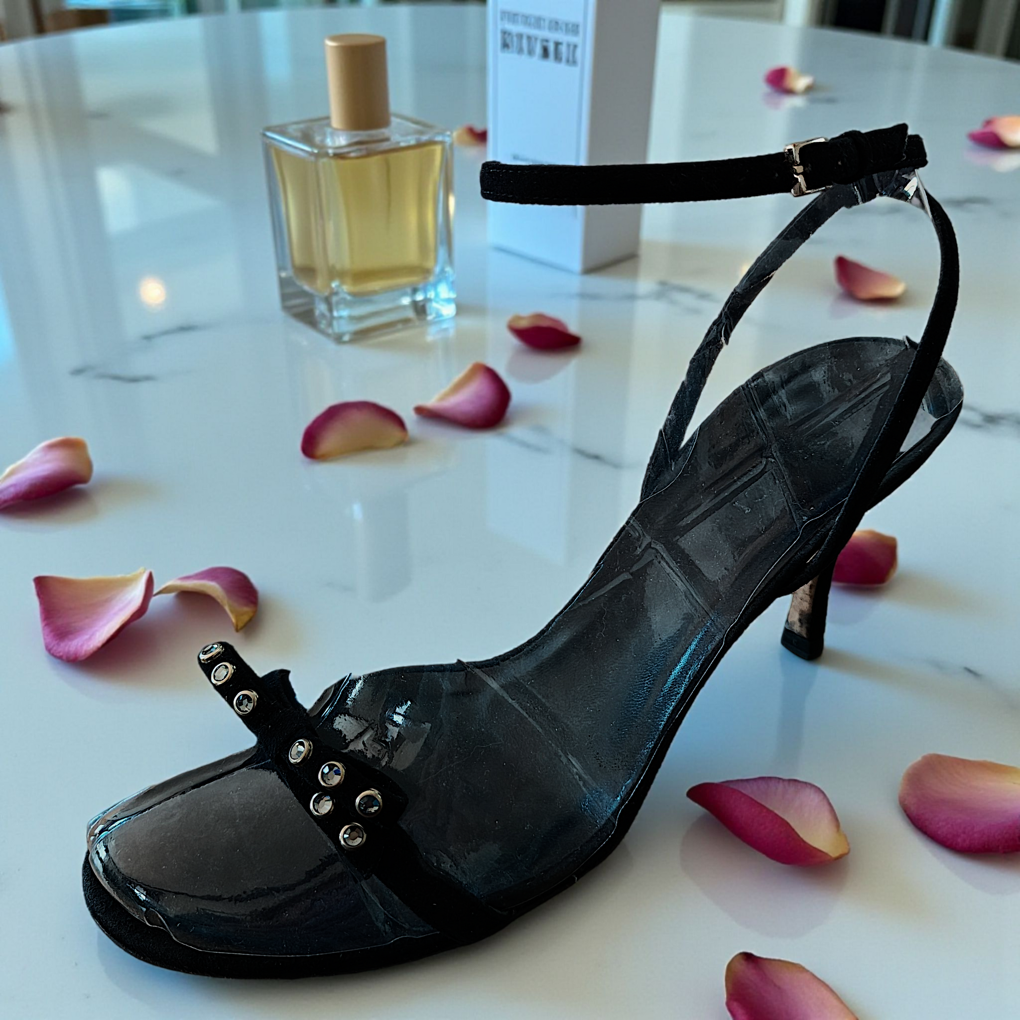 - Black suede upper