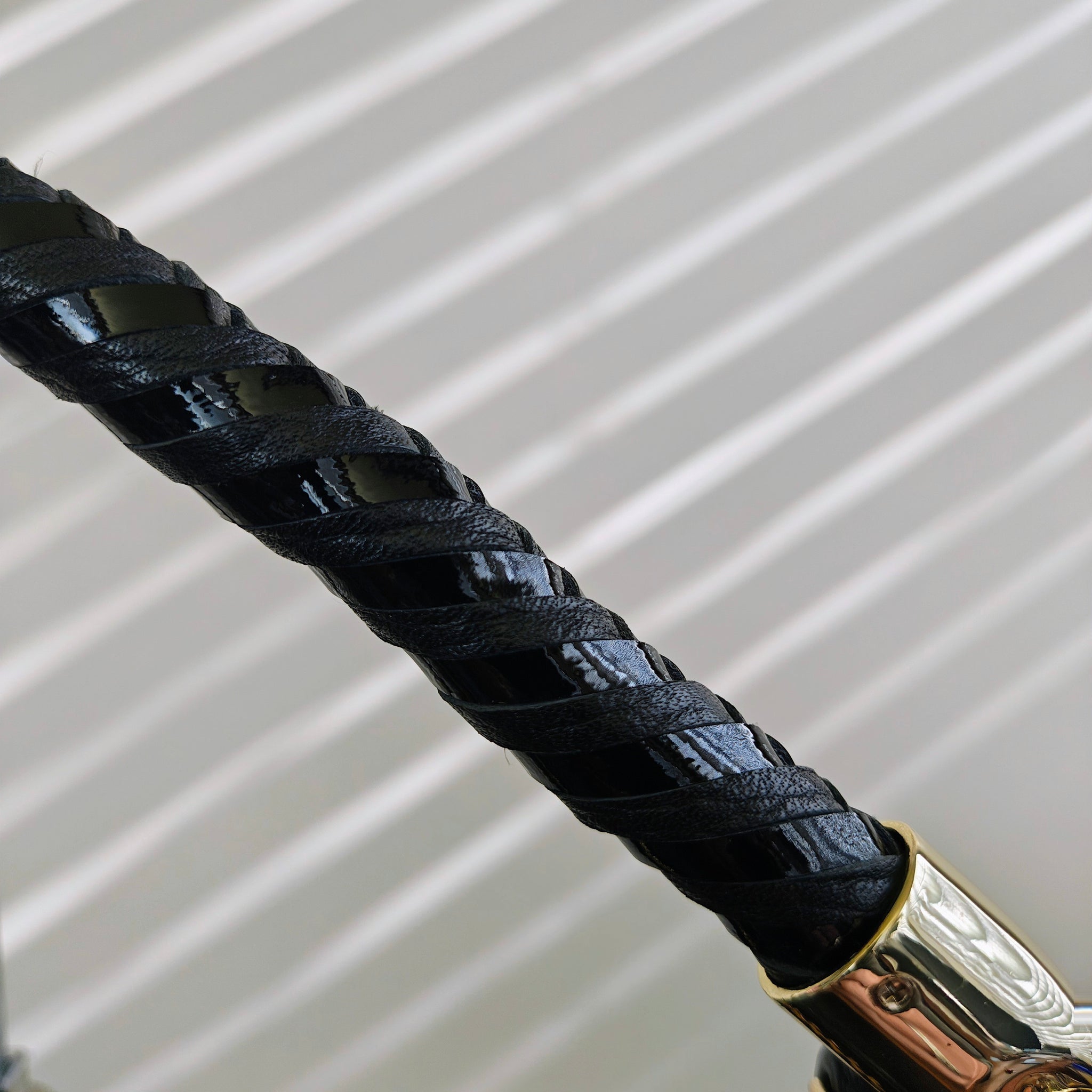 Hardware: Polished gold-tone hardware, including the rings connecting the handle to the bag and the zipper.