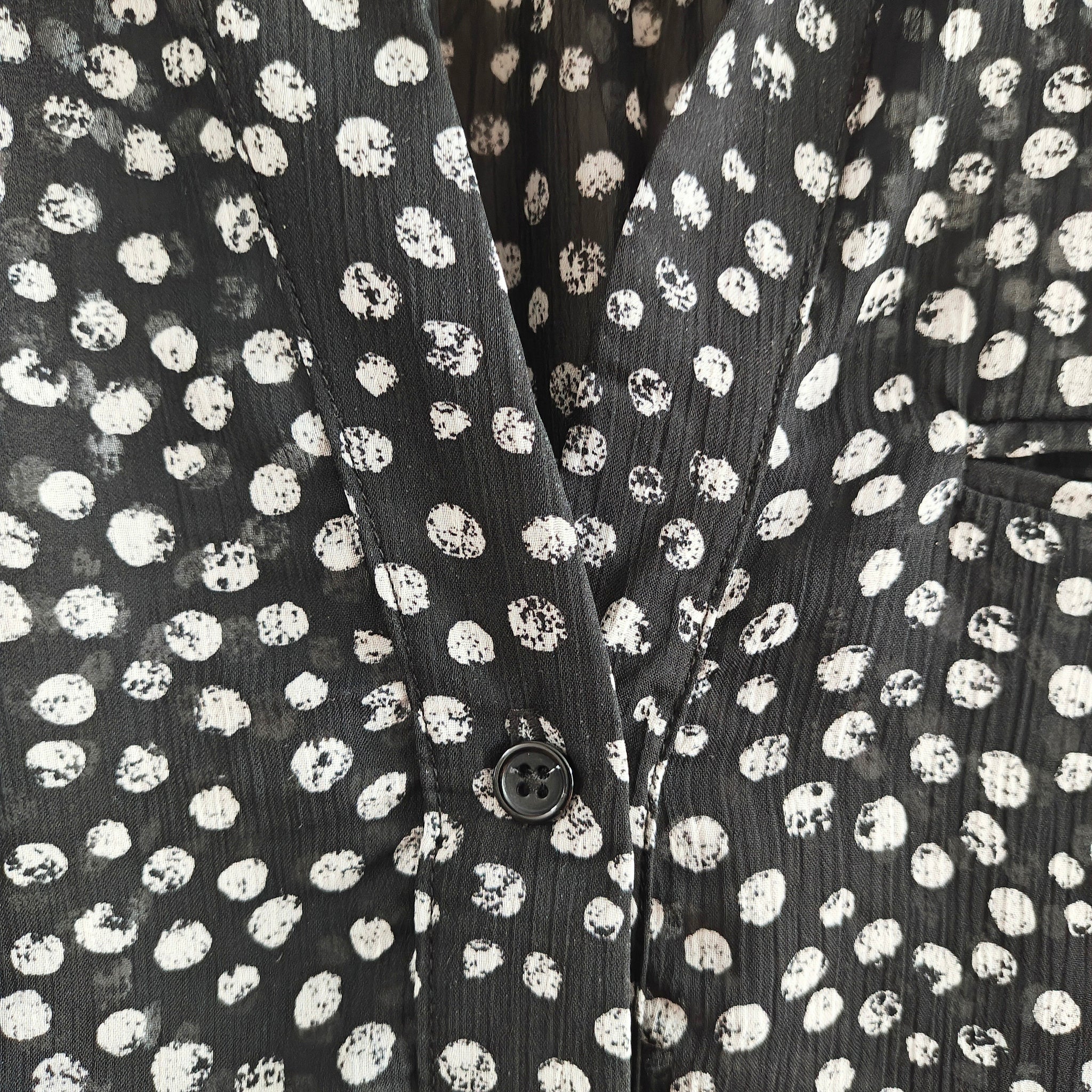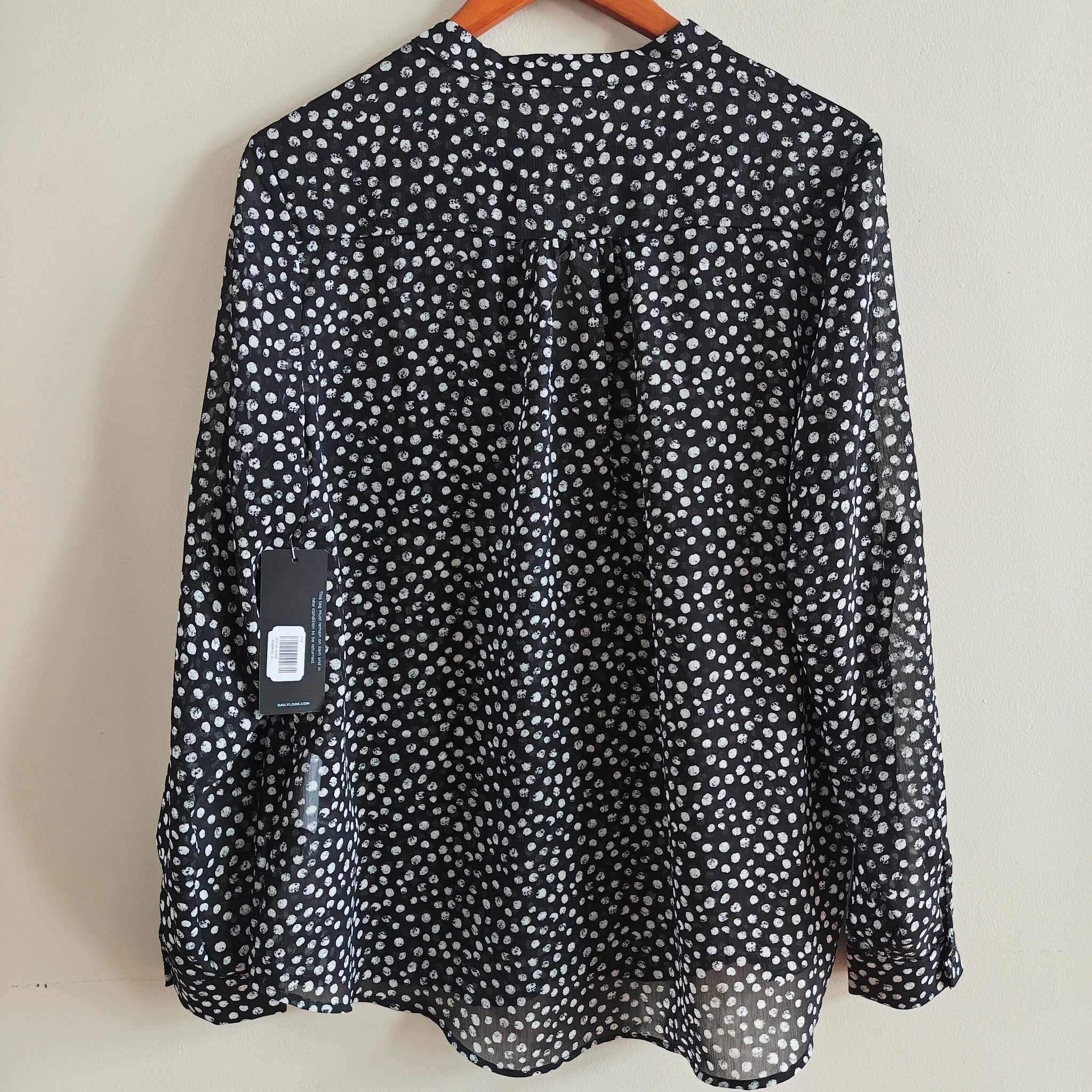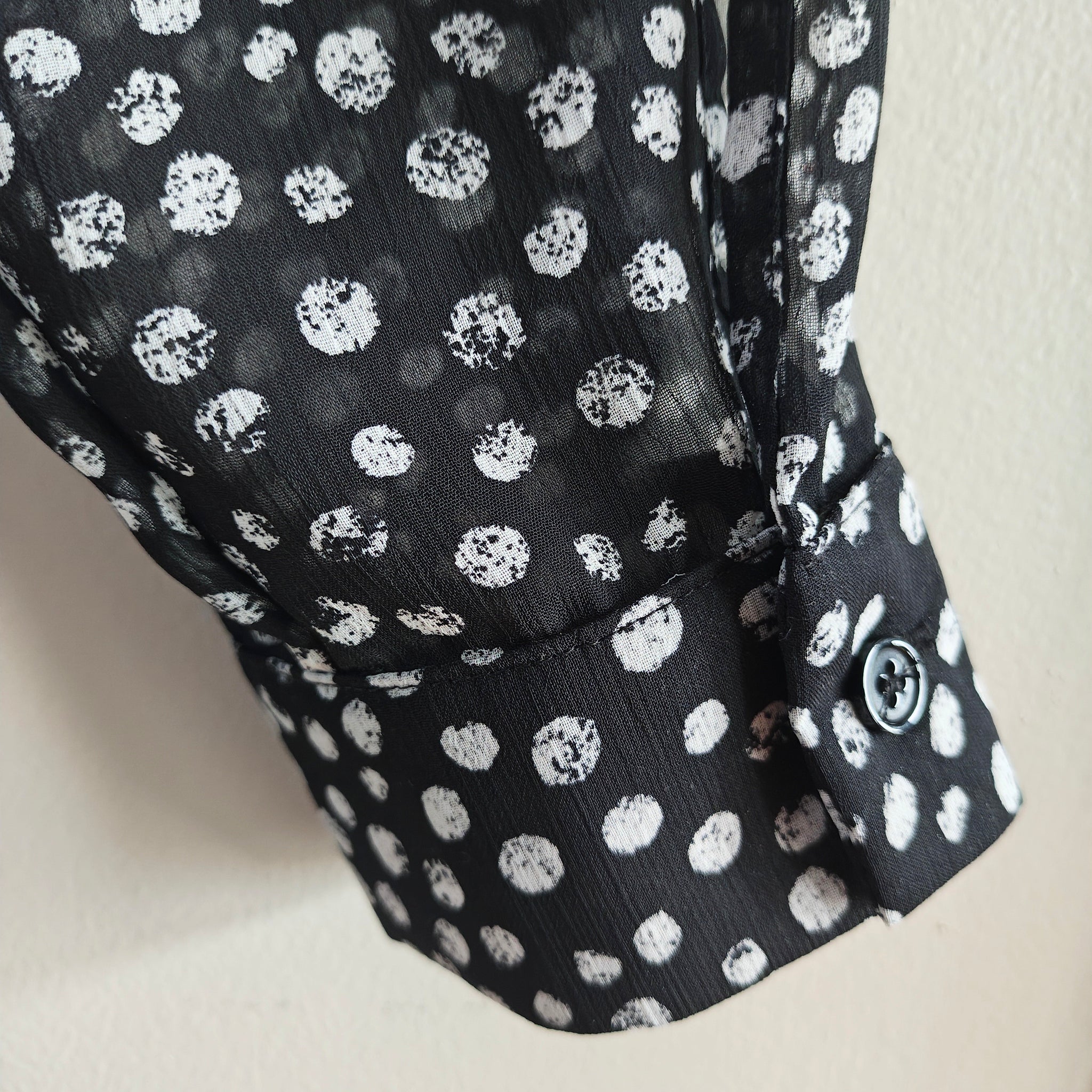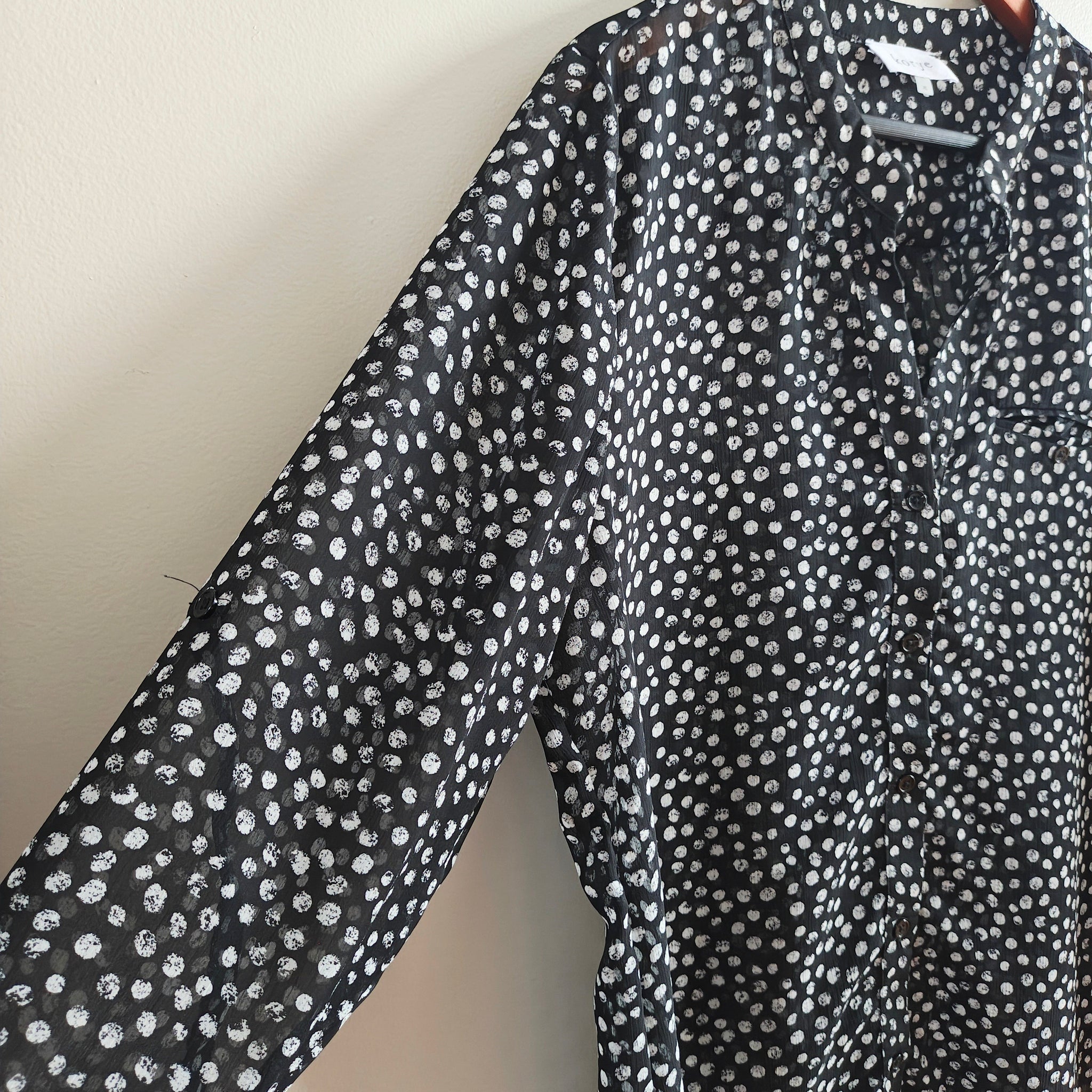 Style: Long-sleeve, V-neck blouse, semi-sheer and flowy
