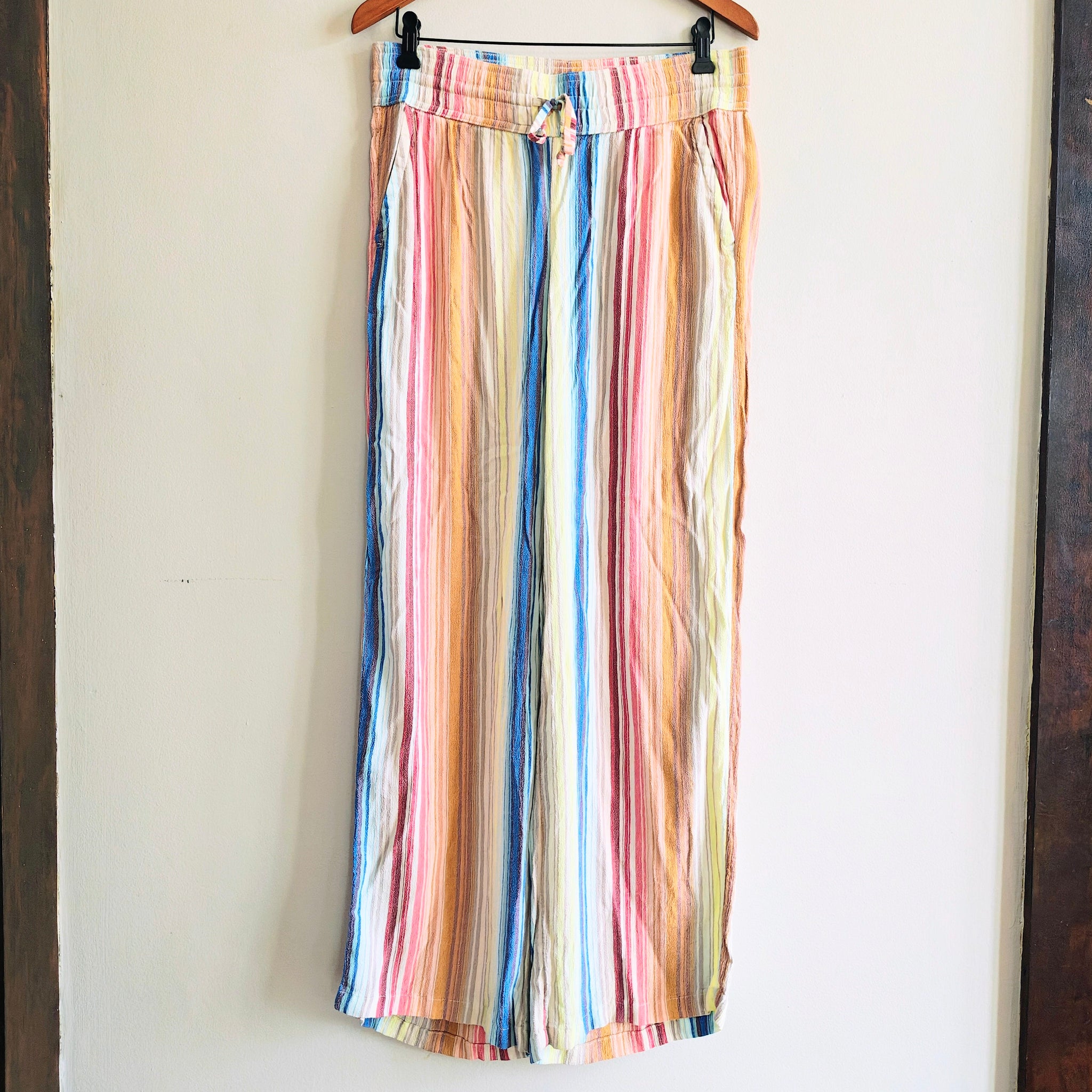 Prana Women's Fernie Beach Pants in the "Multi Baja Stripe" pattern.