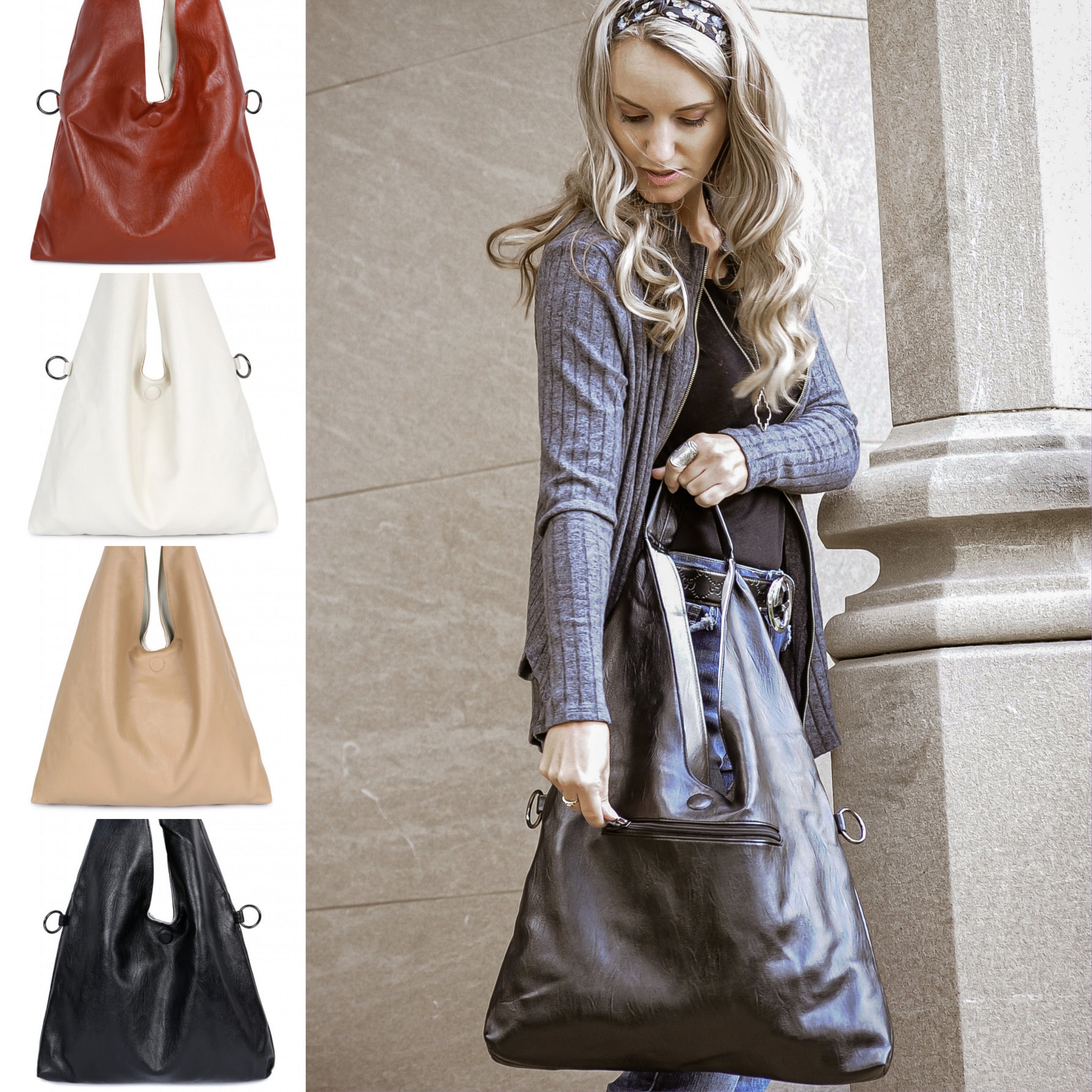 Classic hobo bag with detachable shoulder strap and matching cosmetic bag. Completely reversible so it's like getting two bags in one! Double sided magnetic closure.
