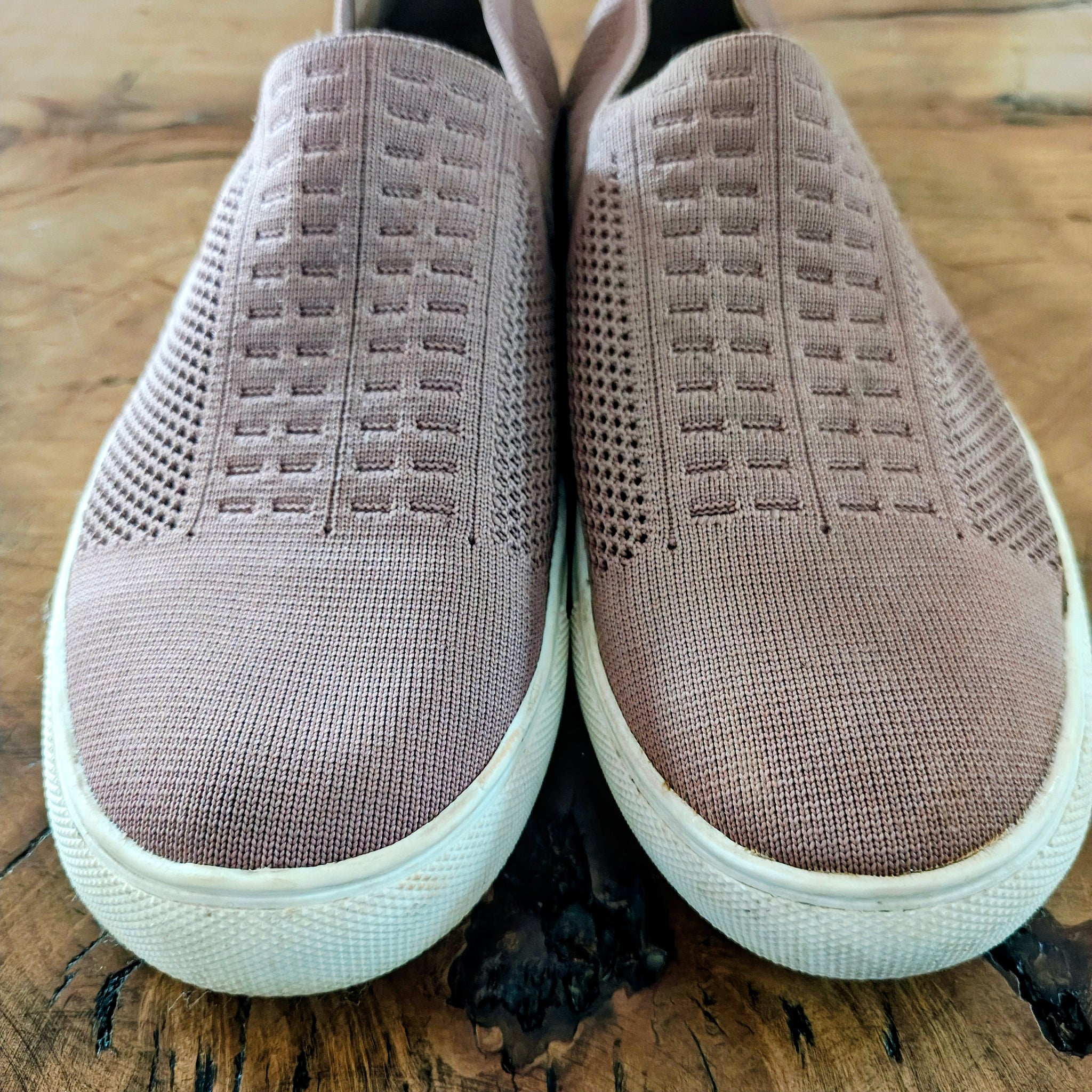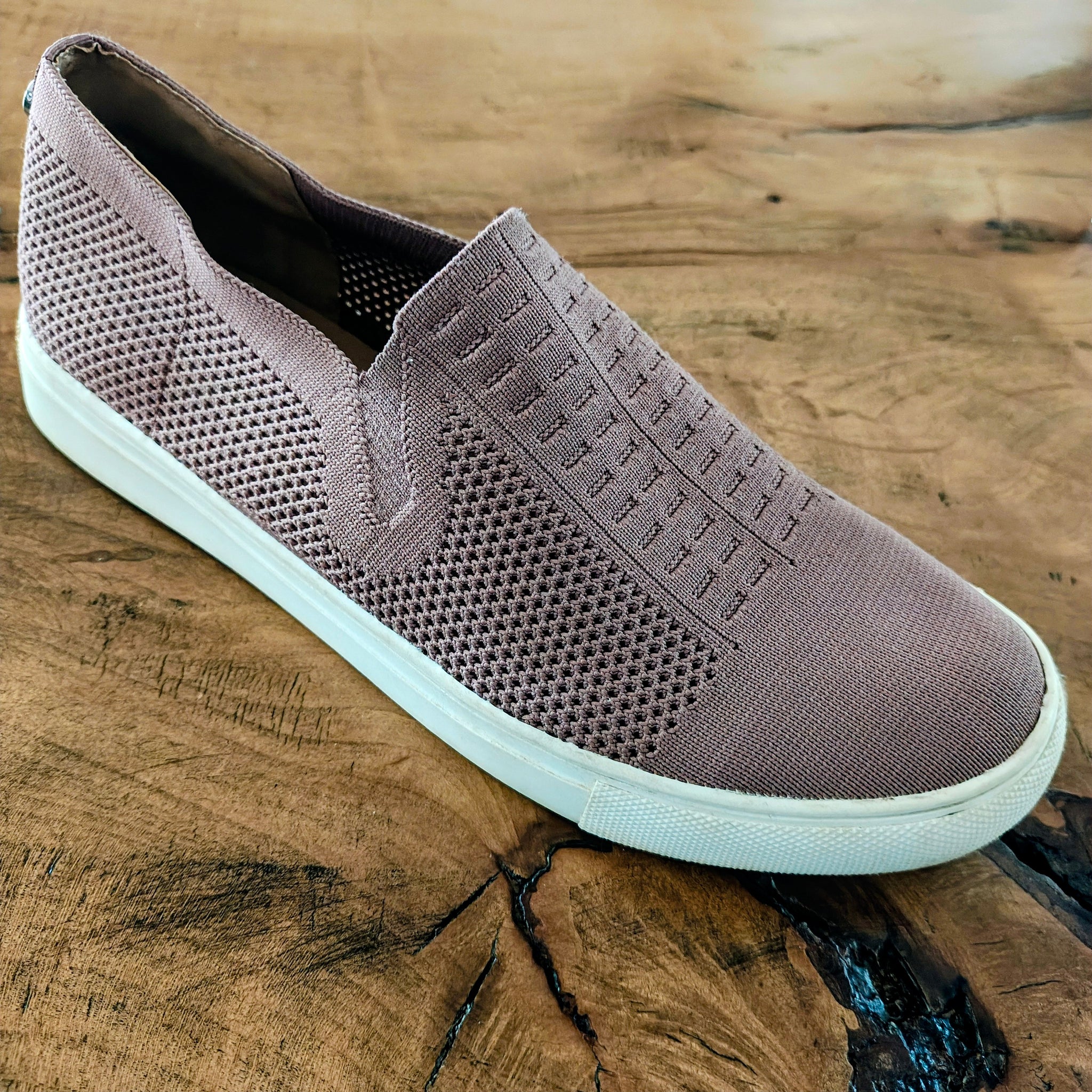 Slip-on sneaker features a stretchy knit upper and a cushioned footbed for comfort.
