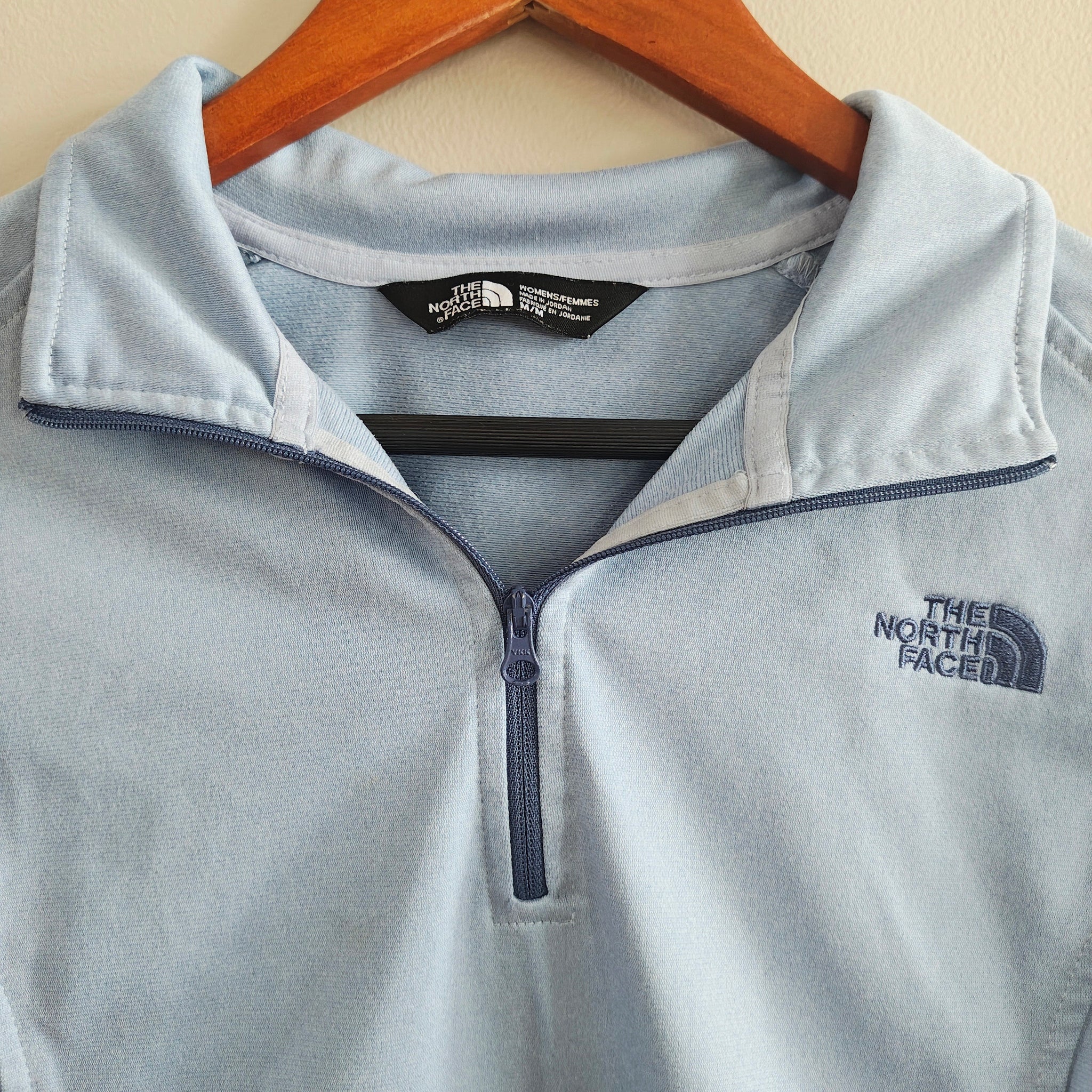 Women's 1/4 zip pullover from The North Face. Part of the Tech Glacier or TKA 100 series, known for being lightweight and breathable.