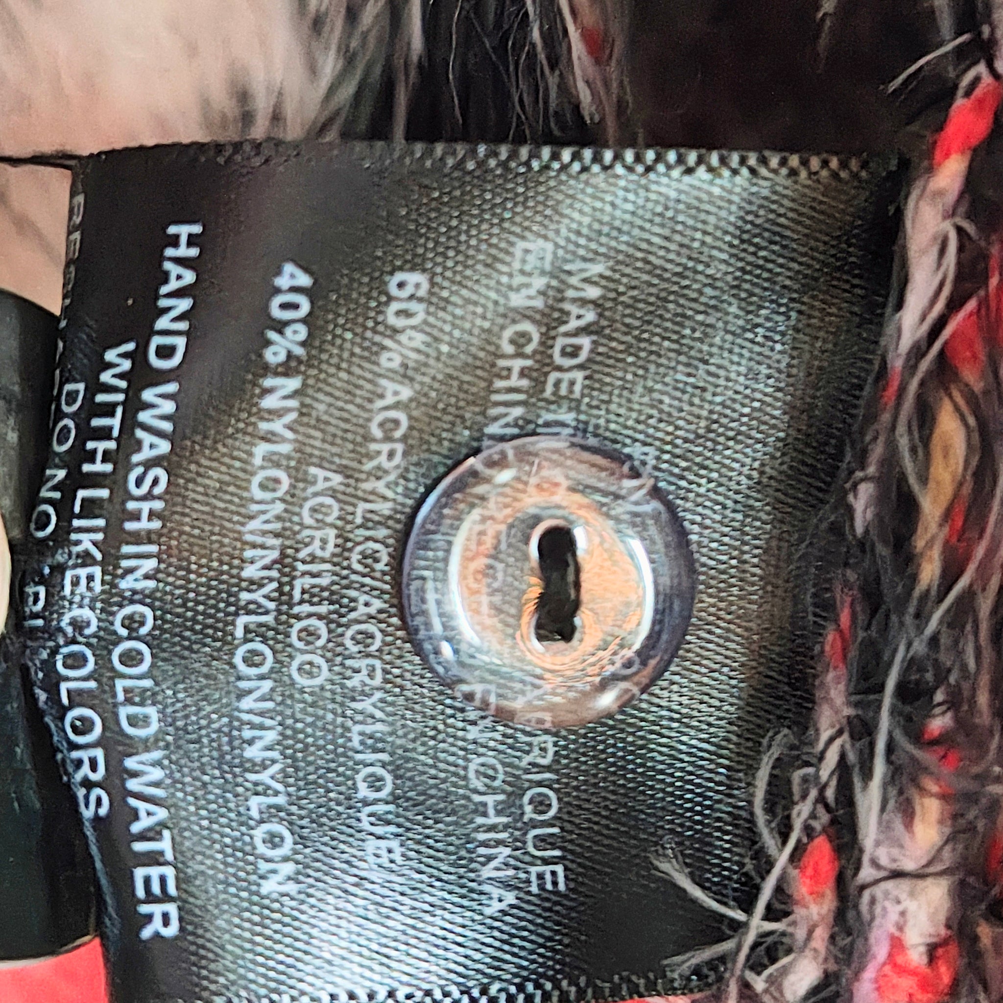 Material: A blend of acrylic and nylon, known for a soft, "fluffy" or "eyelash" knit texture. 60 acrylic, 40 nylon