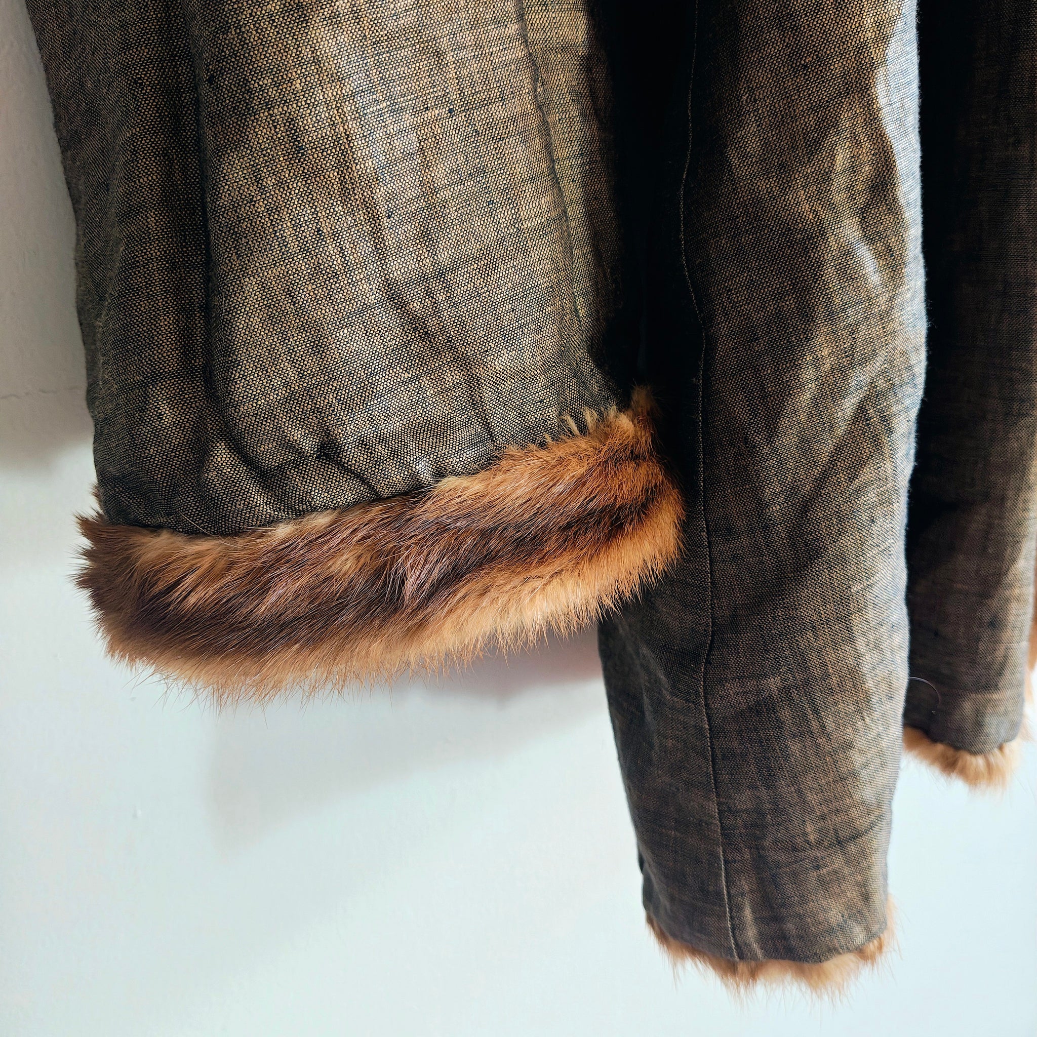 Material: Fur appears to be a mink or possibly rabbit based on softness. Textile blend is unknown but is a thin woven fabric, perhaps some sort of cotton blend.