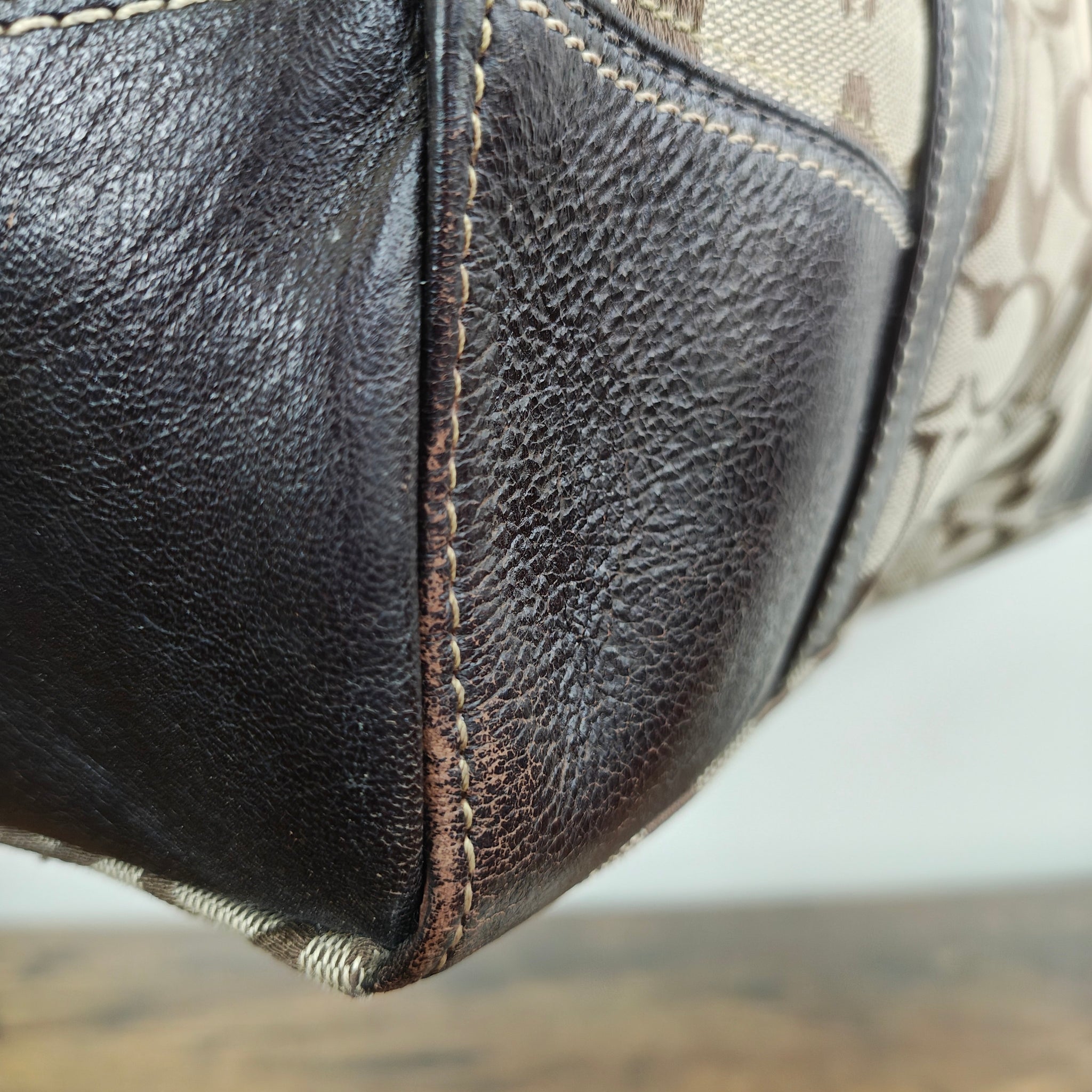 Material: Signature 'C' logo jacquard canvas with dark brown leather trim and handles.