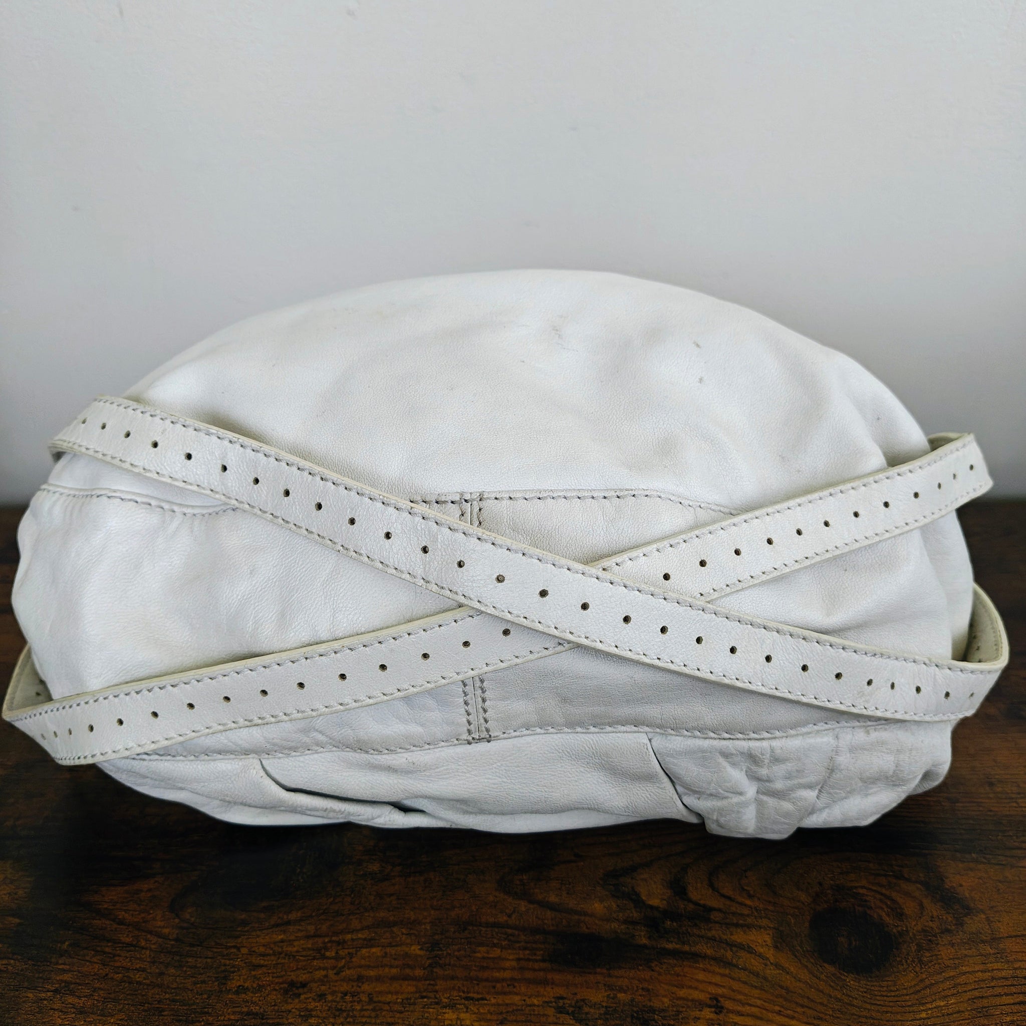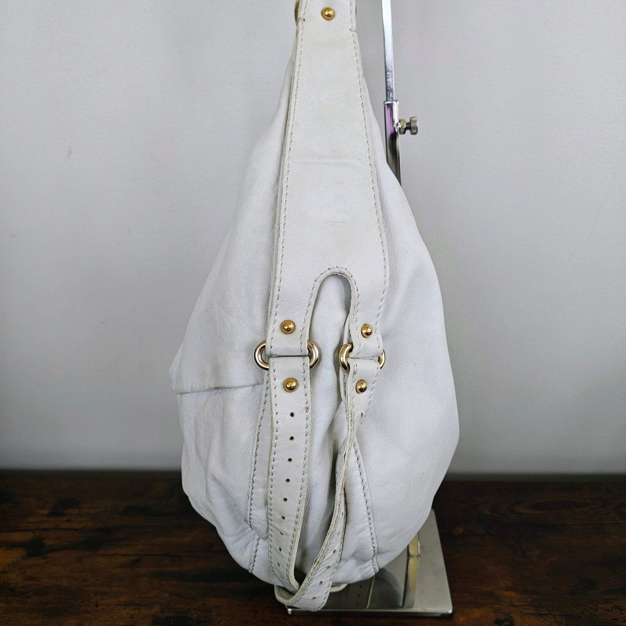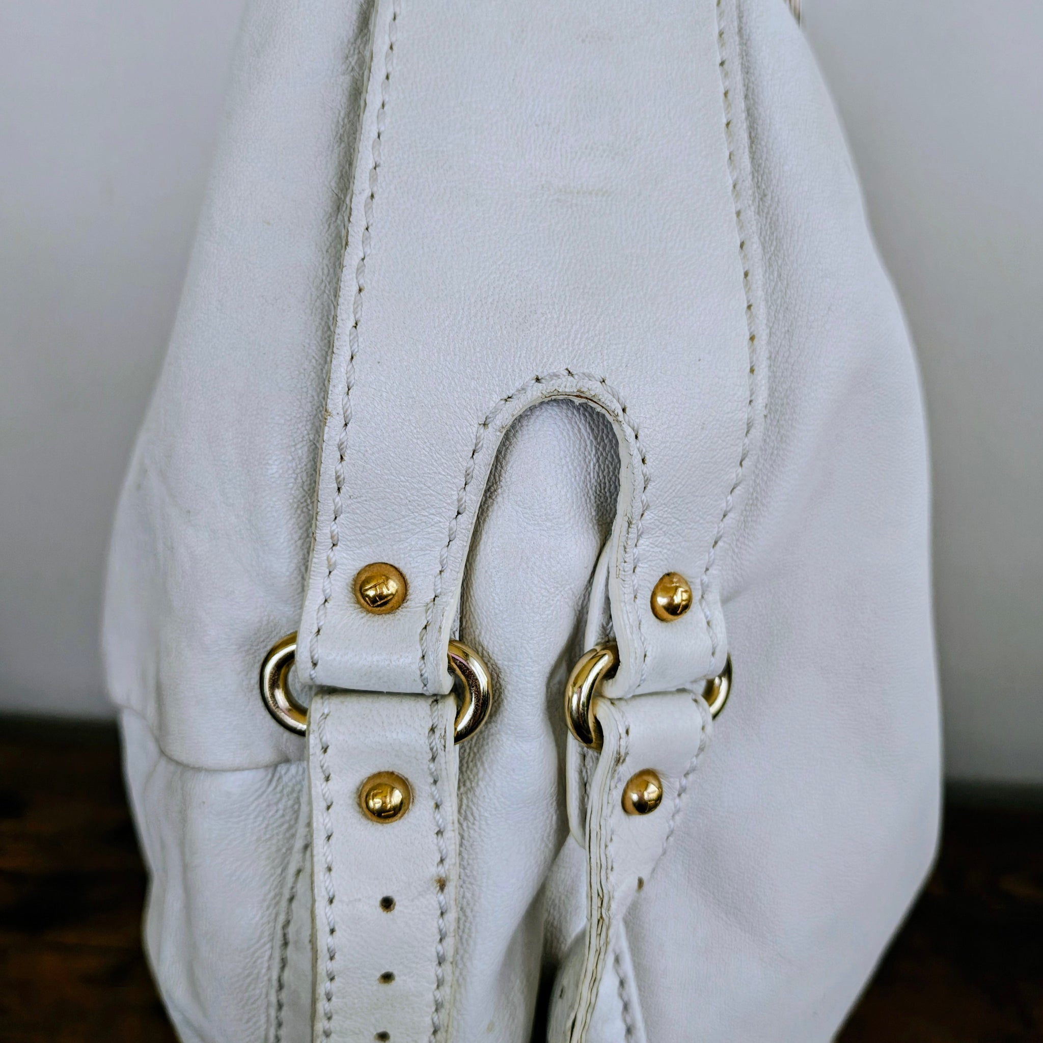 Fendi Tie Front Detailed Hobo Bag in white leather, also referred to as a Fendi Knot Hobo. It features a distinctive ruched or knotted detail on the front and a gold-tone logo charm.