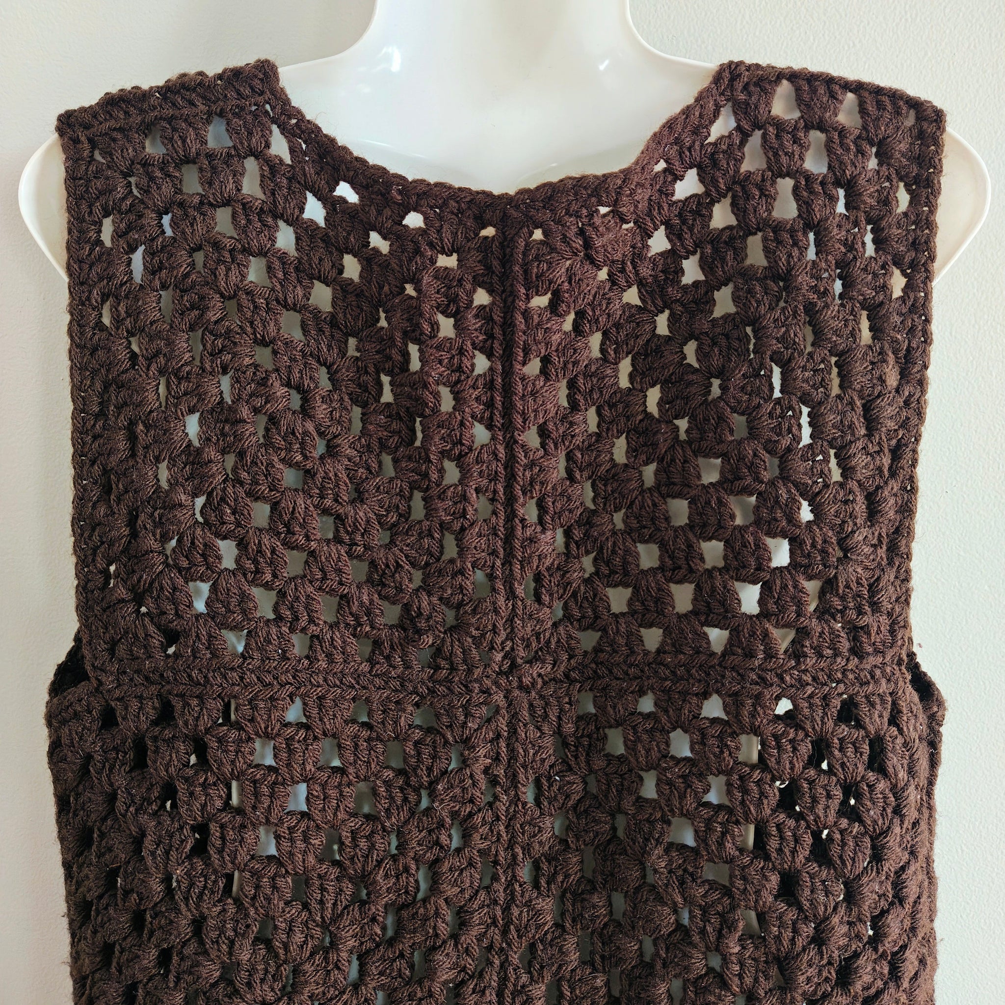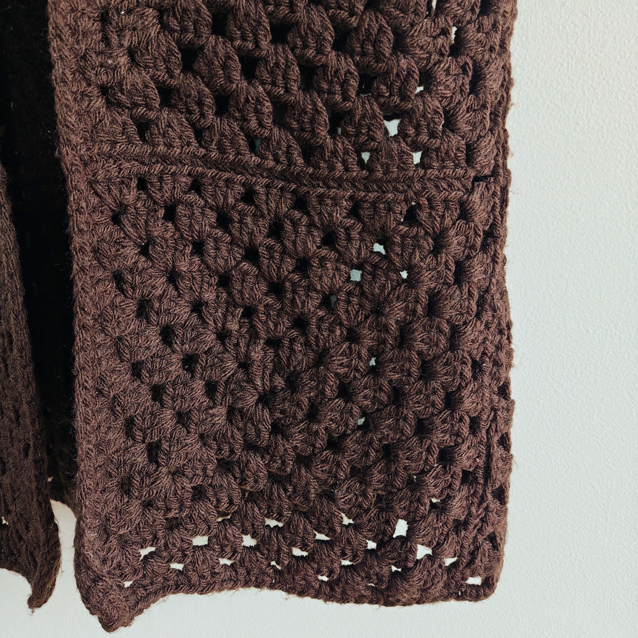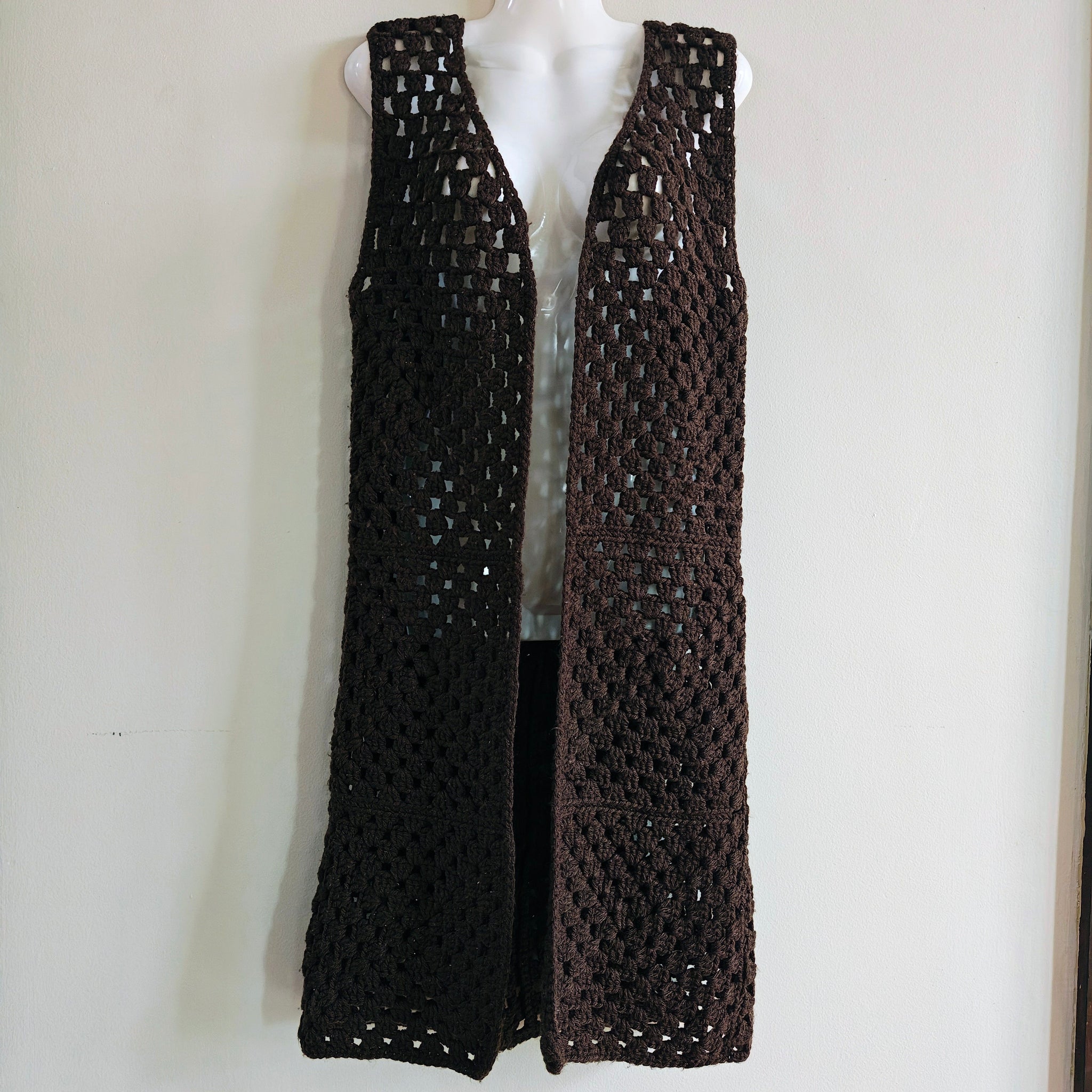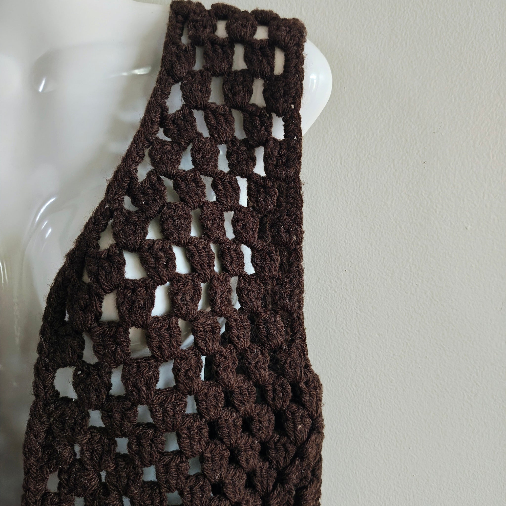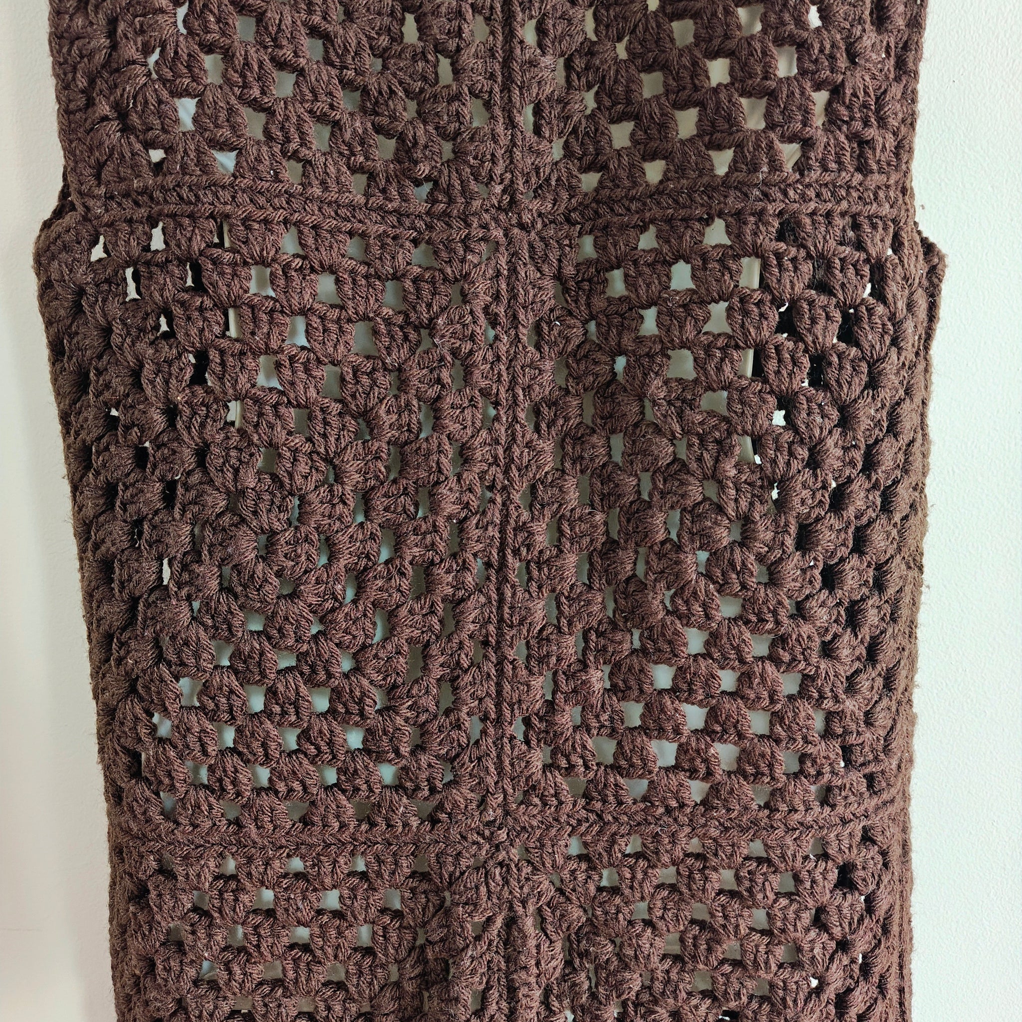 Material/Technique: Crocheted knit with an open, airy mesh pattern. No tags so exact content is unknown. Feels like a cotton or cotton blend.