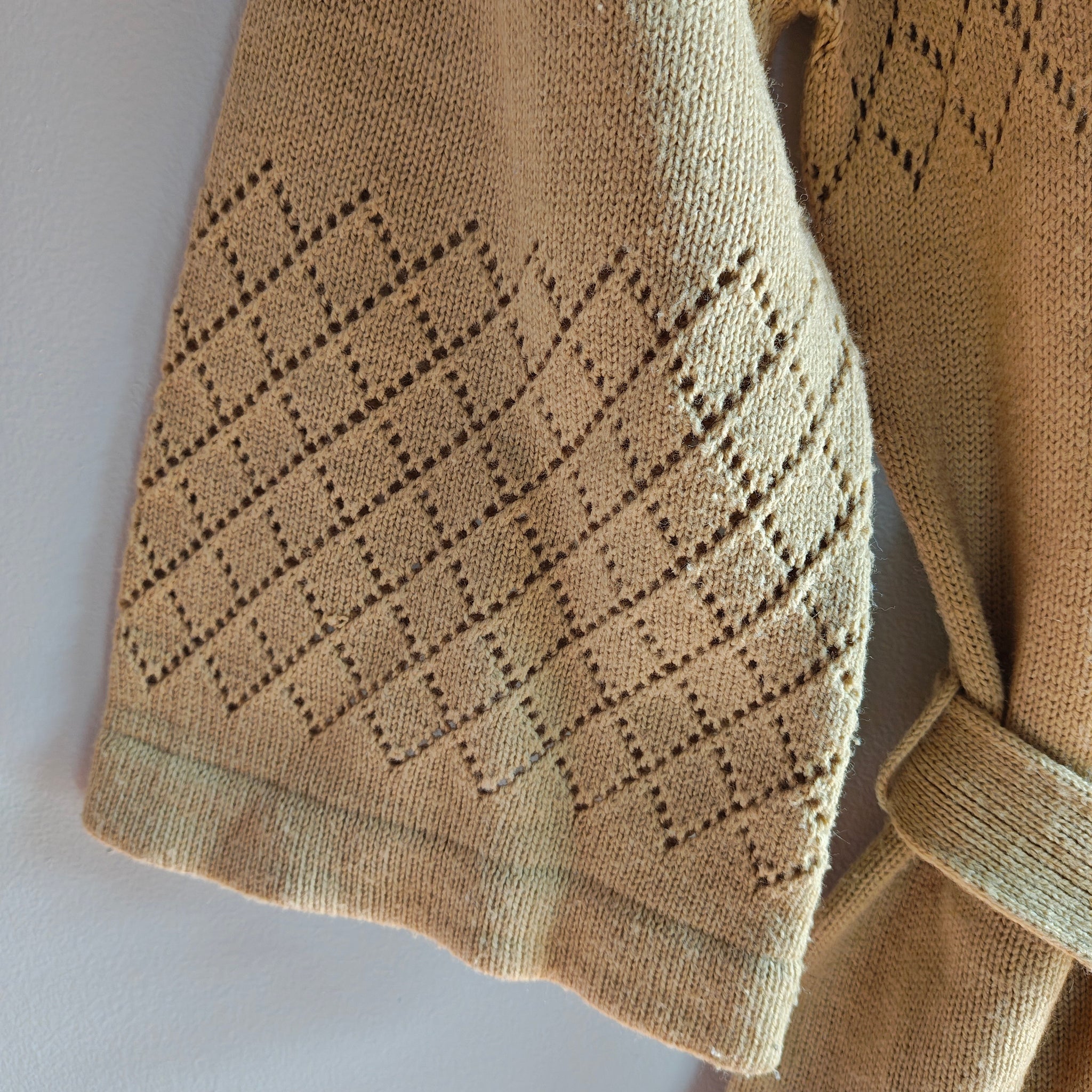 Vintage Open Knit Belted Cardigan Sweater