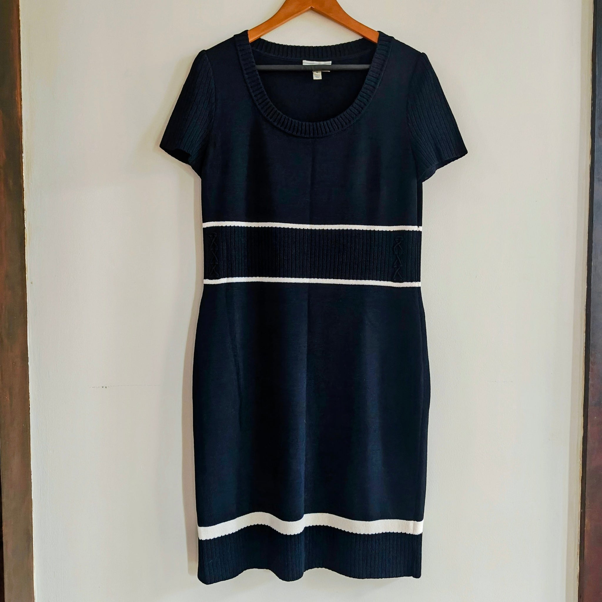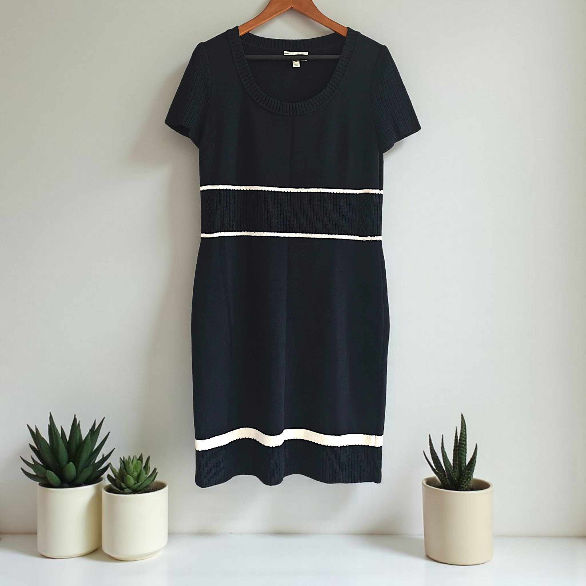 Style: Short-sleeve, scoop neck, knee-length/midi sweater dress