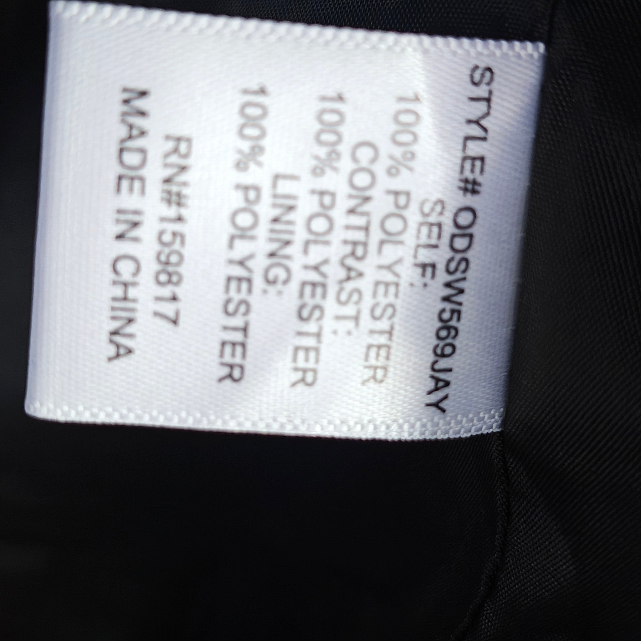 Material: 100% polyester shell, lining, and trim.