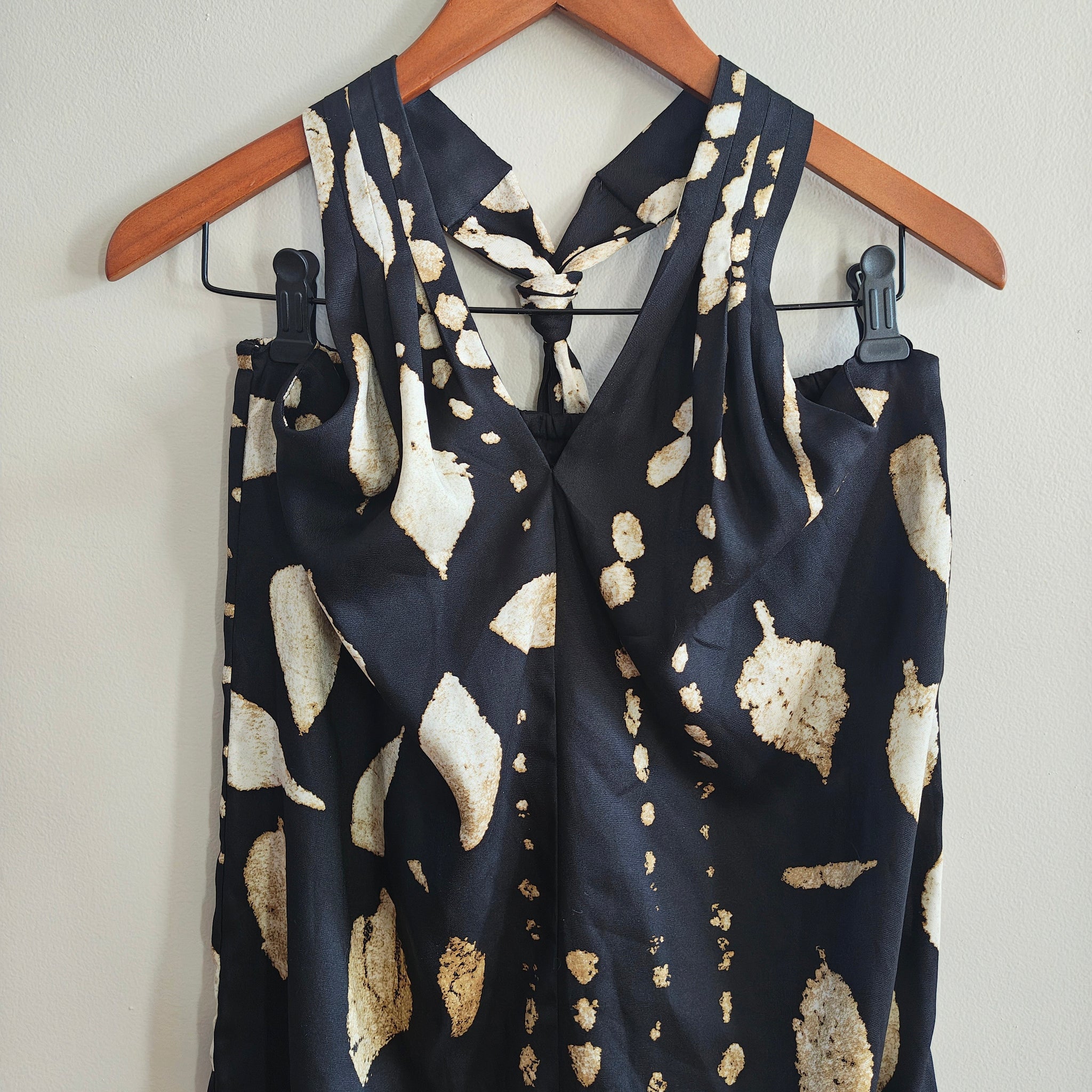 Color/Pattern: Black print (black and tan/beige leaf/abstract pattern)