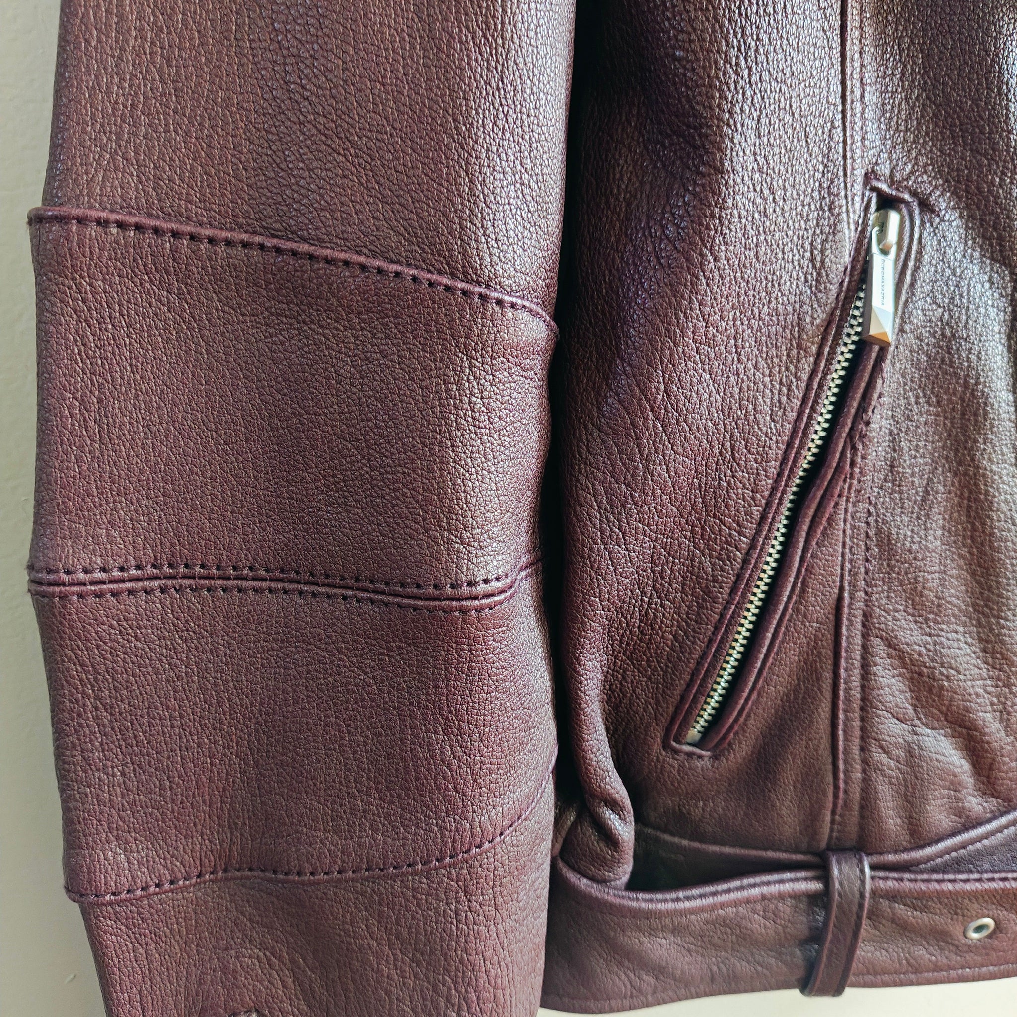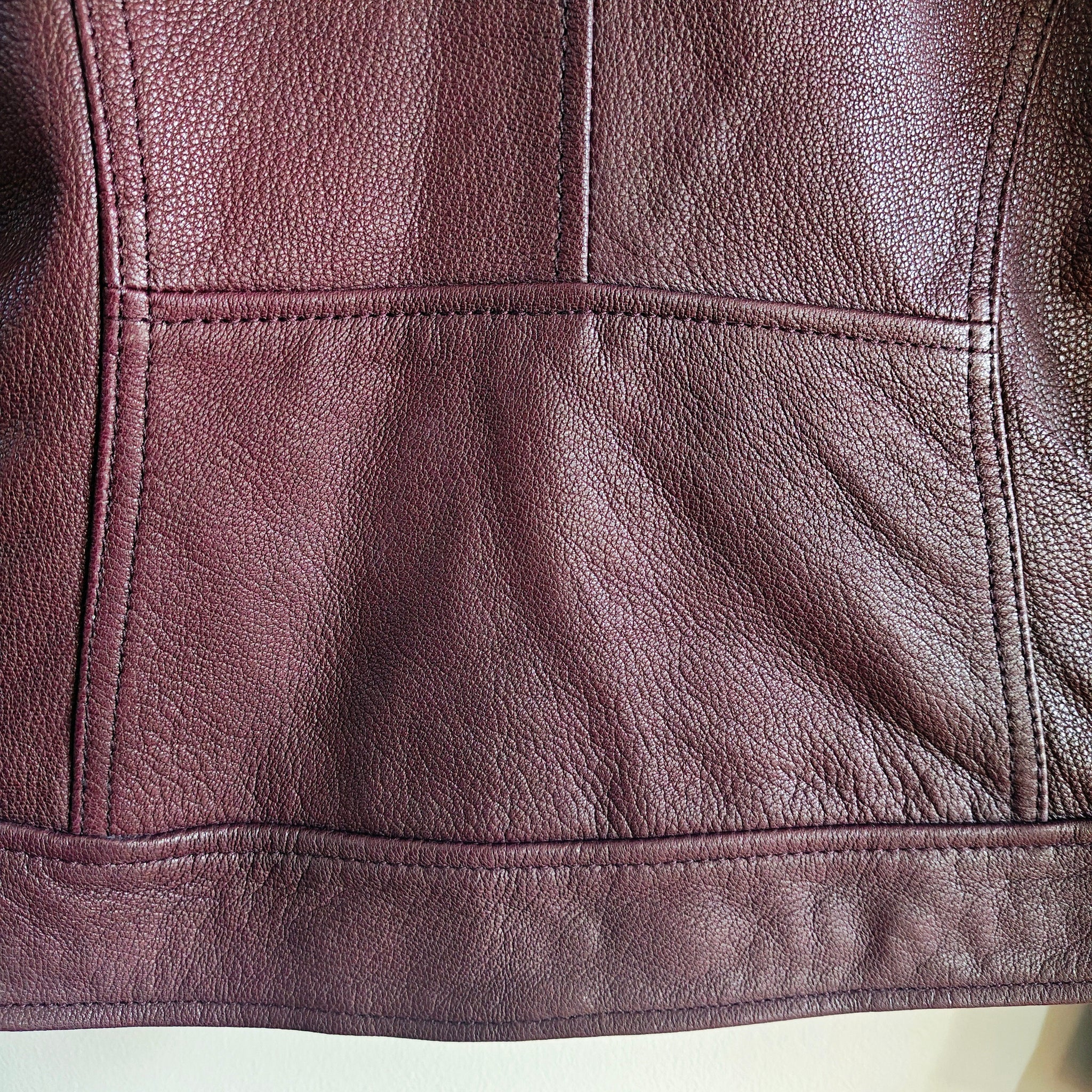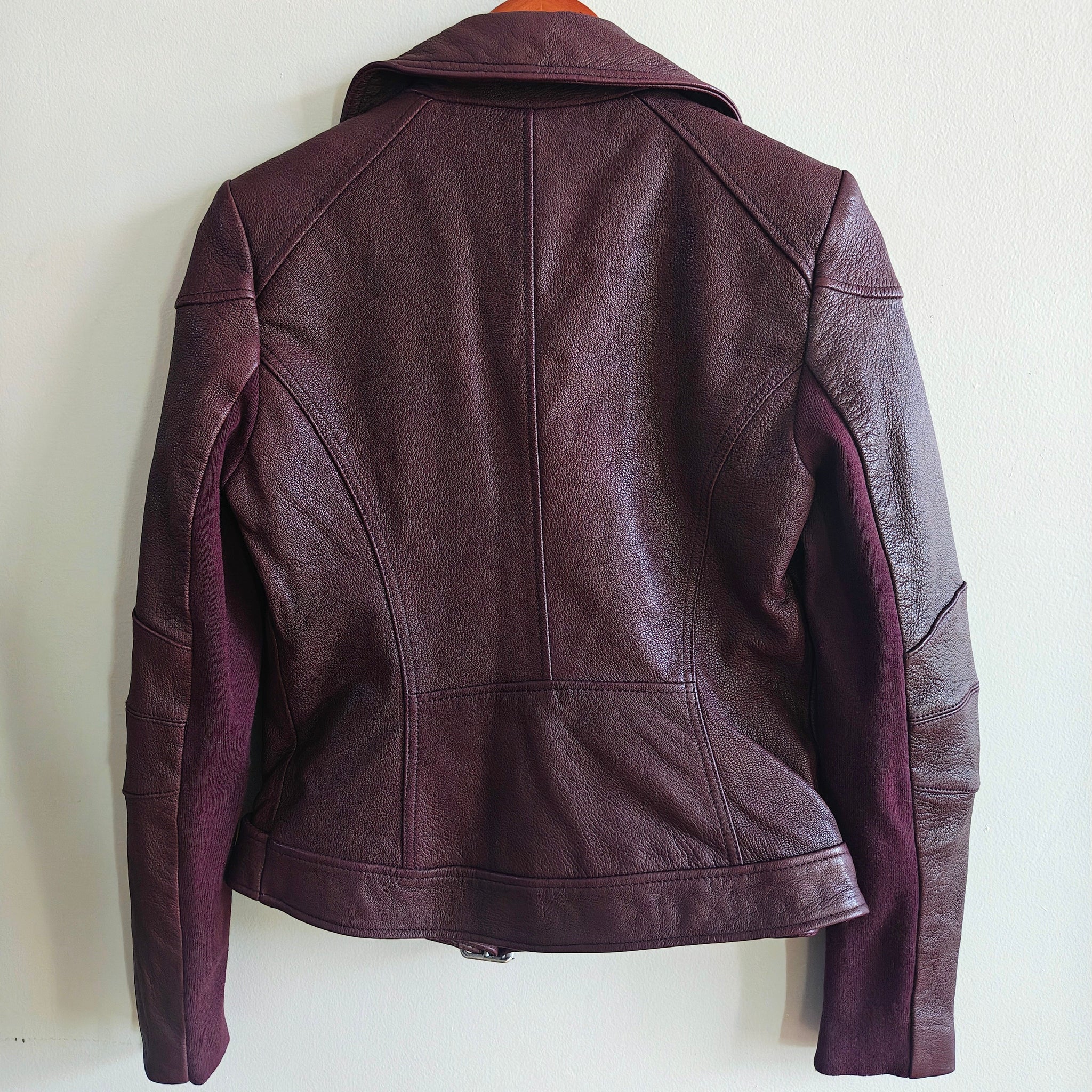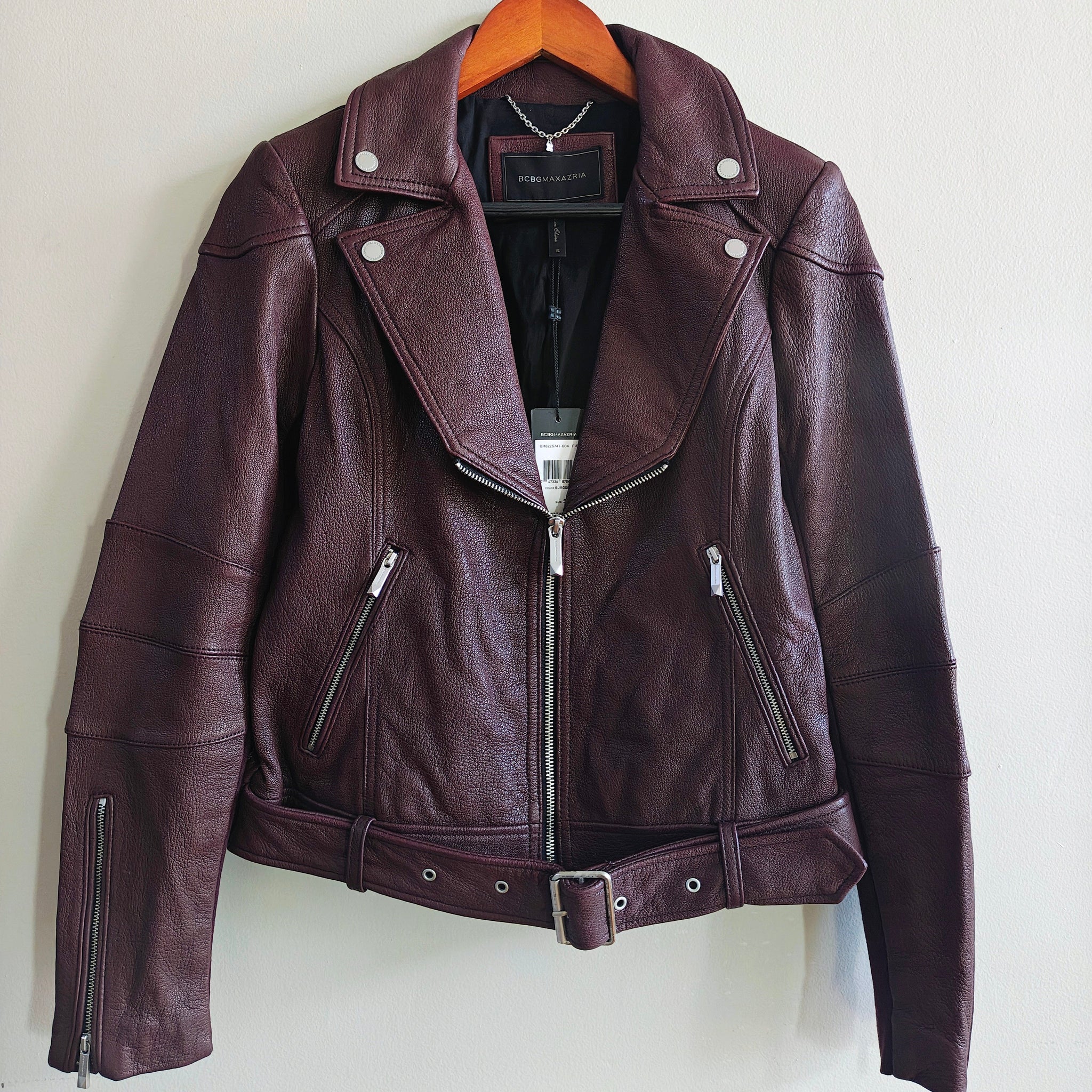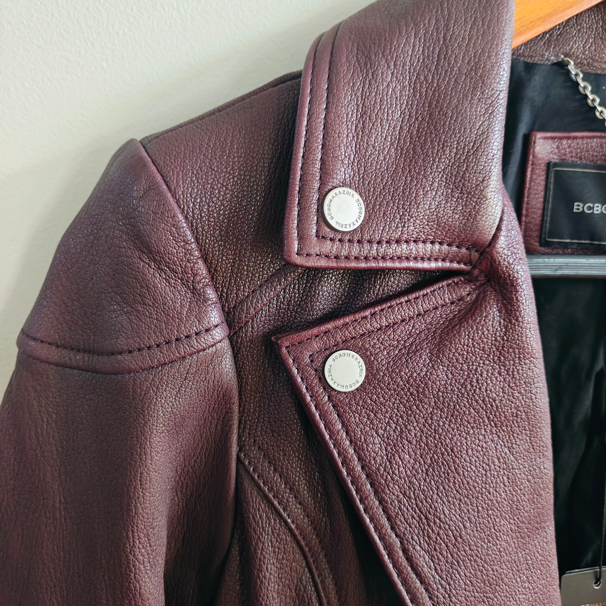 Rendered in a rich burgundy, BCBGMAXAZRIA's leather jacket is a must-have moto for the cool-girl set.