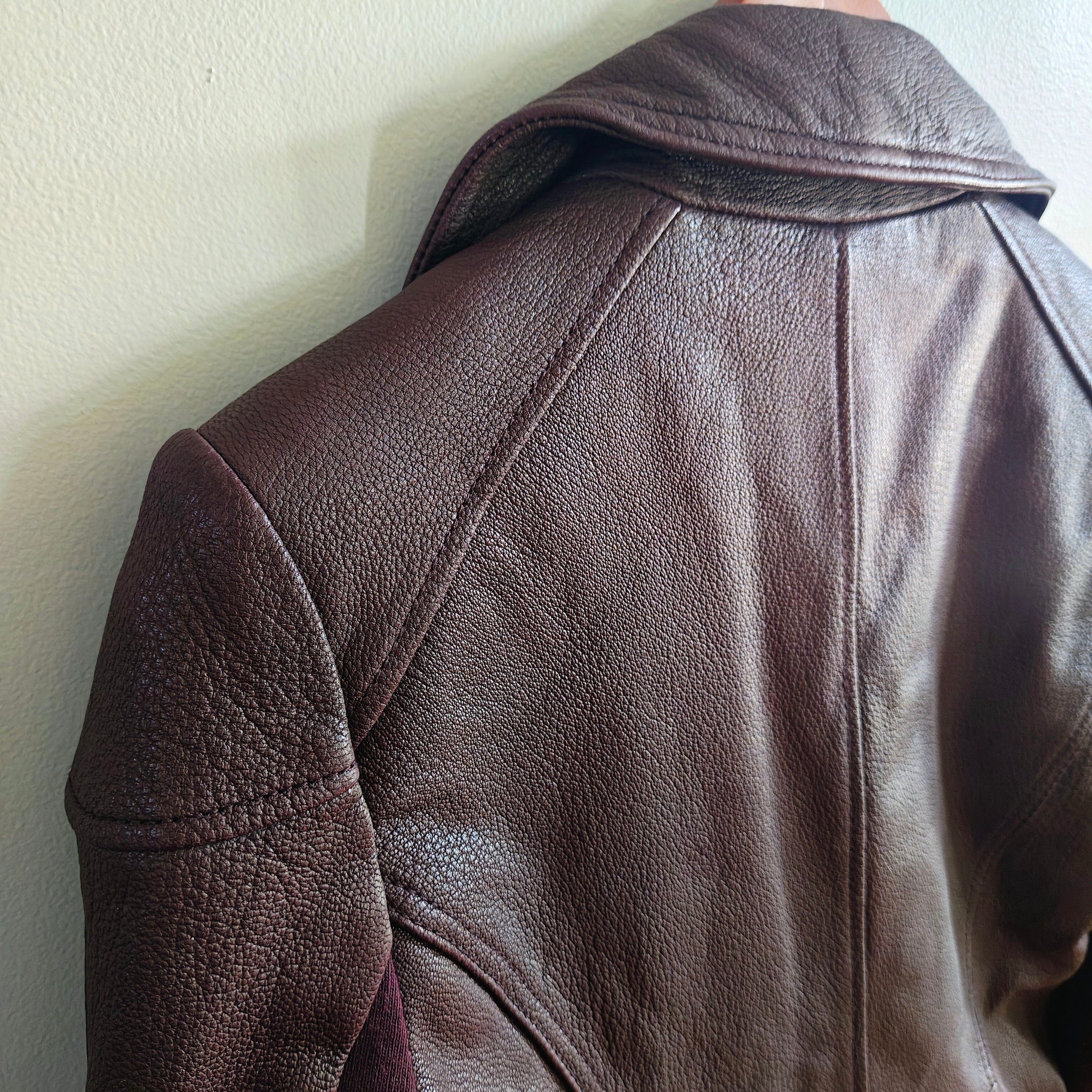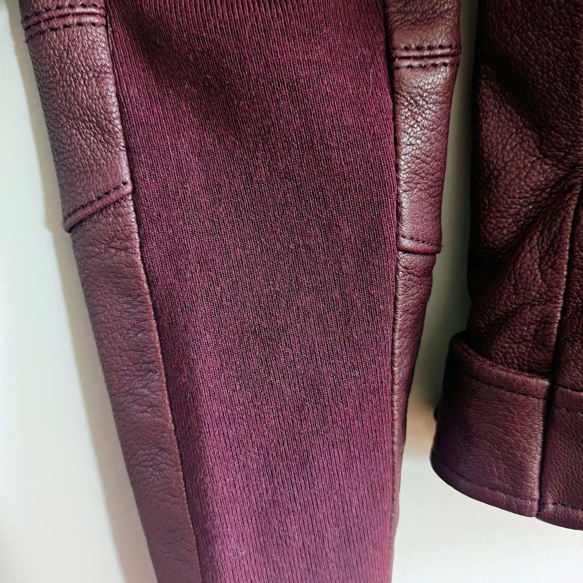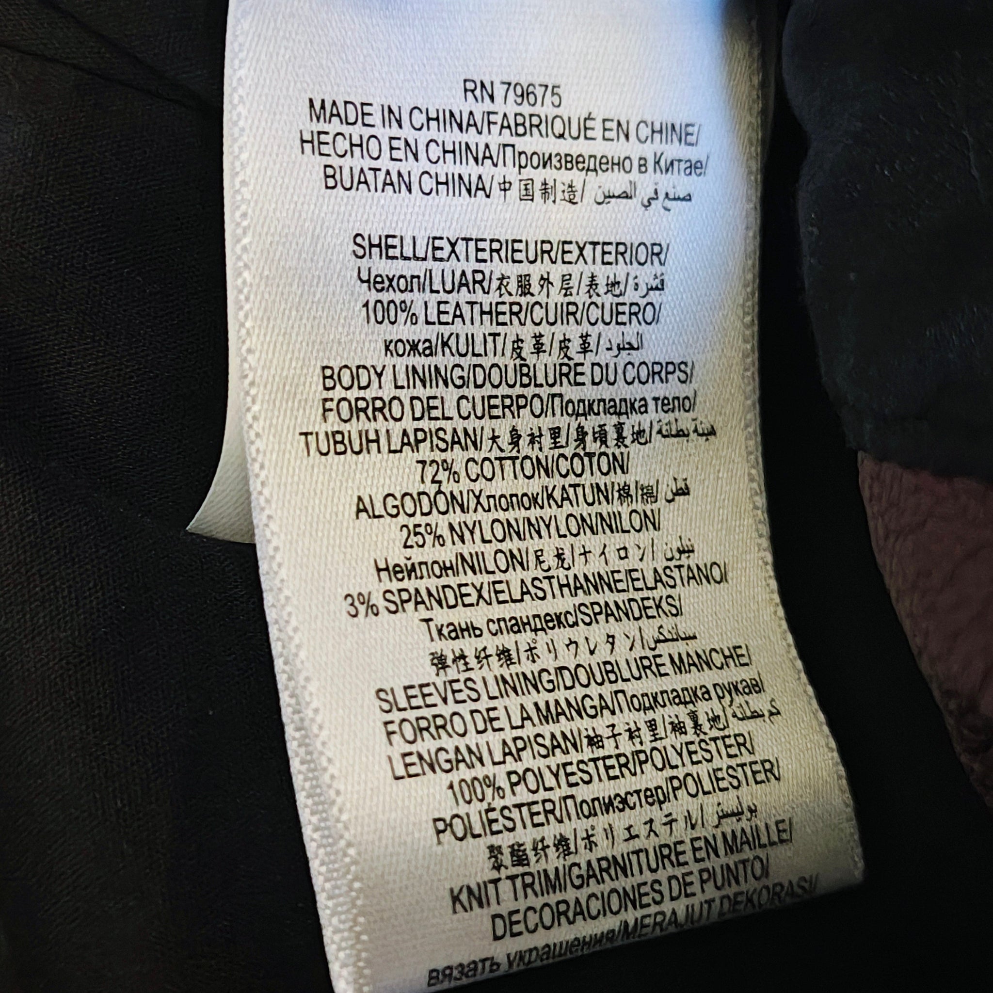 Leather; trim: cotton/polyester/spandex; body lining: cotton/nylon/spandex; sleeve lining: polyester