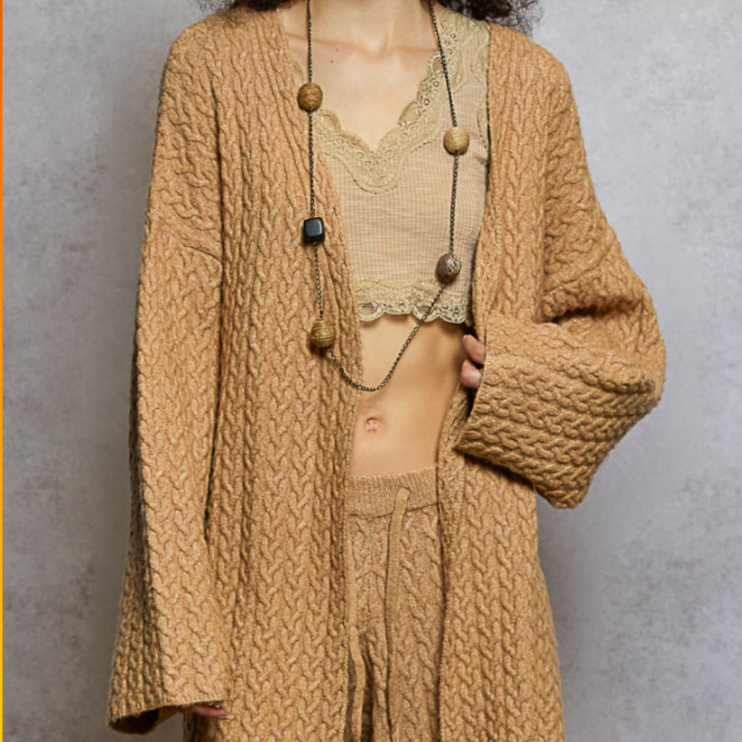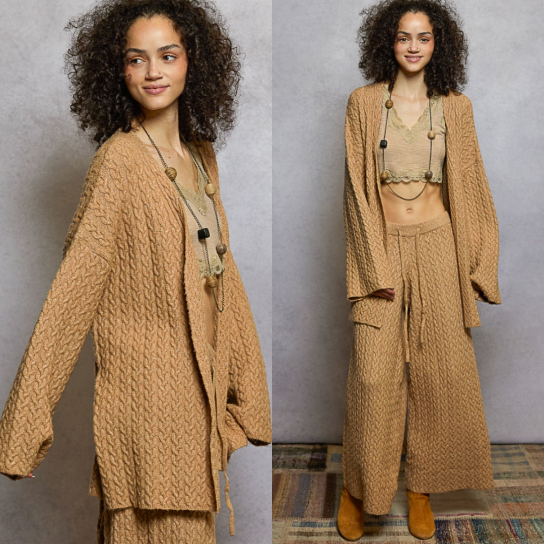 Introducing our Belted Braid Knit Cardigan Sweater, the perfect addition to your fall wardrobe. This V-neck, long sleeve cardigan features a roomy fit and adjustable drawstring detailing for ultimate comfort and style. Made with a soft and cozy knit, you'll never want to take it off. Stay warm and stylish this season with our fashionable cardigan.