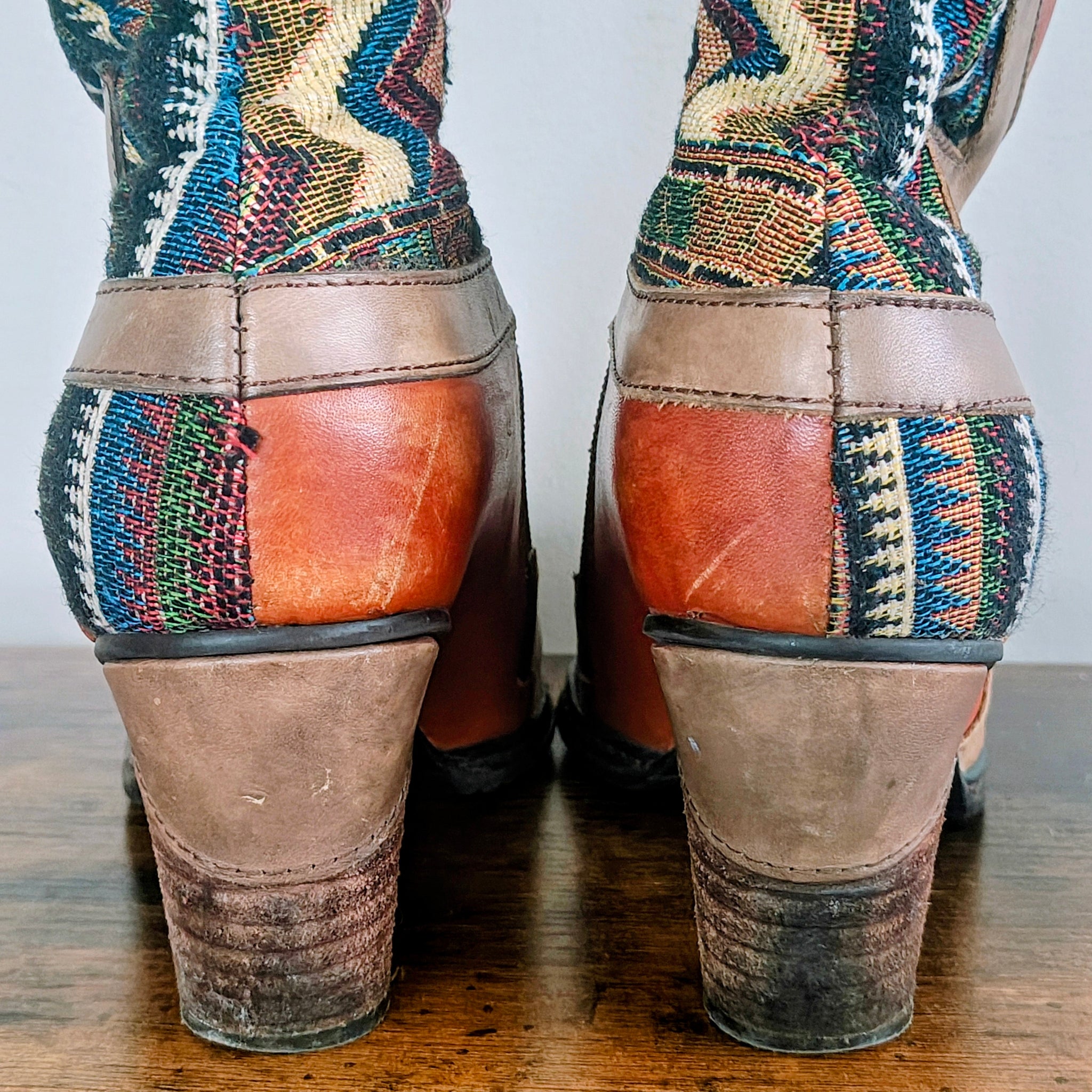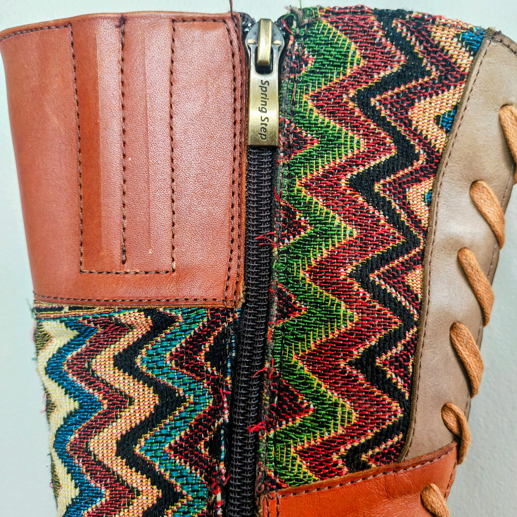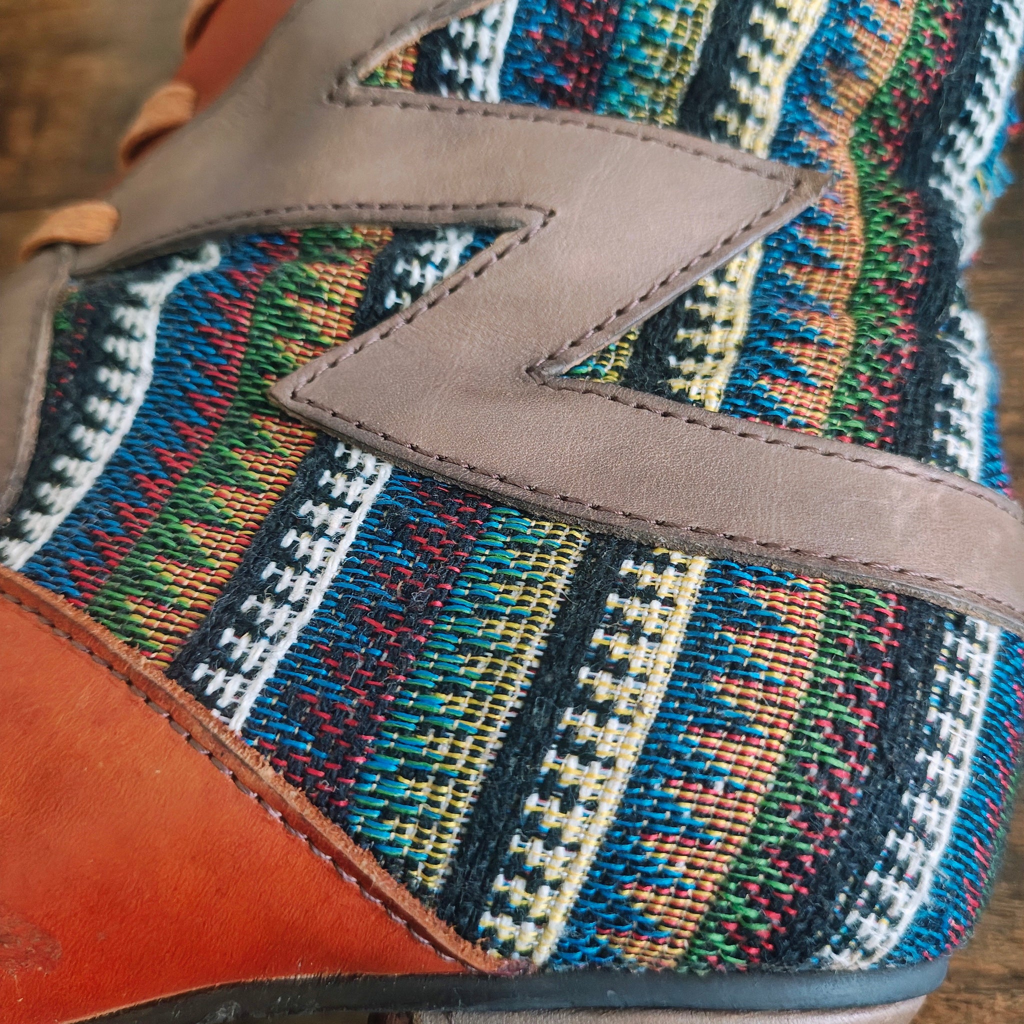 Hand painted leather and fabric upper