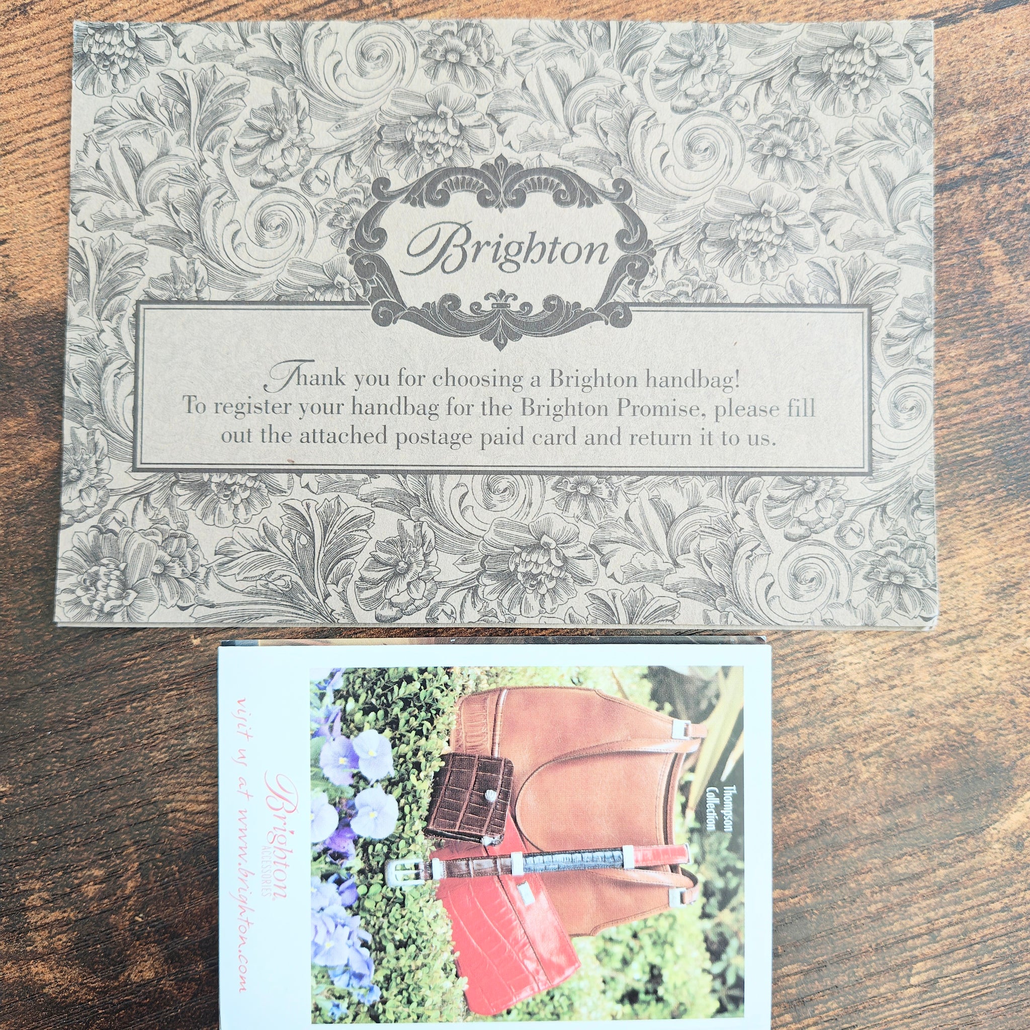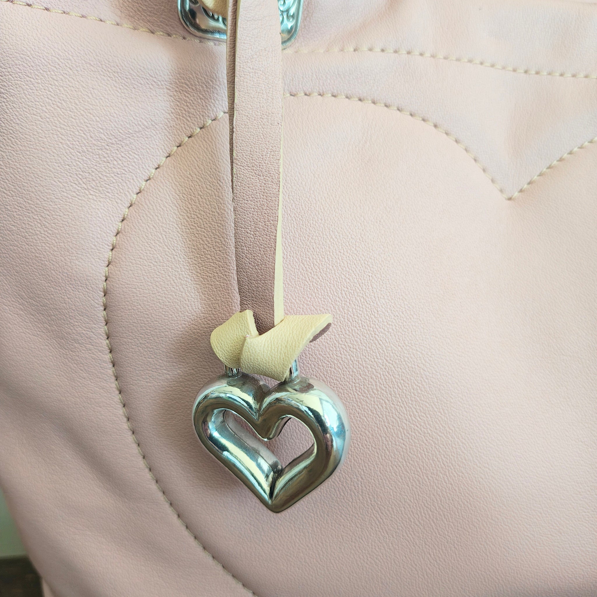 - Material & Hardware: It is made from soft leather and features classic Brighton silver-tone hardware on the handles and a dangling signature heart charm.