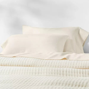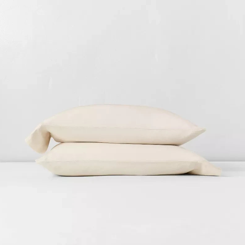 Spruce up your bedding ensemble with the Linen-Blend Pillowcase Set from Casaluna™. Crafted from a soft, breathable fabric blend, this woven pillowcase set is wonderfully soft to the touch and great for year-round use. The pillowcases come in a set of two, in a range of stylish solids or stripes that go with any decor style effortlessly. Pair them with solid sheets and a coverlet in complementing prints or solid colors for a classic look, and when it's time for a refresh, simply toss them in the washing machine and tumble dry.