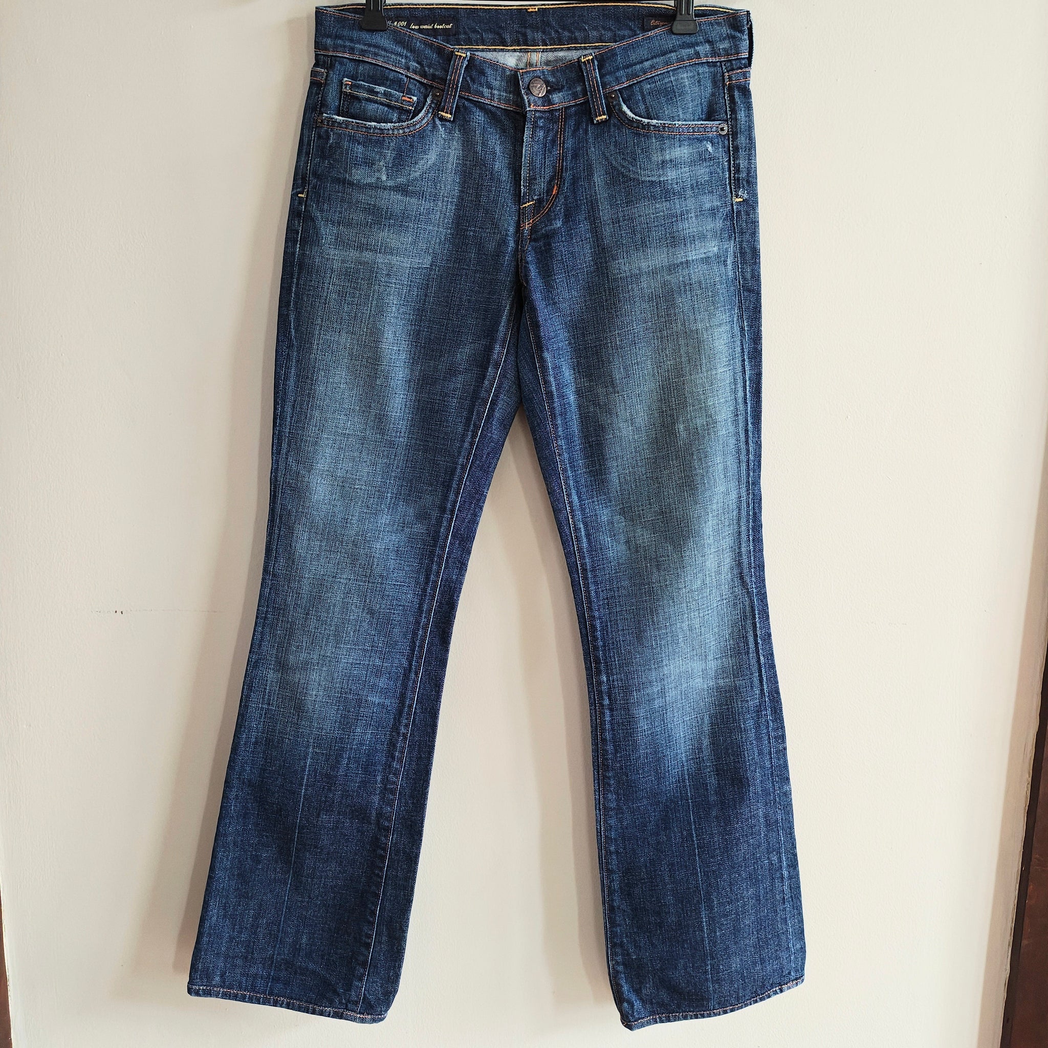 Citizens of Humanity Kelly 001 Stretch low-waist bootcut jeans. They are a classic women's denim style featuring a low rise, bootcut leg opening, and a touch of stretch for fit and comfort.