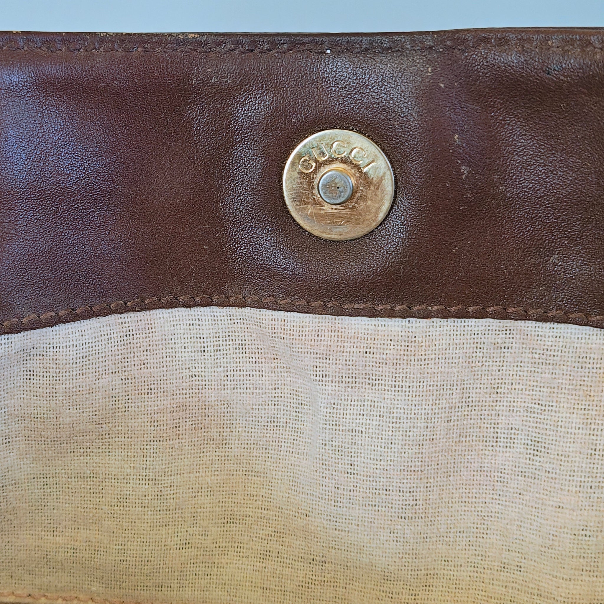 Minor scuffs/scratches or spots in leather and bamboo, very slight rubbing on corners, small indentation in leather. Minor scuffing on hardware but no tarnishing or major blemishes.