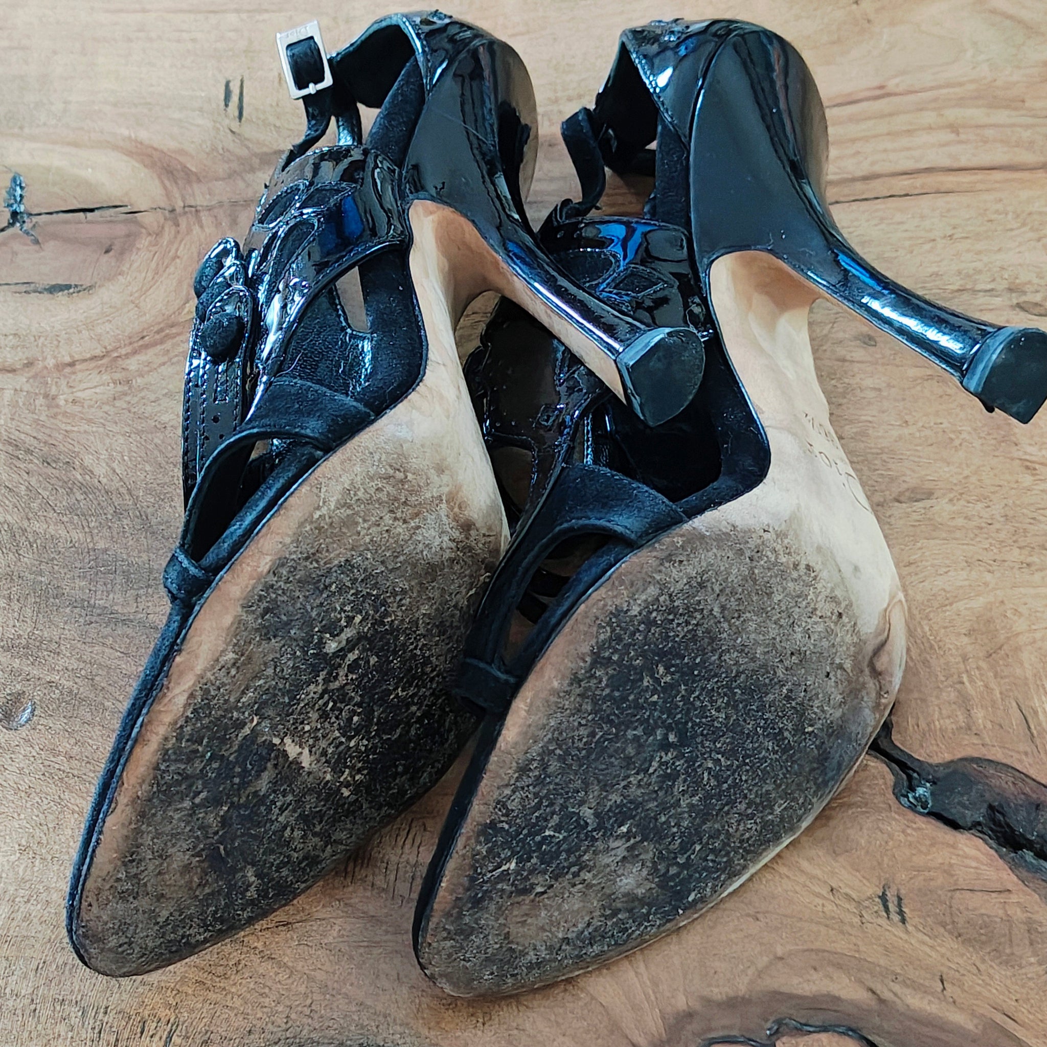 Shows signs of normal use including minimal scuffing to uppers, wear to insoles and soles.