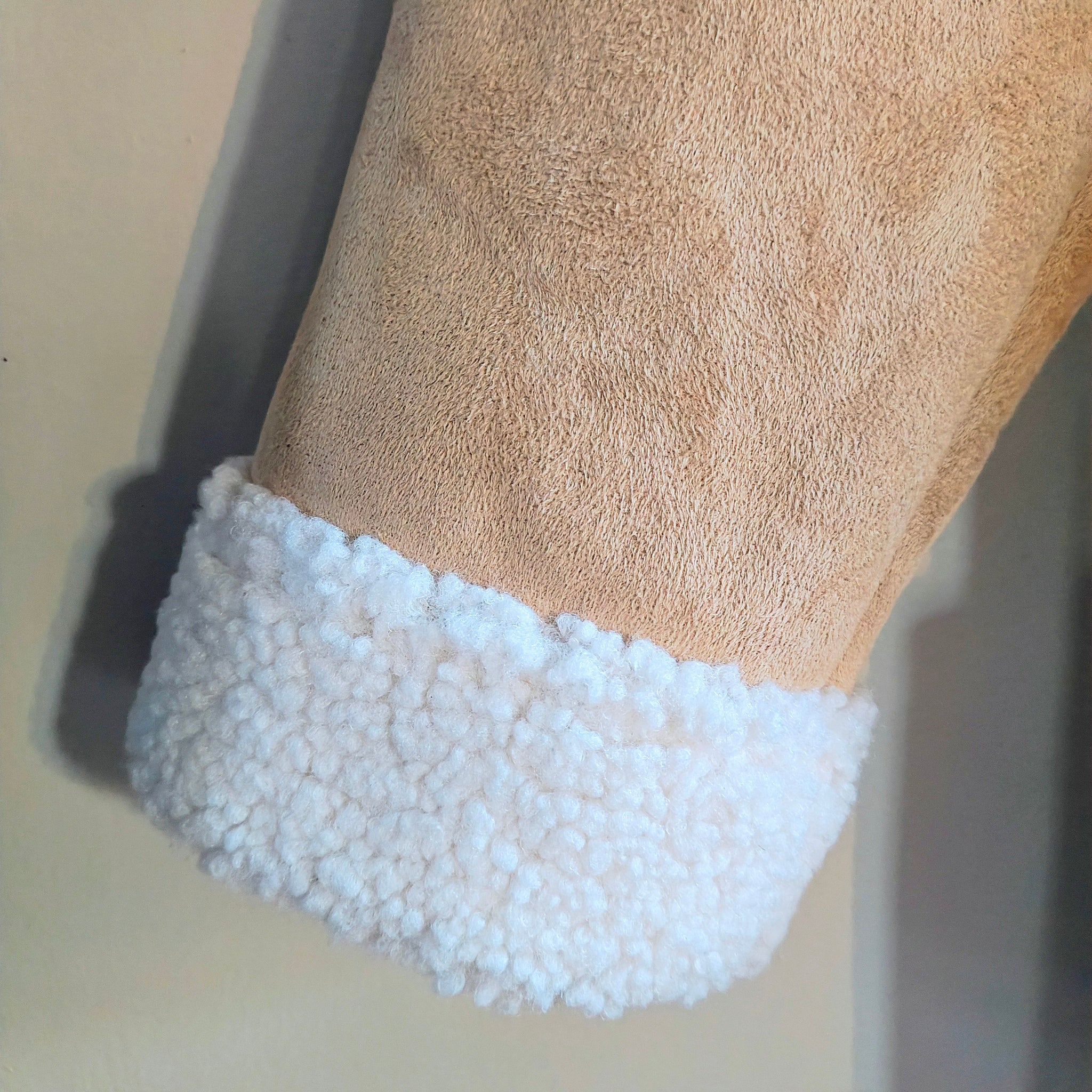 Material: Faux suede outer with a faux-fur/sherpa lining, 100% polyester.