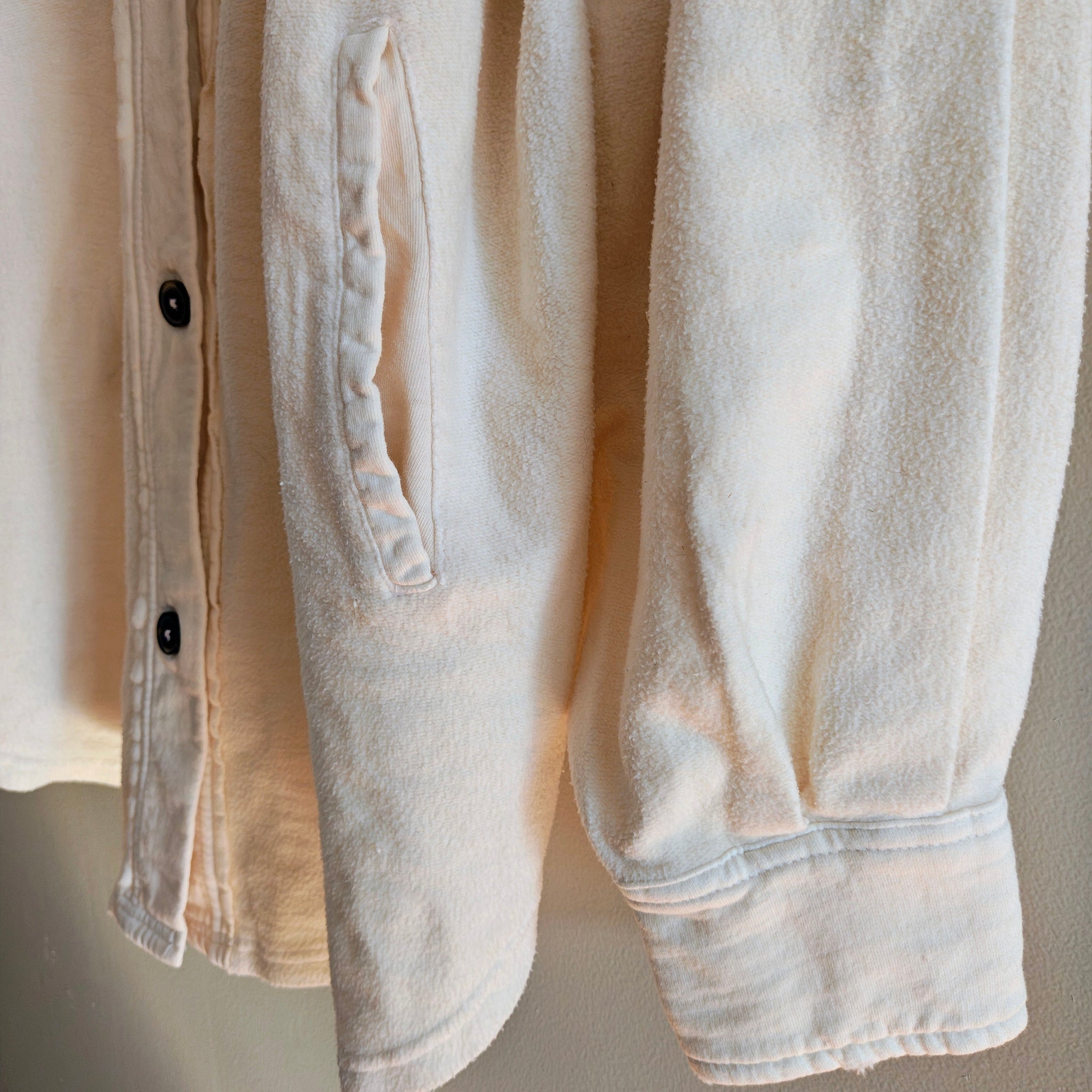 Free People Ruby Jacket, a popular "shacket" (shirt-jacket) known for its cozy, oversized fit. It features a soft fleece-like texture, button-down front, and large chest pockets.