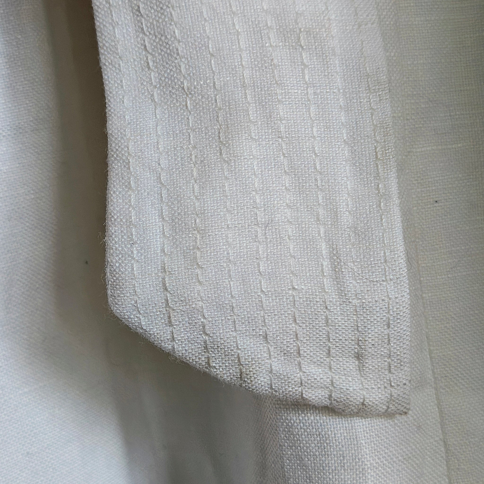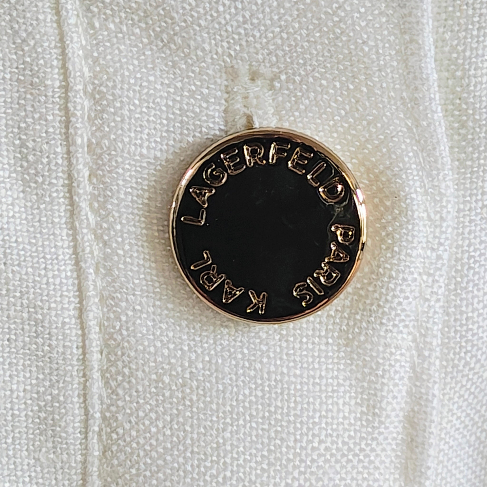 - Front Closure: A functional button-down front runs the full length of the garment, using gold buttons.