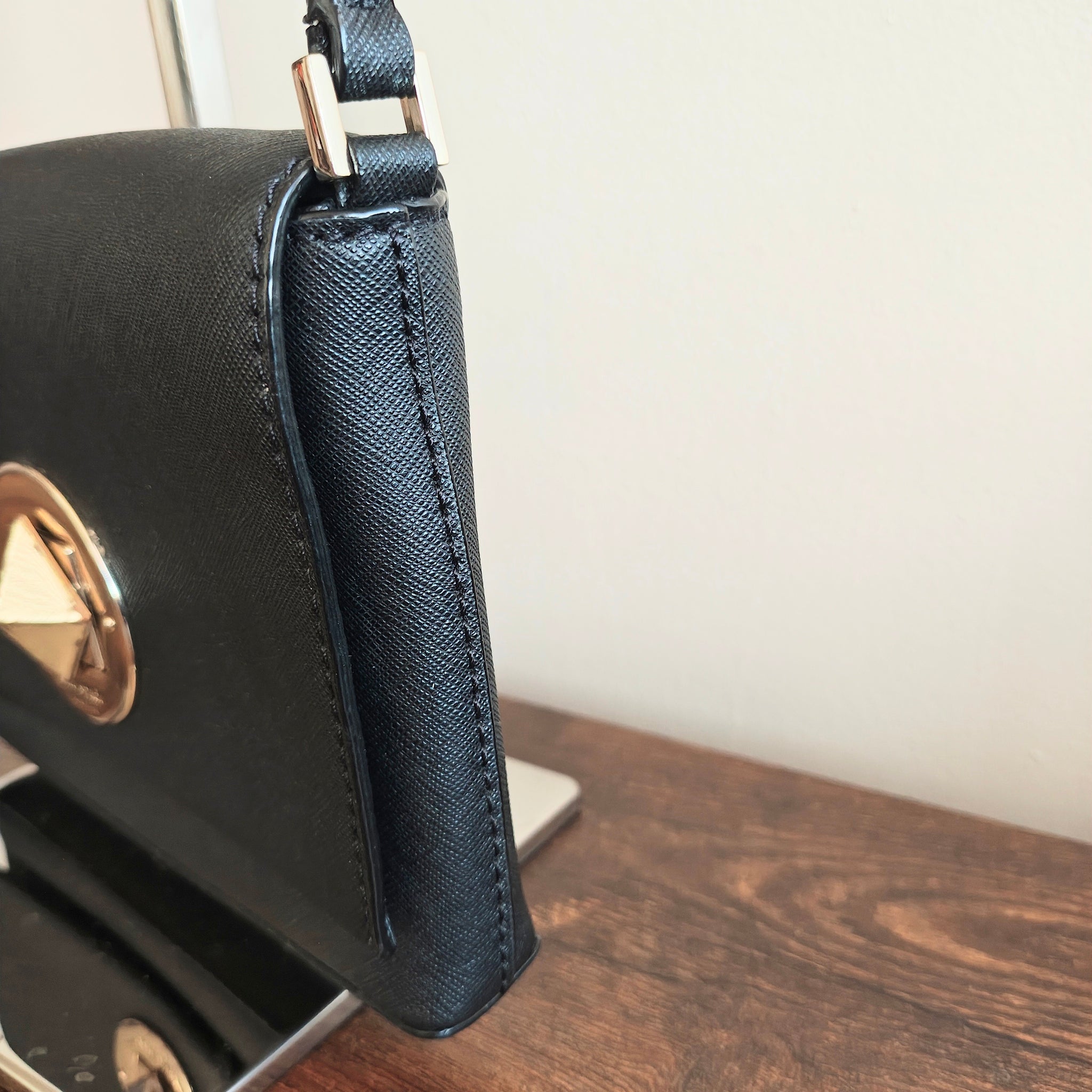 Material: Saffiano leather, known for its durability and subtle crosshatch texture.