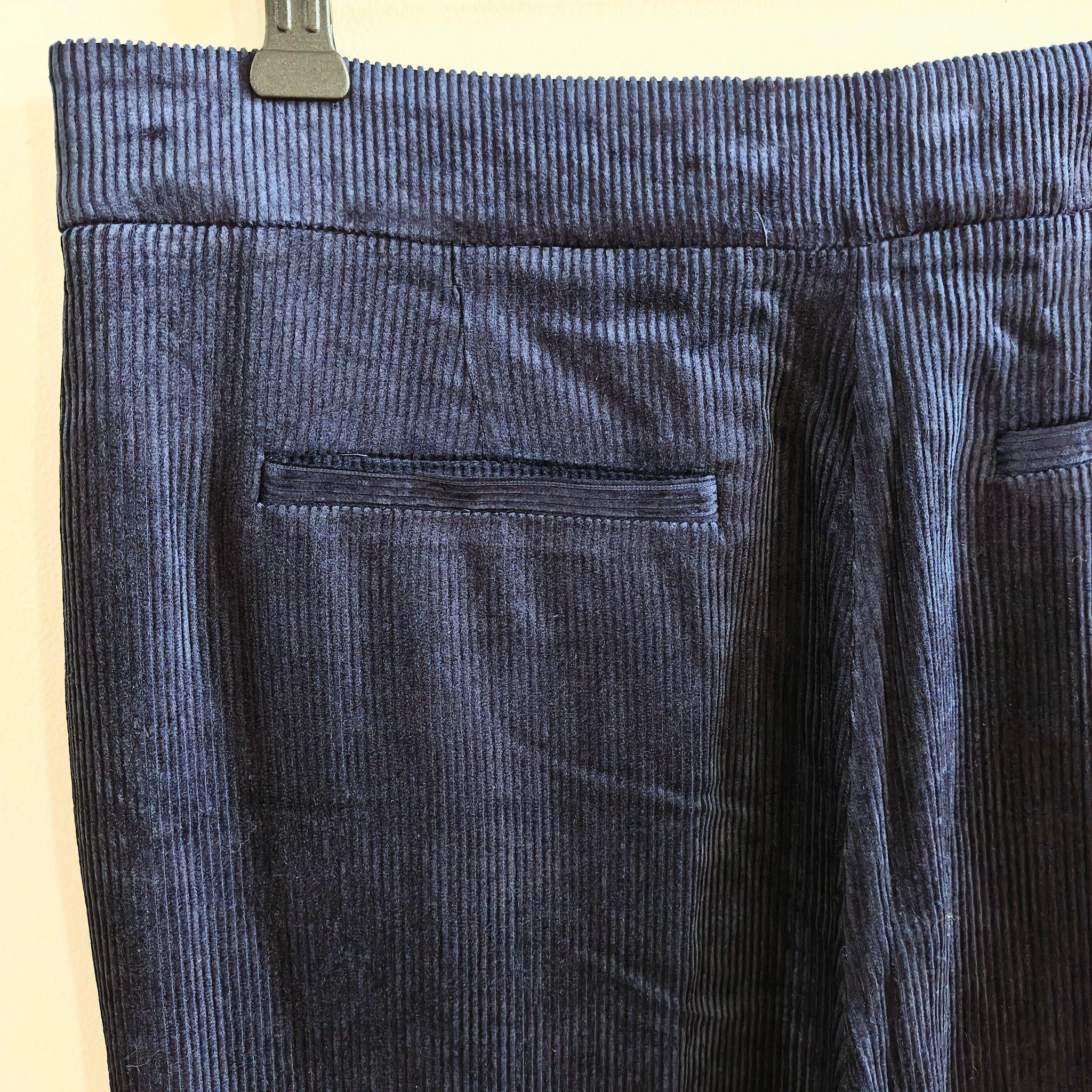 - Concealed zip fly, hook-and-bar closure