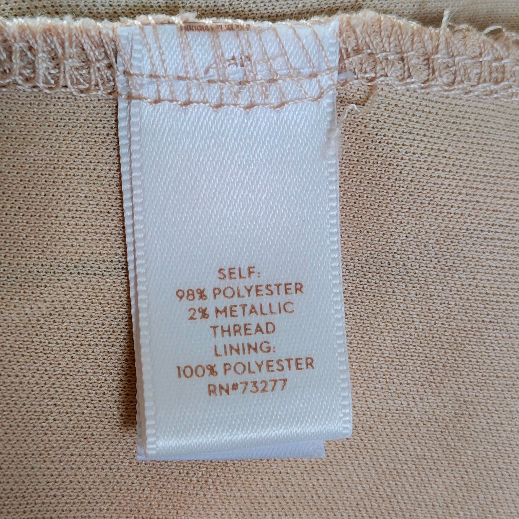 Fabric: Lightweight textured chiffon-like polyester. 98 polyester, 2 metallic