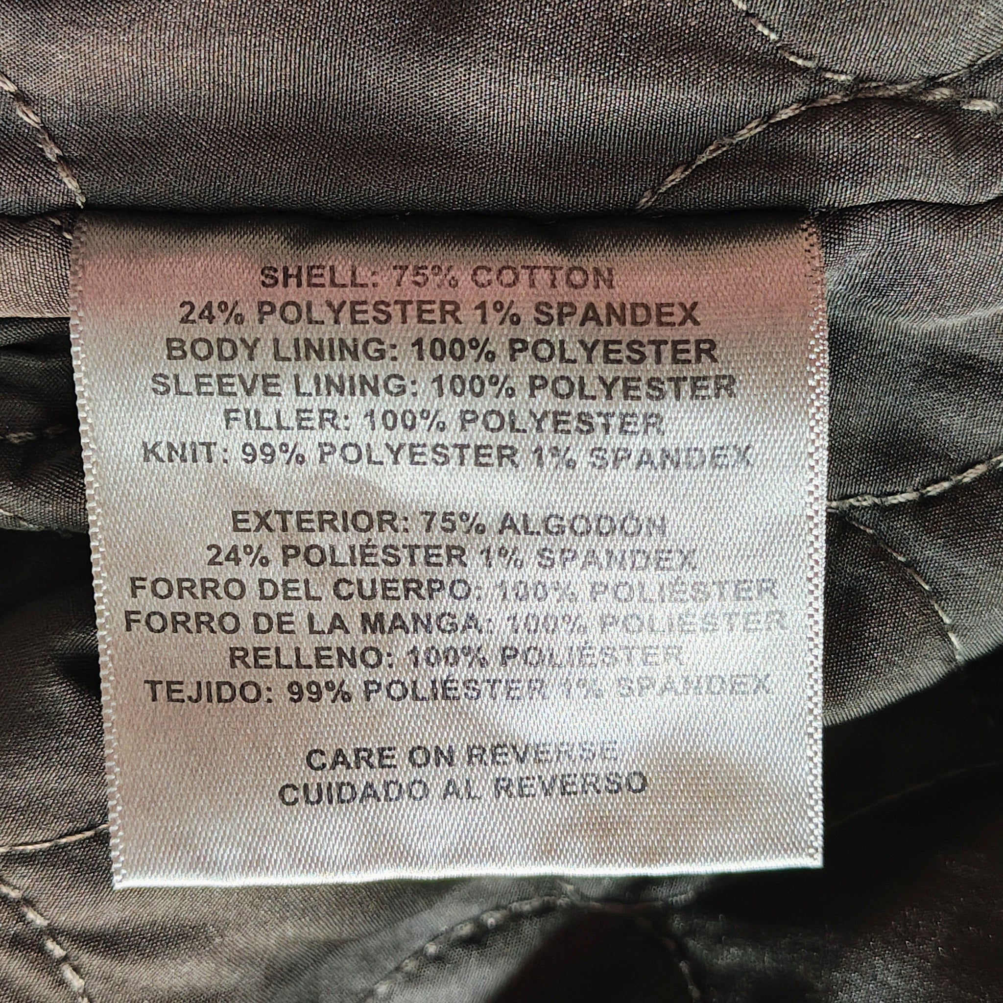 - Material: Durable cotton canvas shell with a blanket or quilted lining. 75 cotton, 24 polyester, 1 spandex