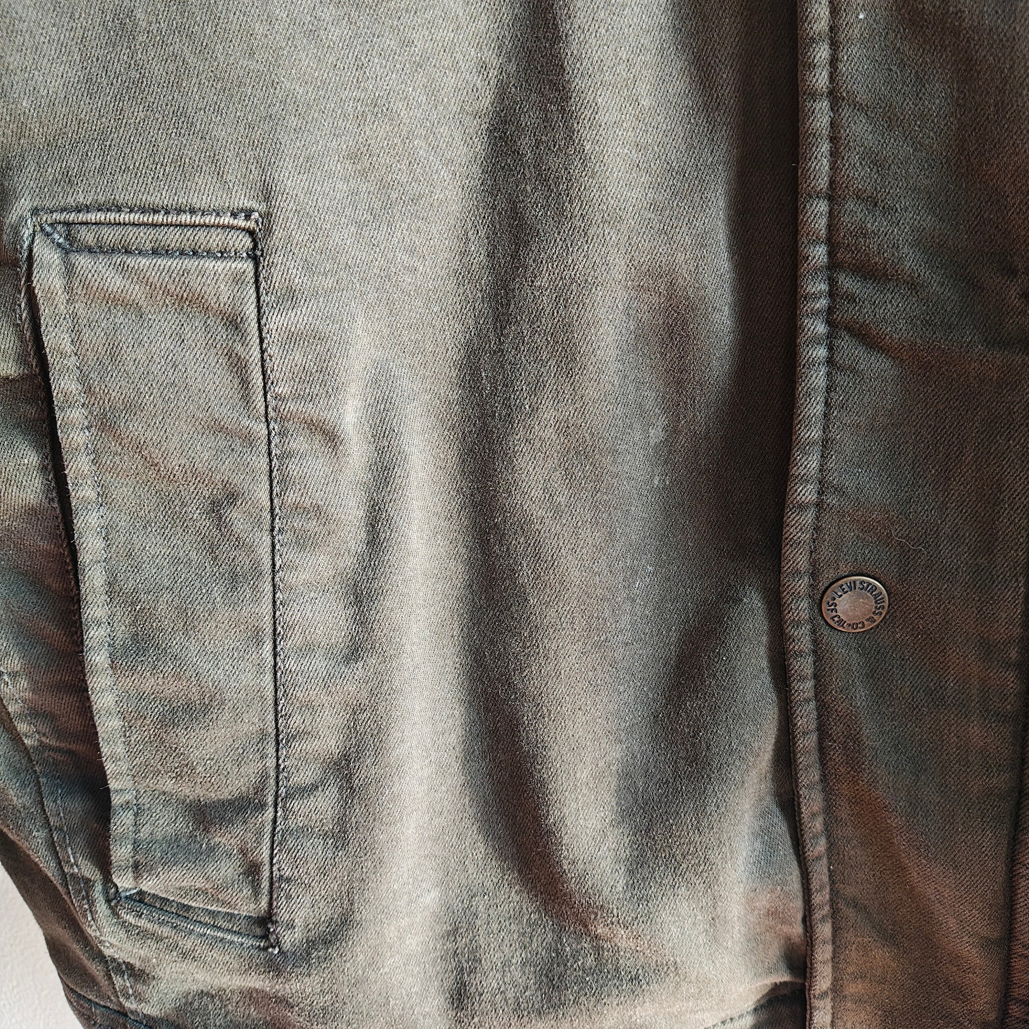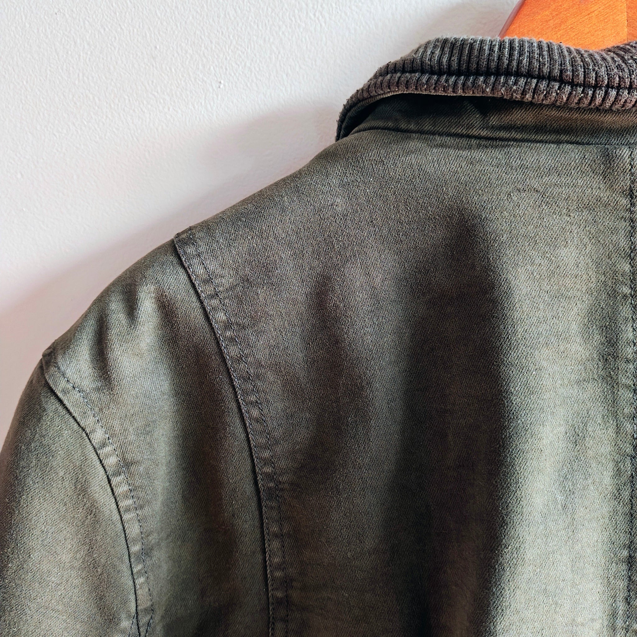 - Style: Utility, military, or field coat design, distinguishing it from the traditional denim trucker jacket style