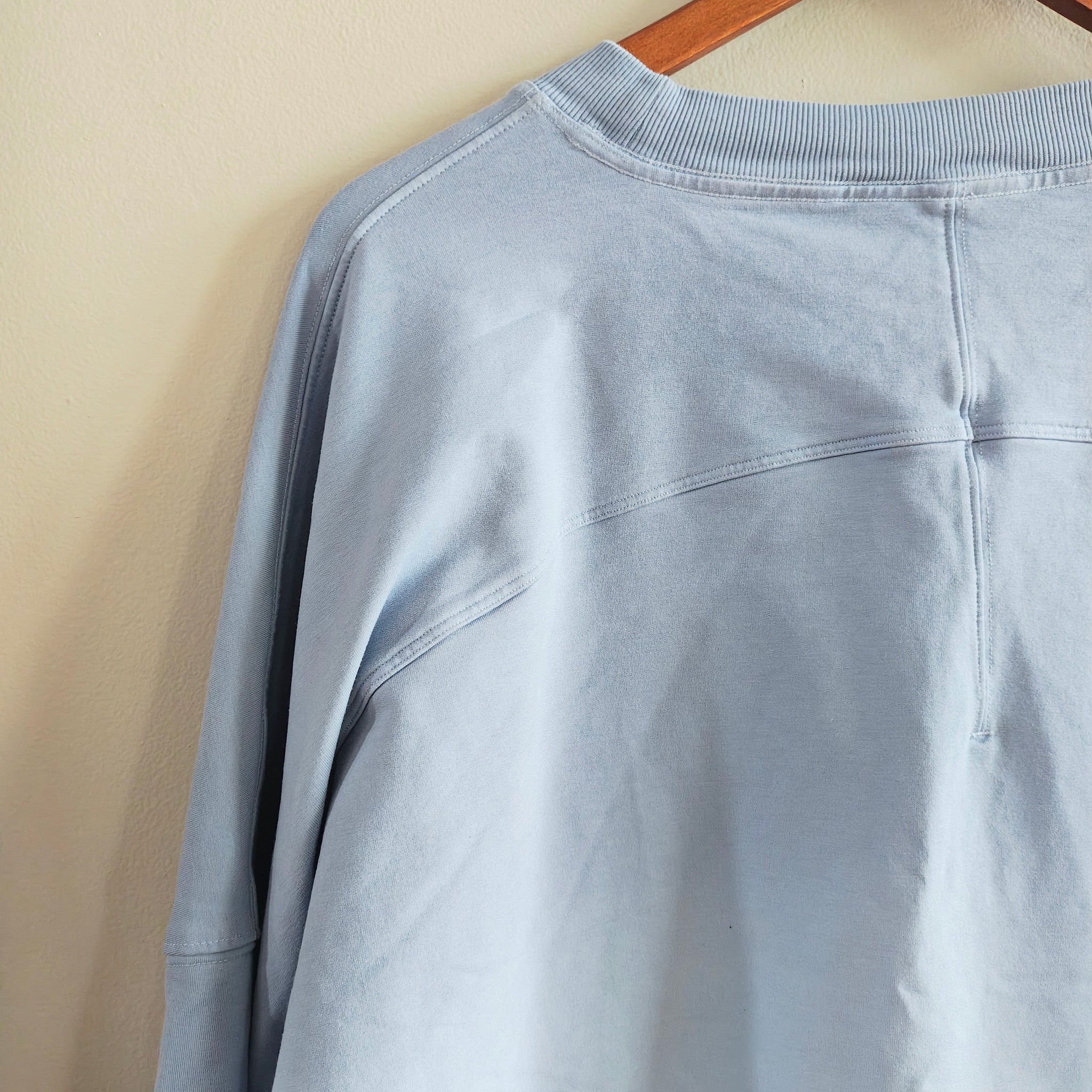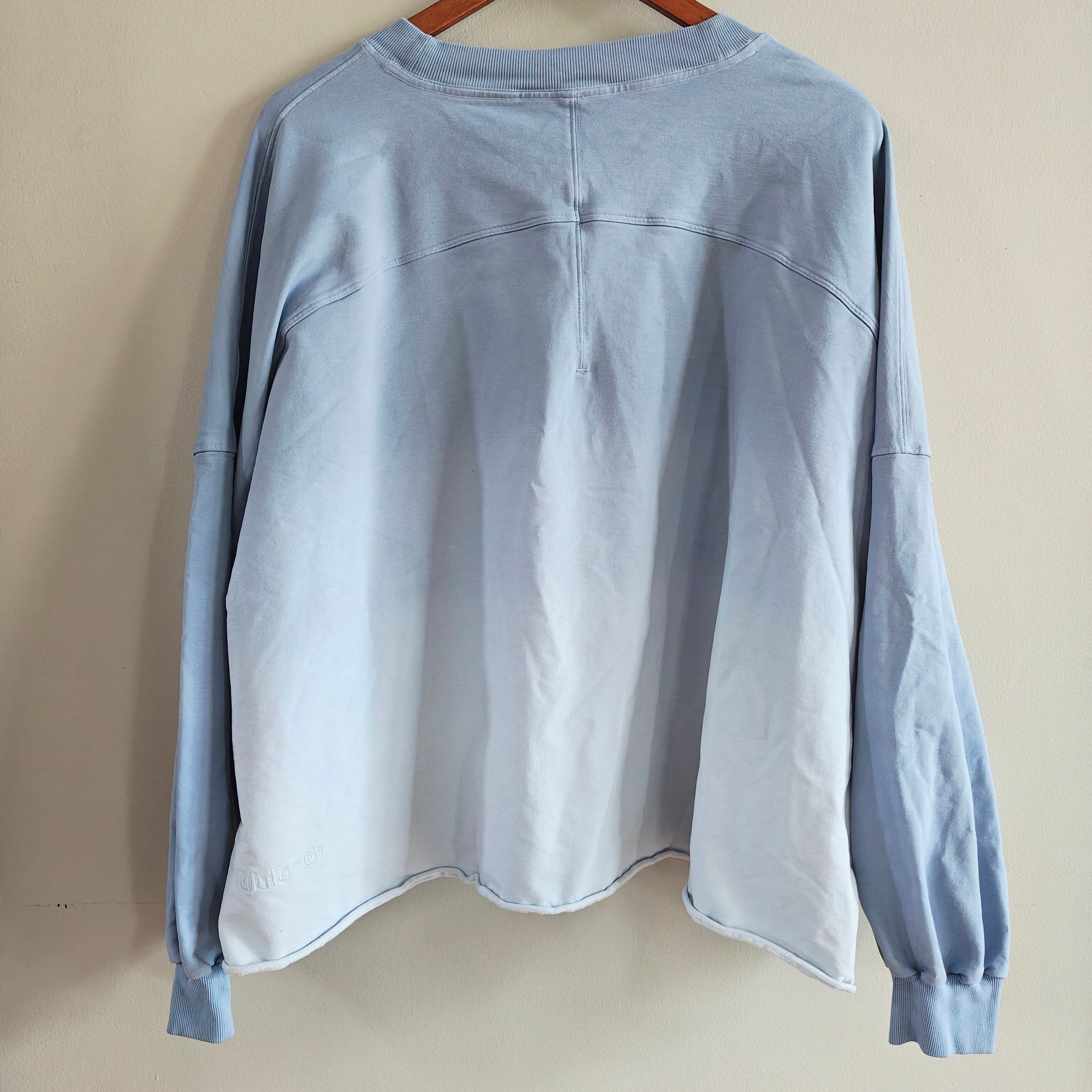 - Style Details: Crewneck design, long balloon sleeves with cuffs, and a raw-edge hem.