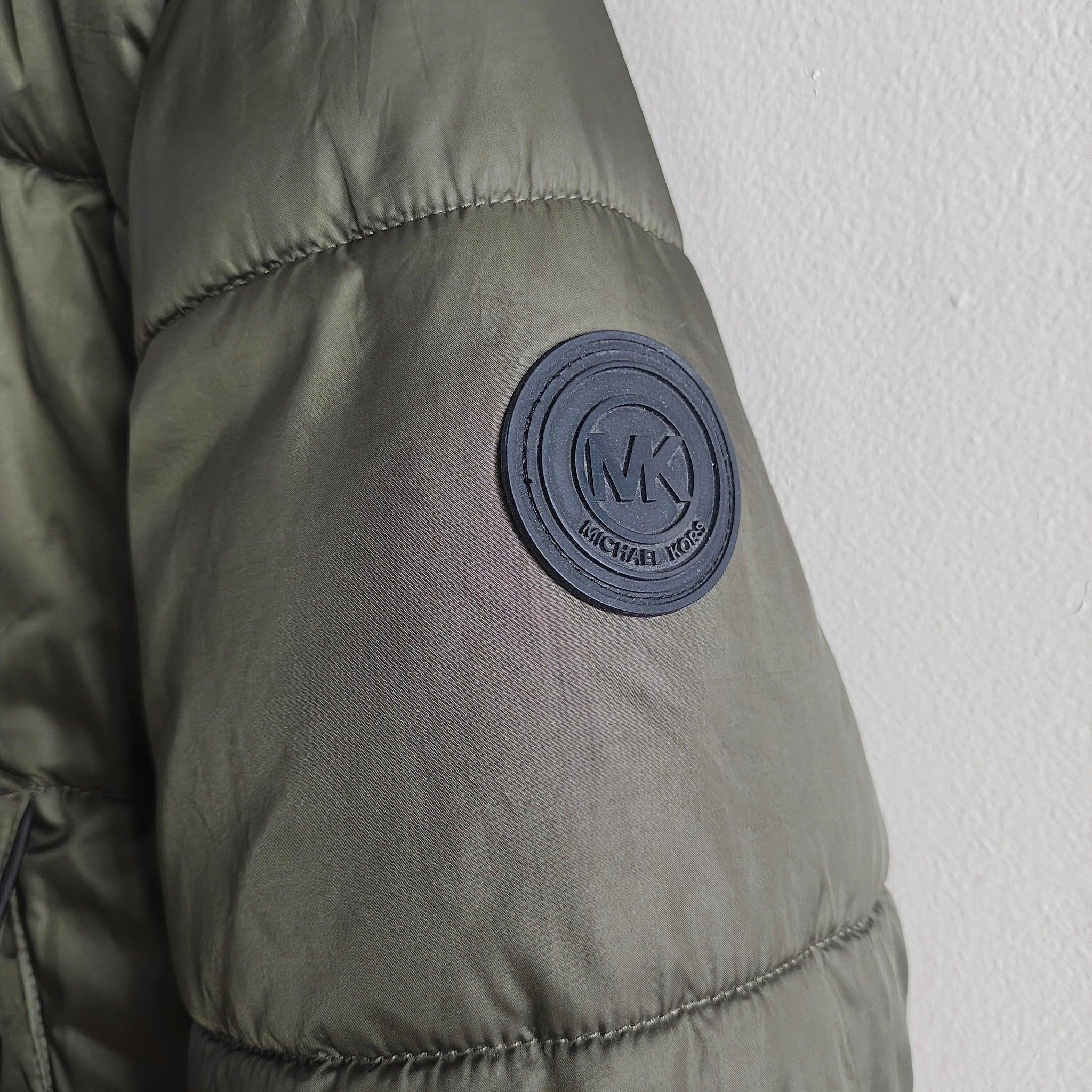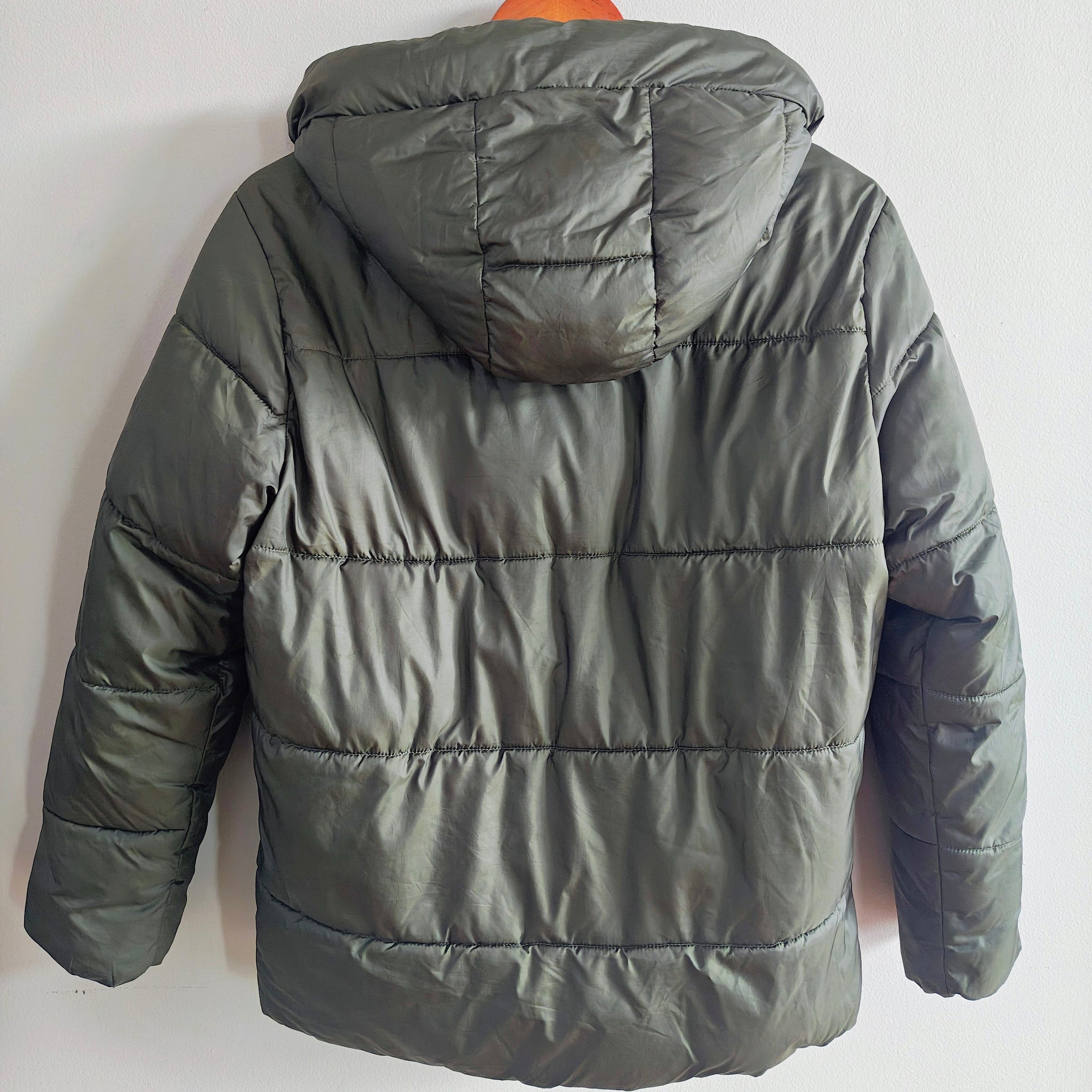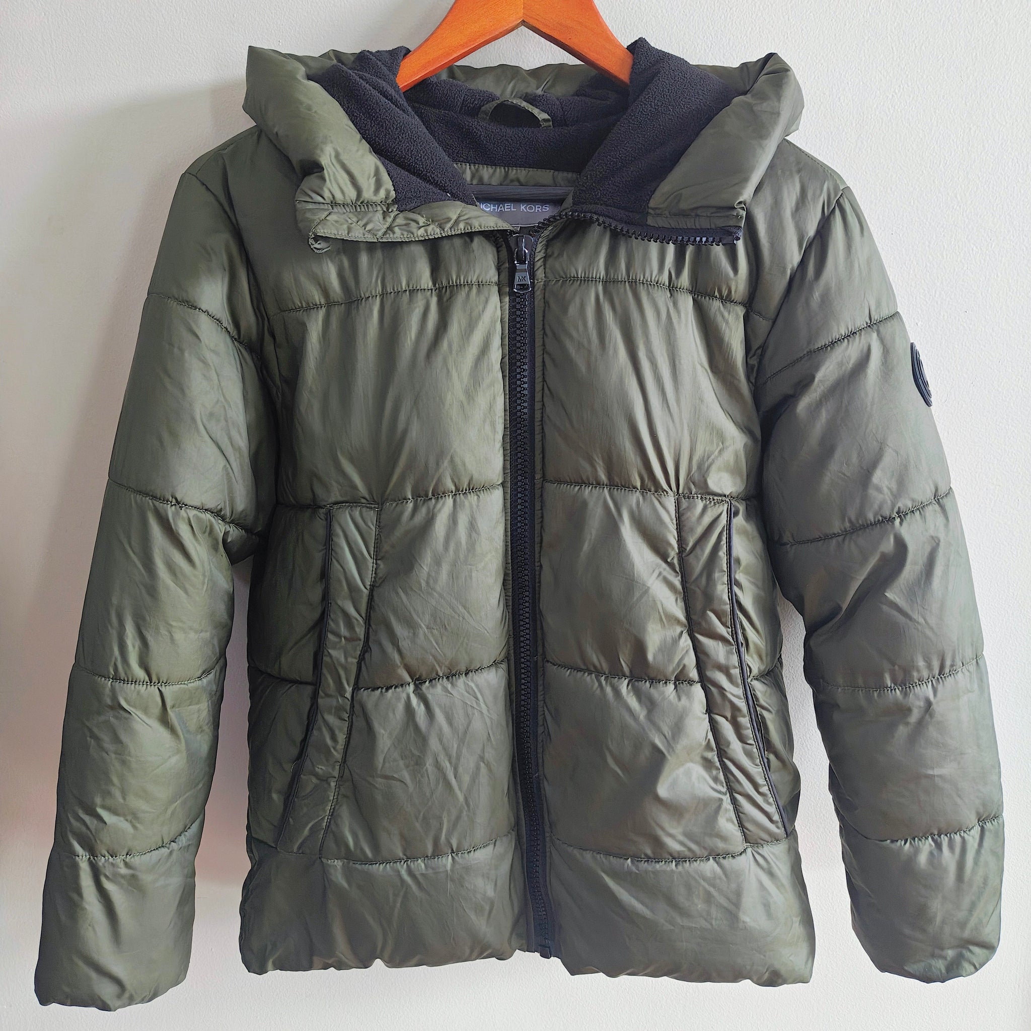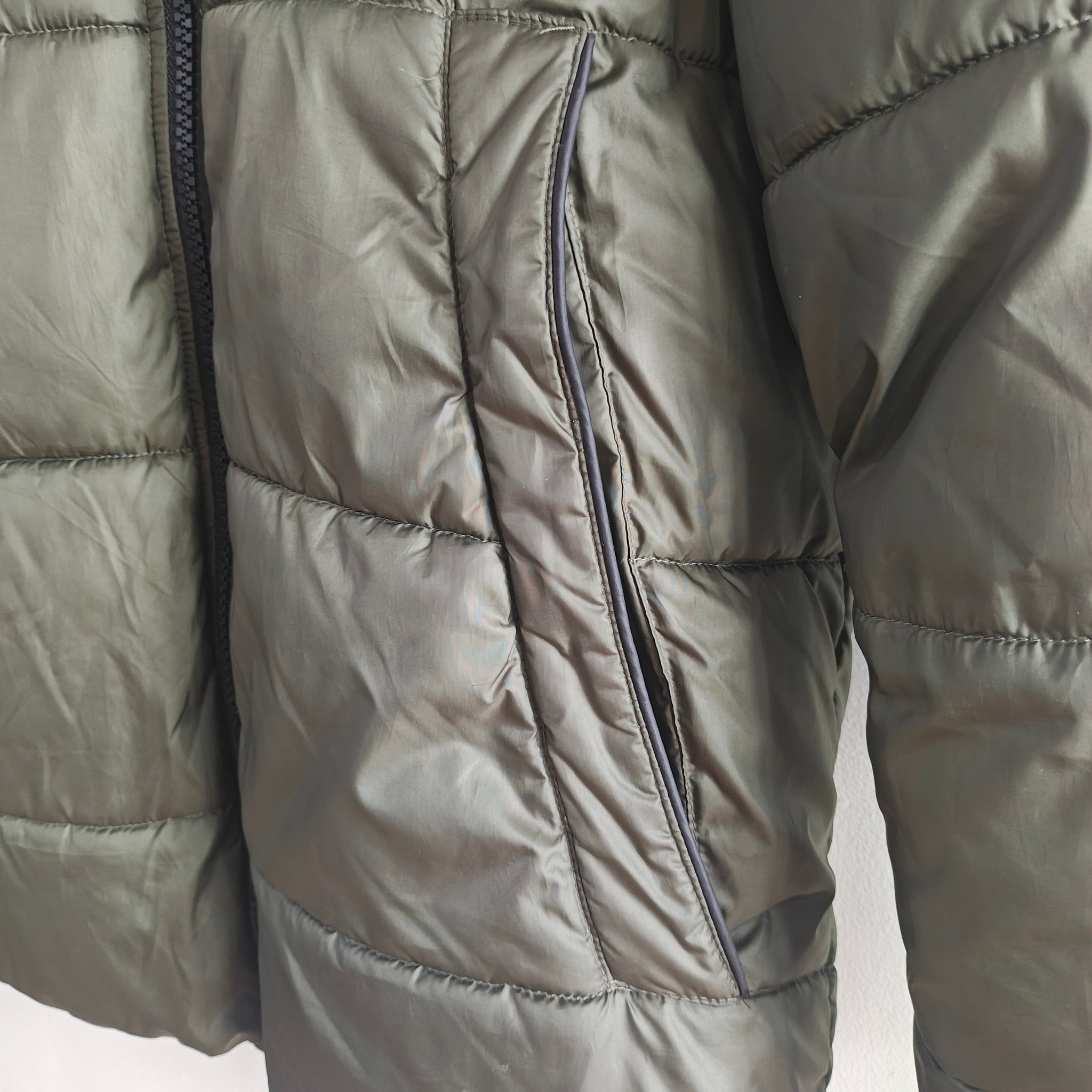 Style: Puffer jacket with an attached hood and full-zip closure with front pockets and hidden interior pocket.