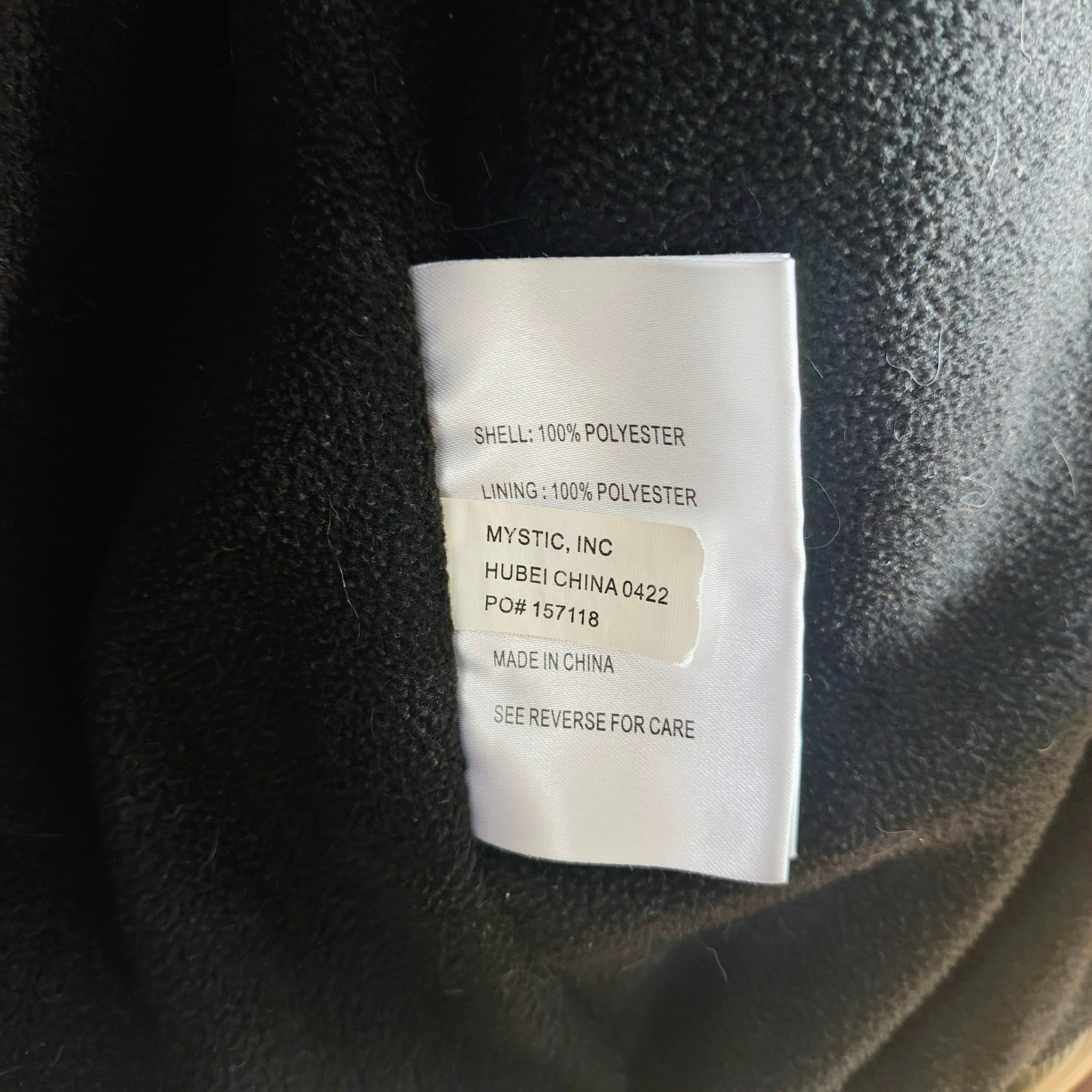 Features a black polyester fleece inner collar/lining and logo patch on the left sleeve.