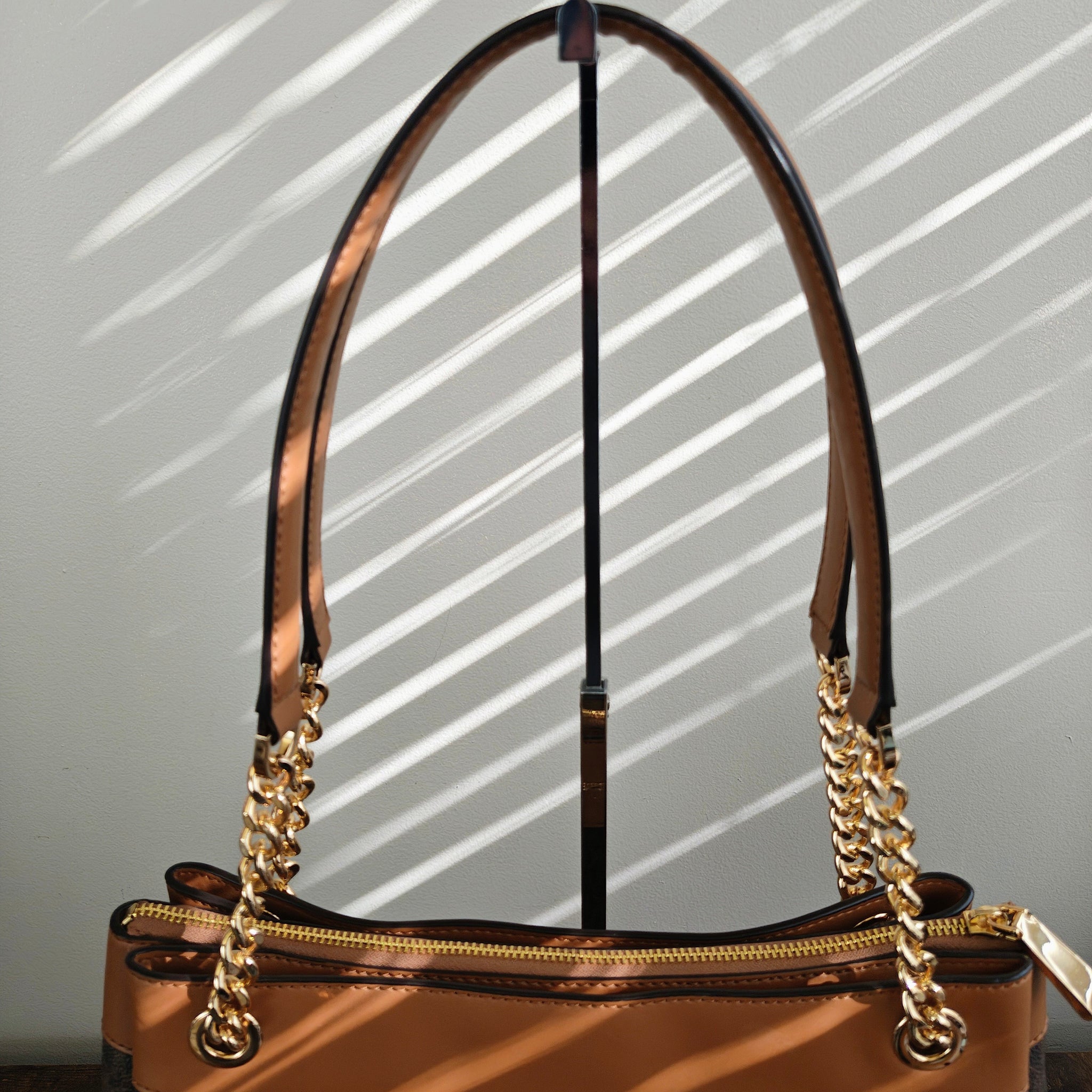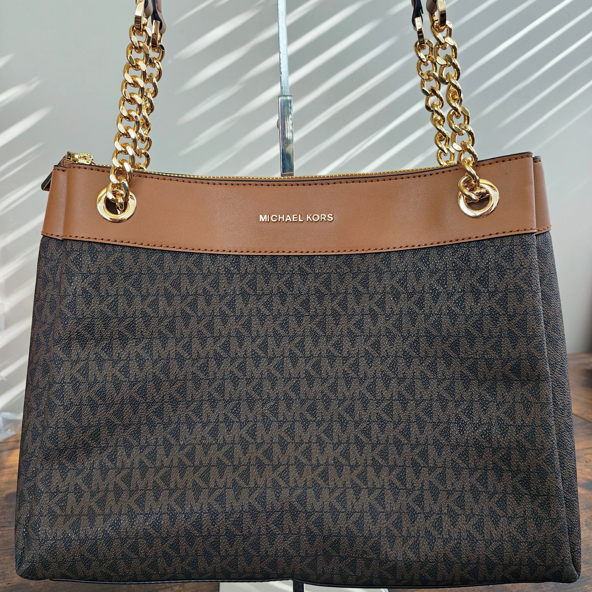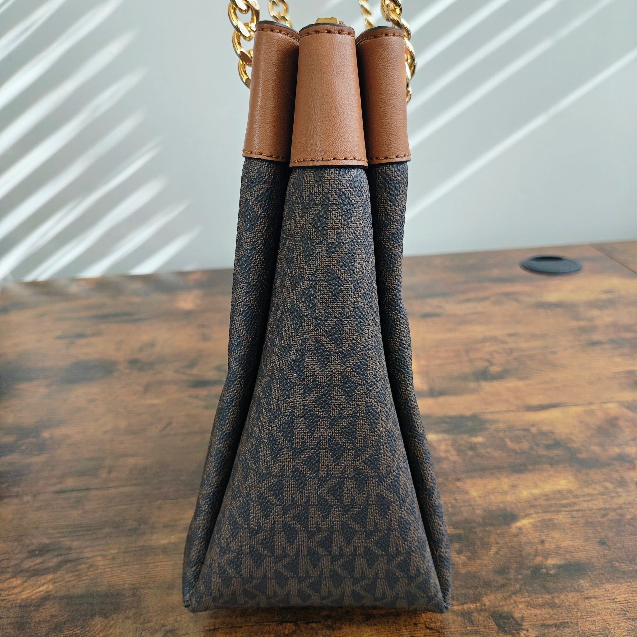 Embrace everyday glamour with the Signature print Lori bag, designed in a classic tote silhouette. The top zip fastening keeps your essentials safe, while two adjoining snap pockets offer added storage. Every detail is carefully considered, from the chain-link top handle to the protective feet at the base.