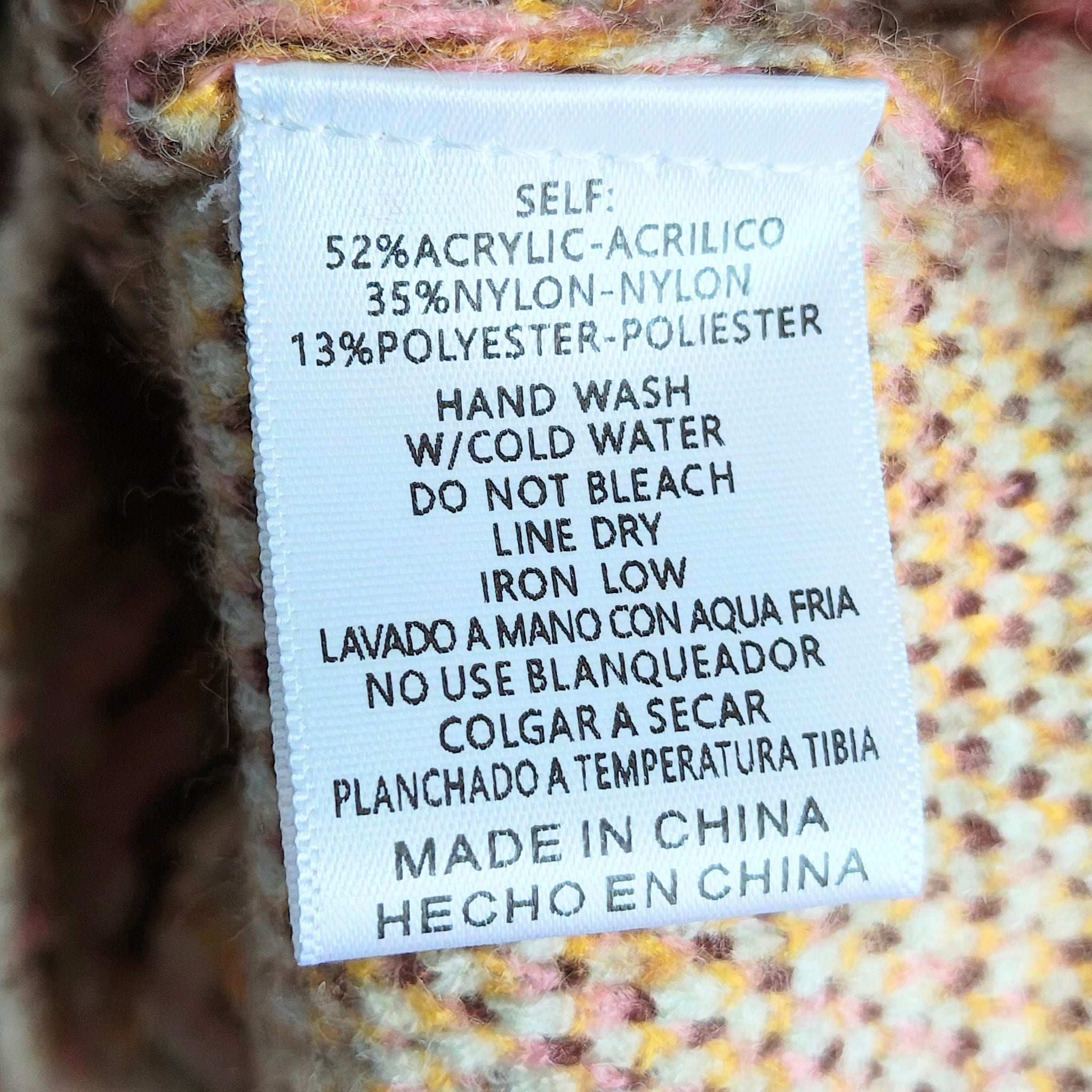Material: Feels soft and is designed for layering. 52 acrylic, 35 nylon, 13 polyester