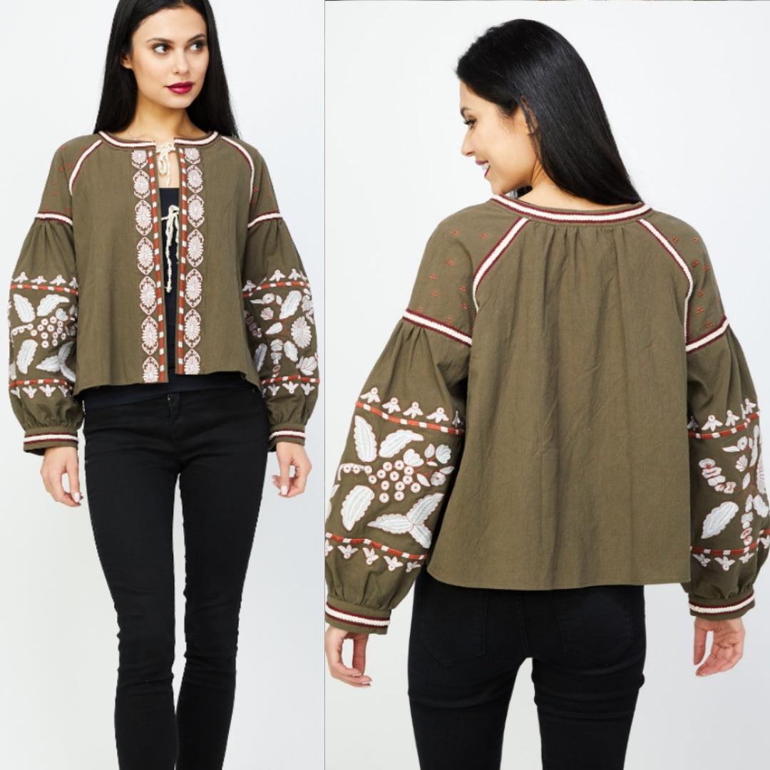 Style: Bohemian/Peasant style jacket or top