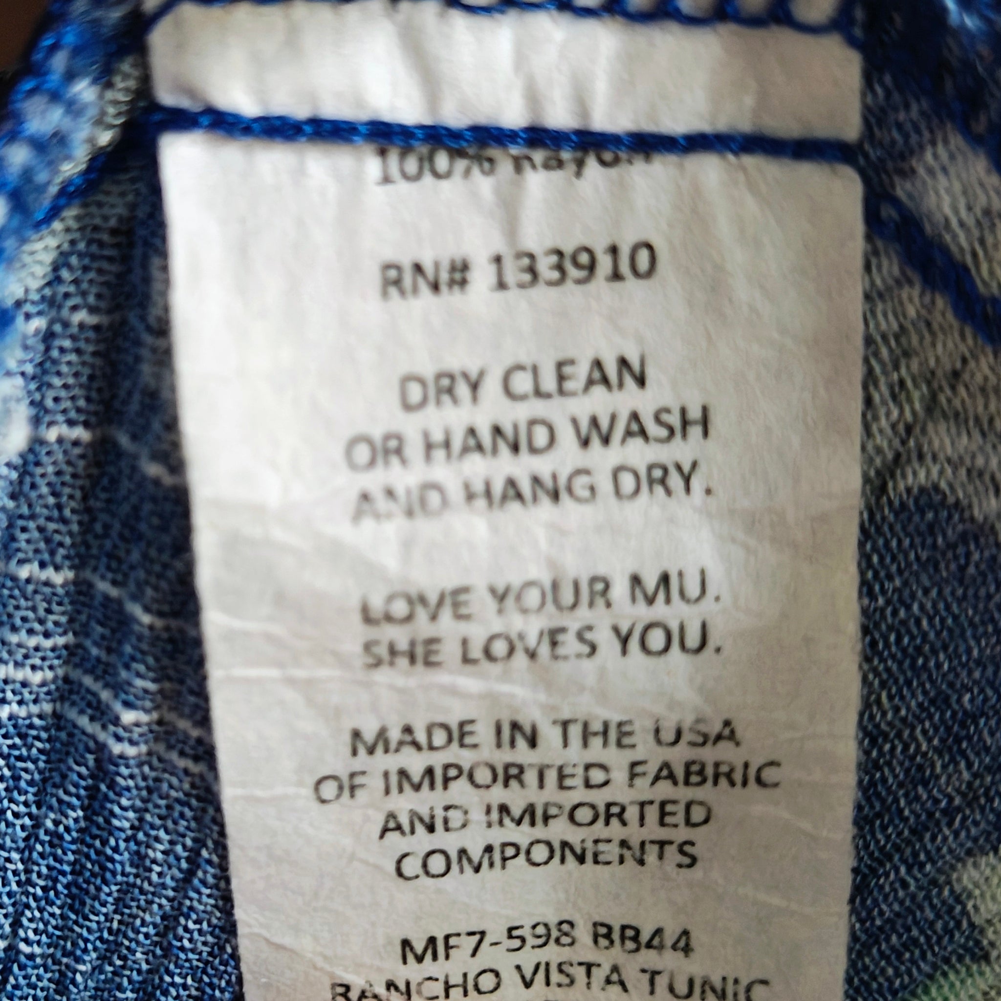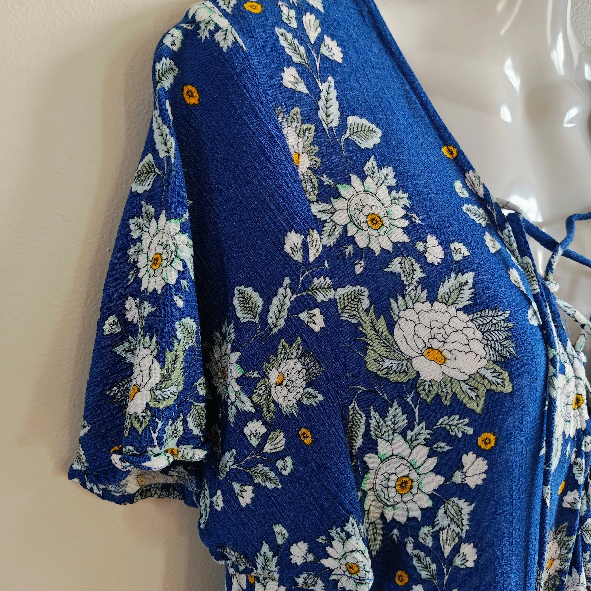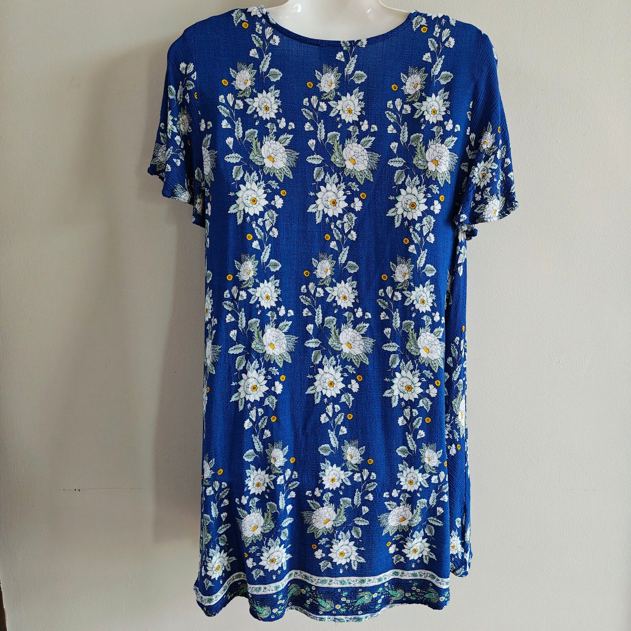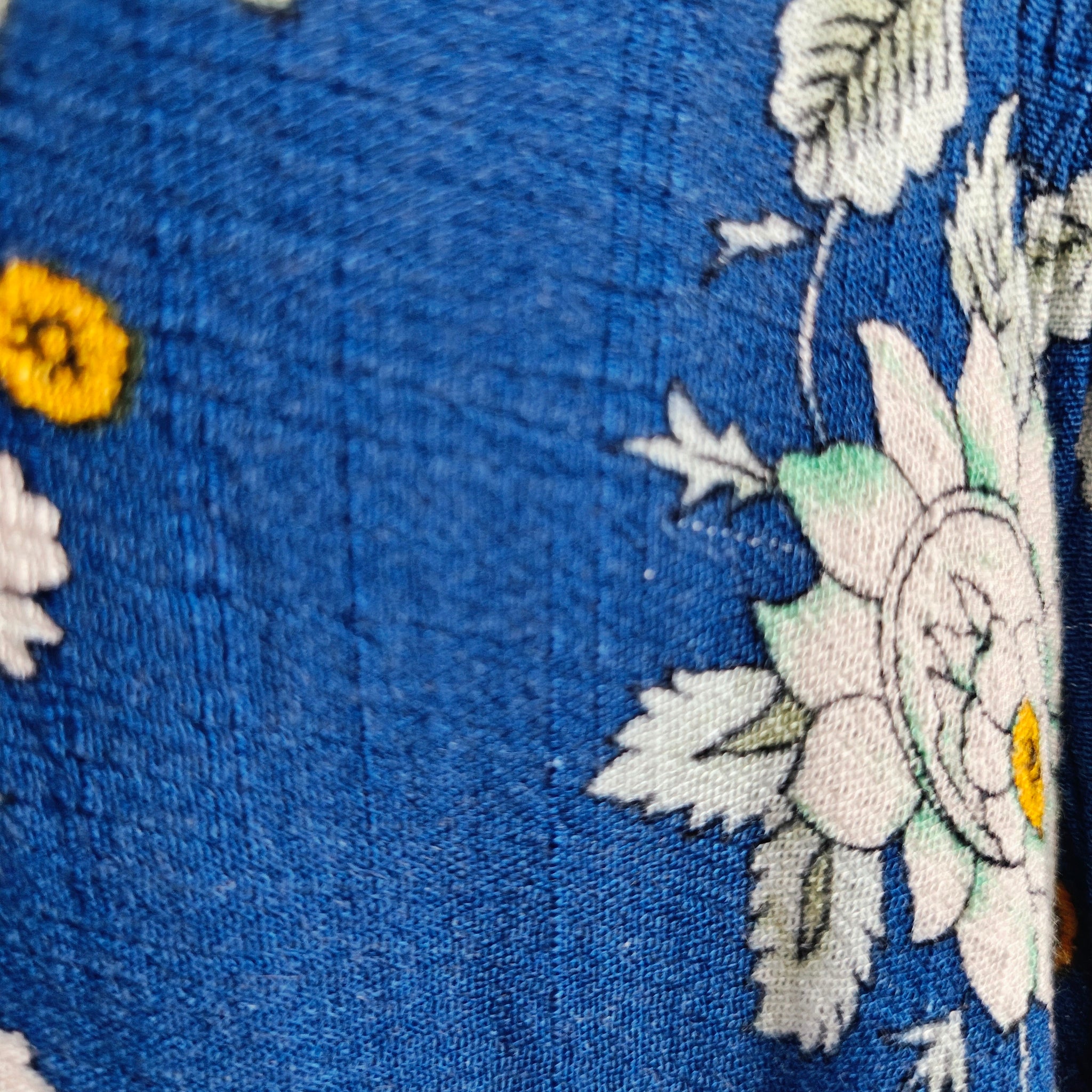 Color/Pattern: Blue with white and small yellow/gold floral print