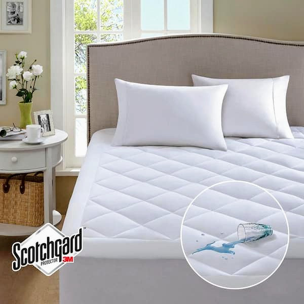 - Waterproof mattress protector with 3M Scotchgard moisture treatment easy to wash stains or prevent water spill