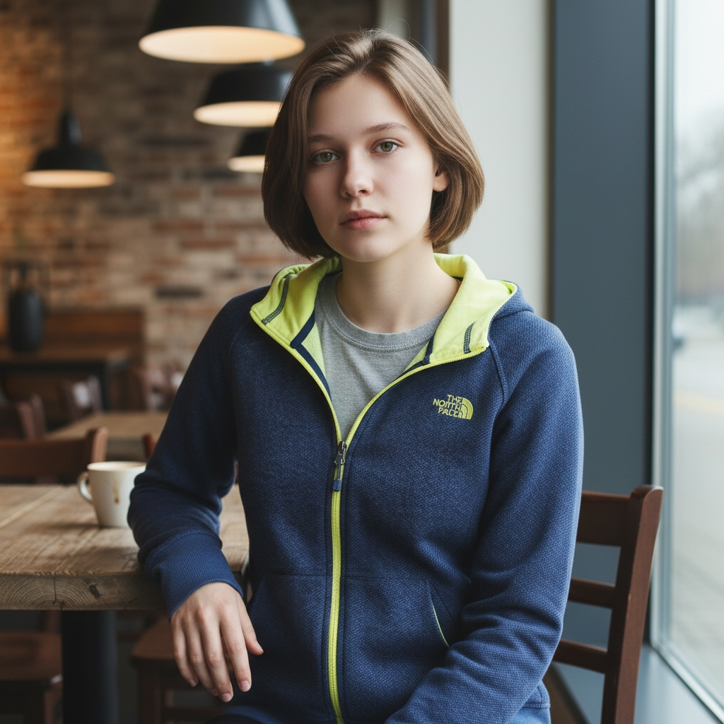 It is made from a cotton blend double-knit fabric, featuring a full front zip closure, a hood with drawstrings, and front hand pockets. The iconic North Face logo is embroidered on the left chest area.