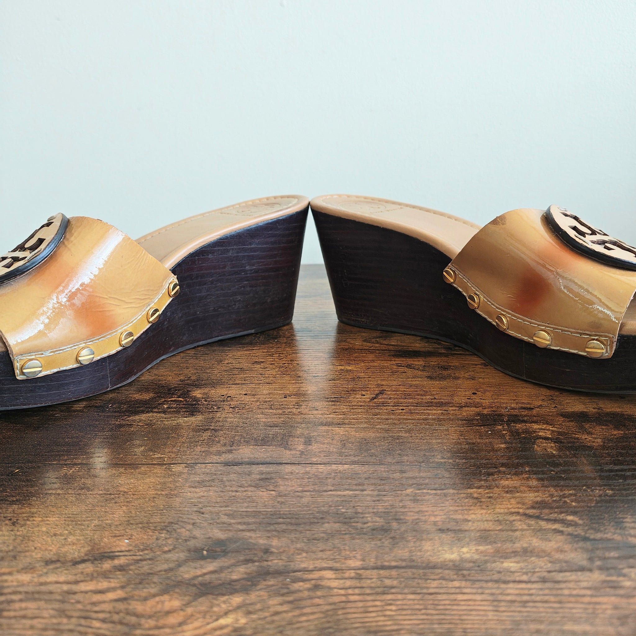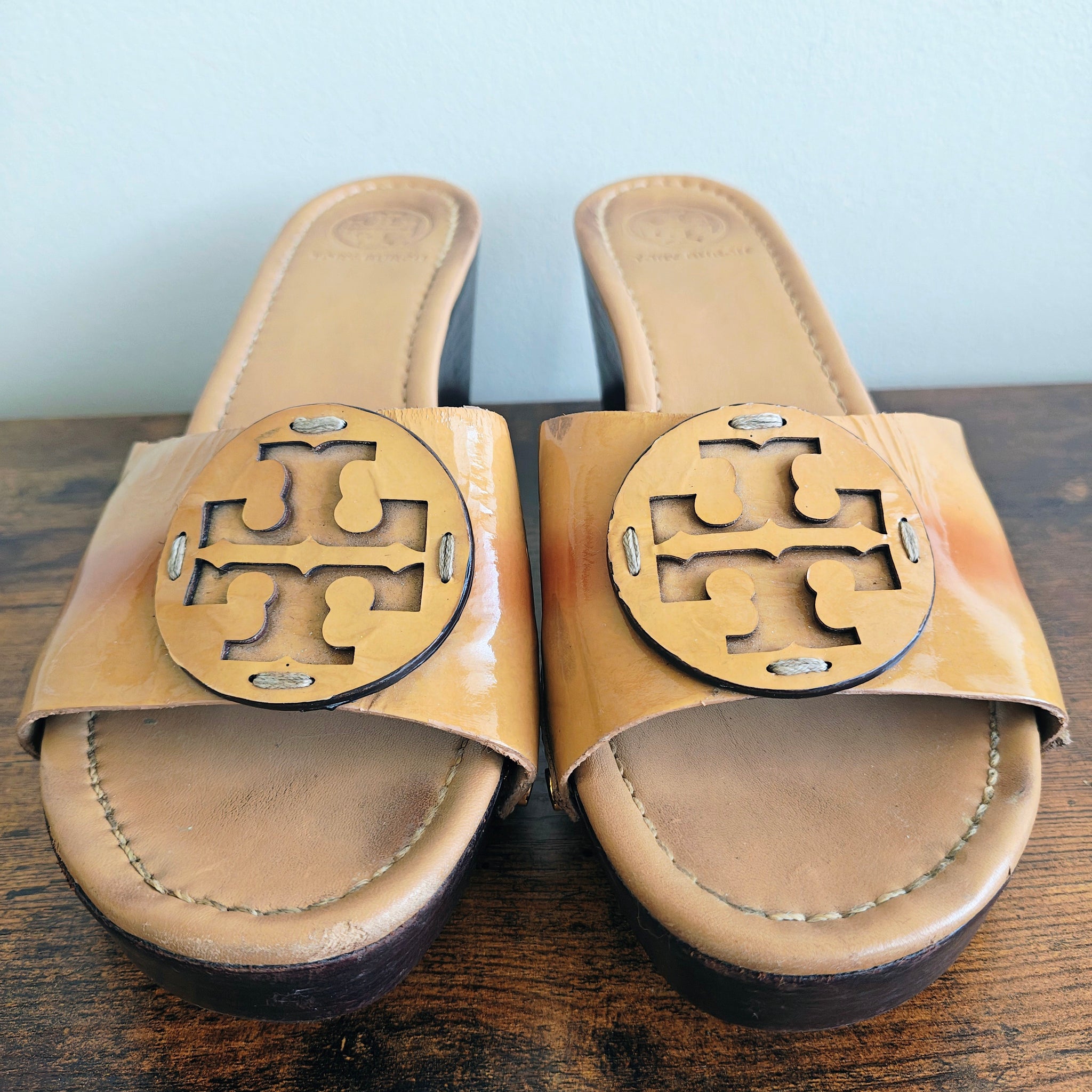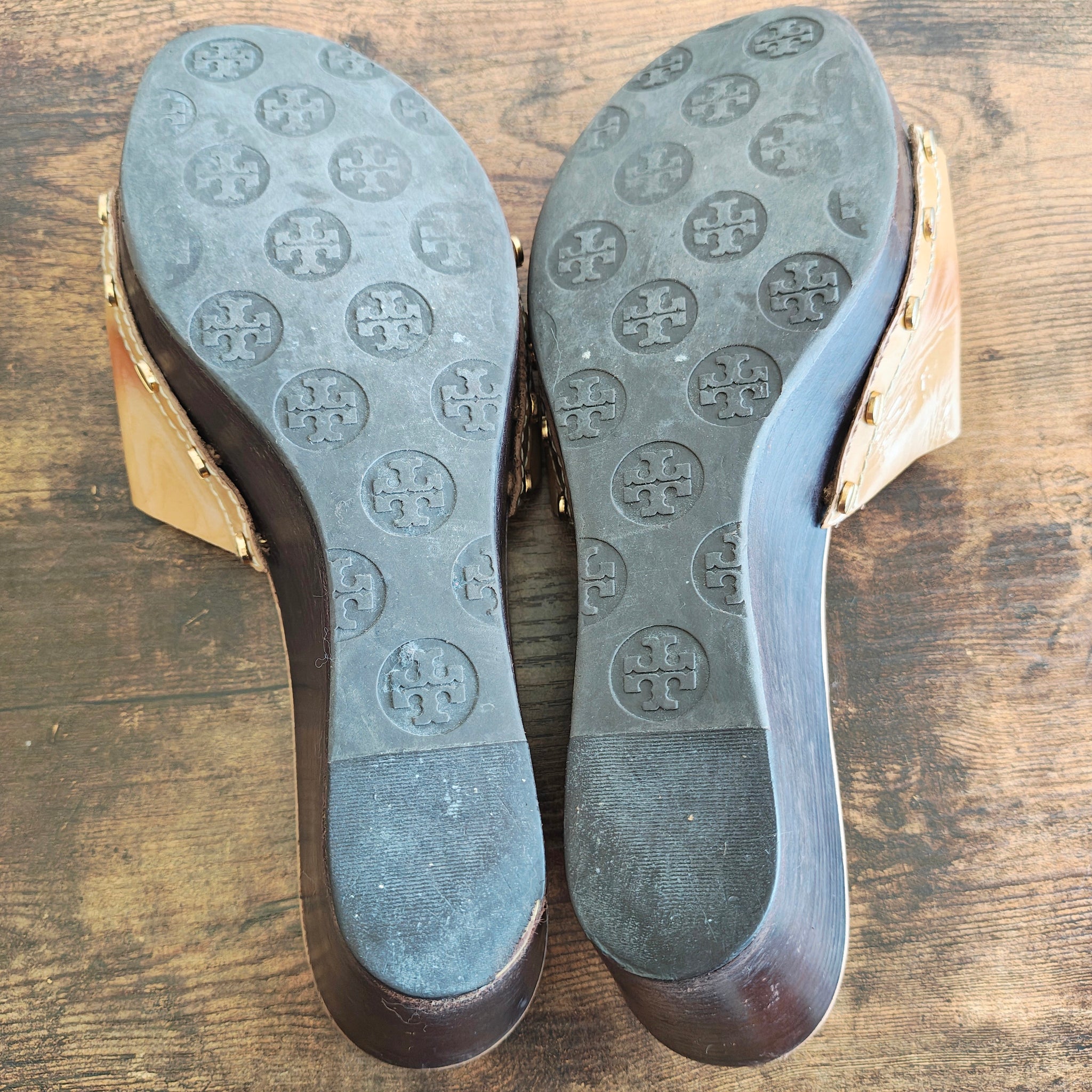 Tory Burch Patti Patent Leather Wedge Sandals.