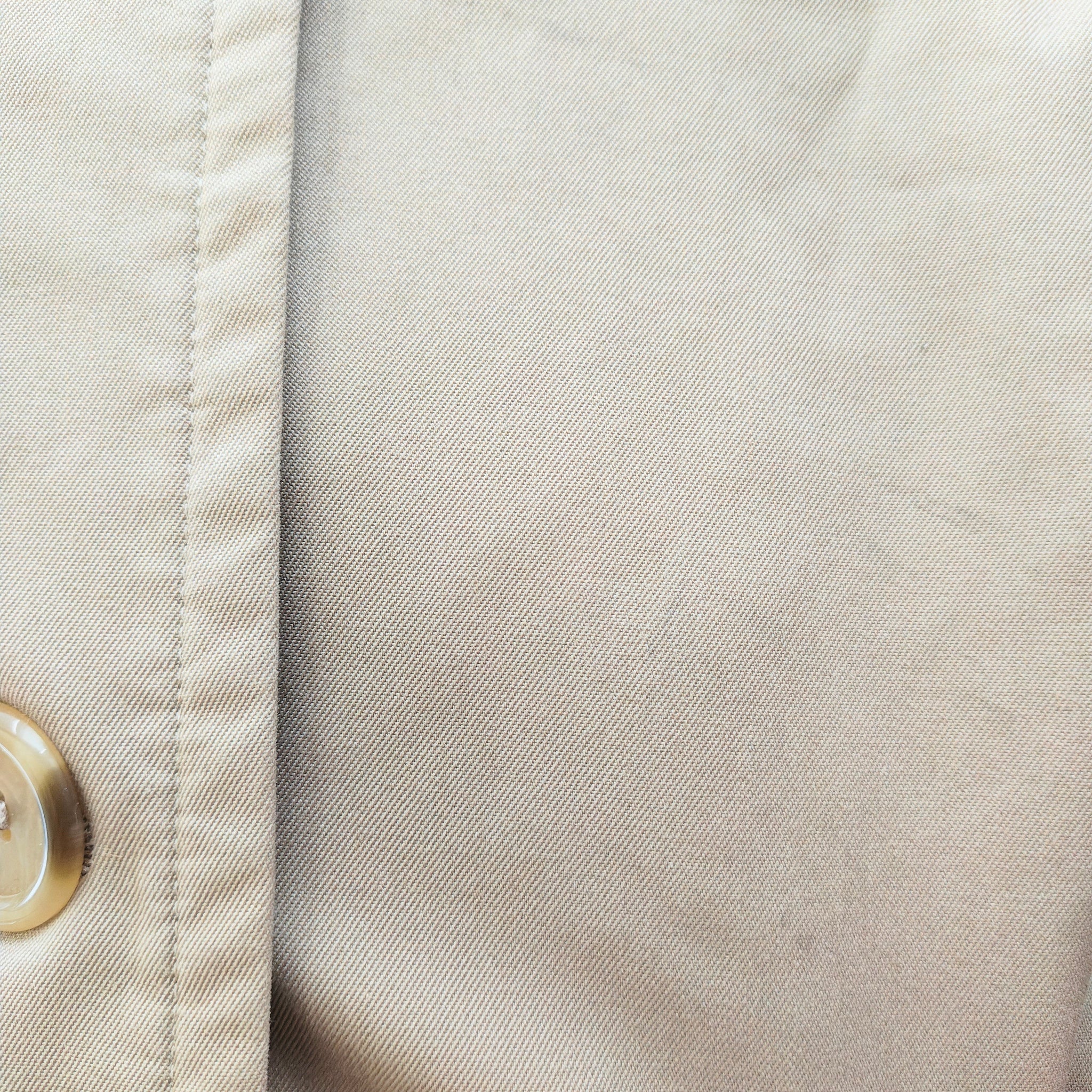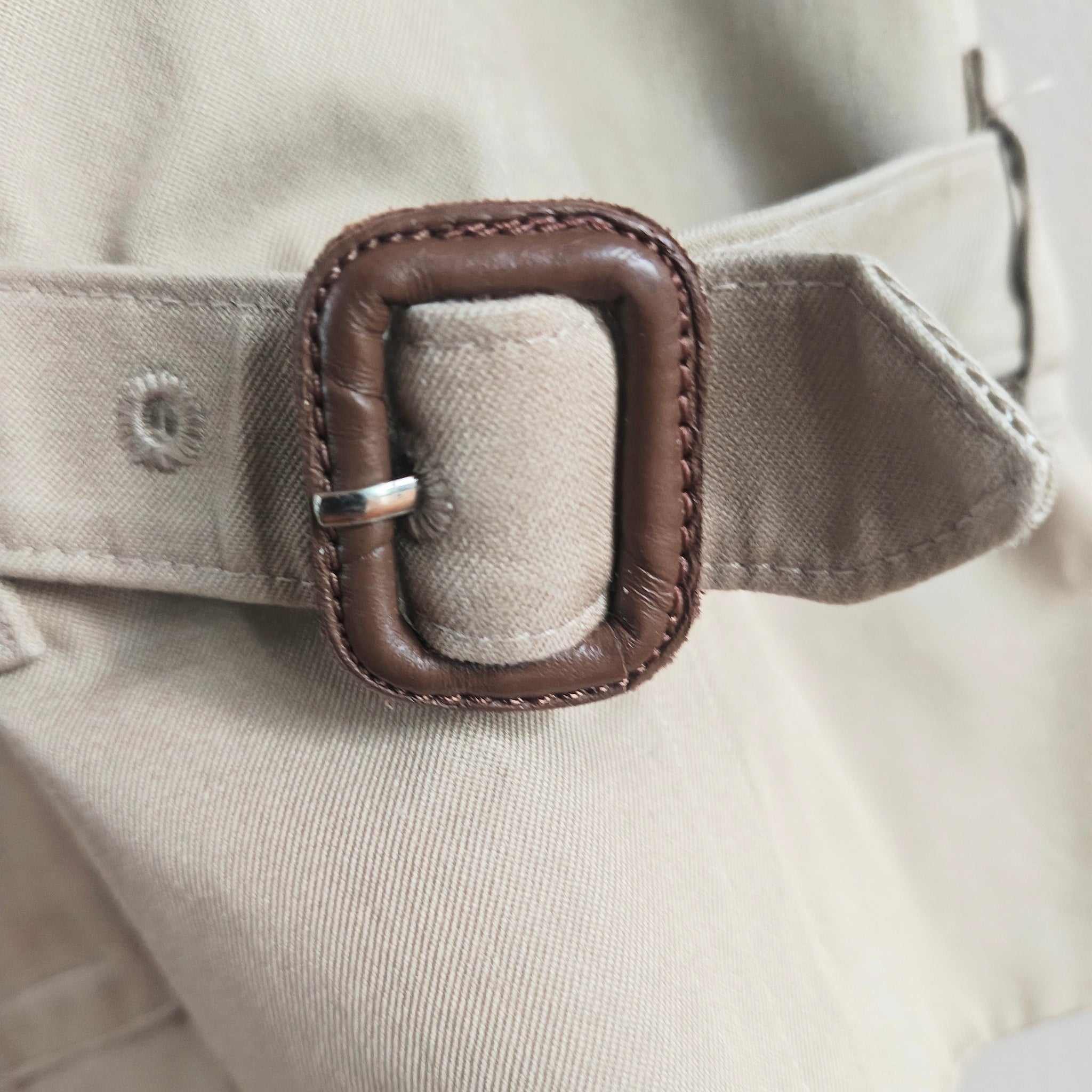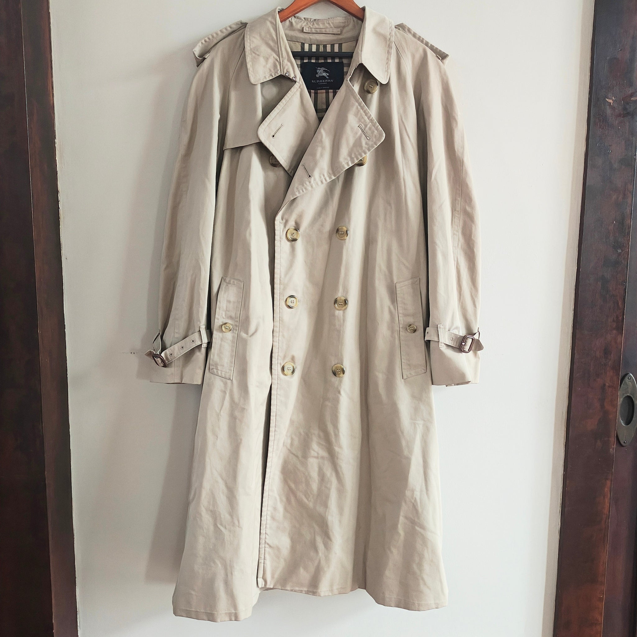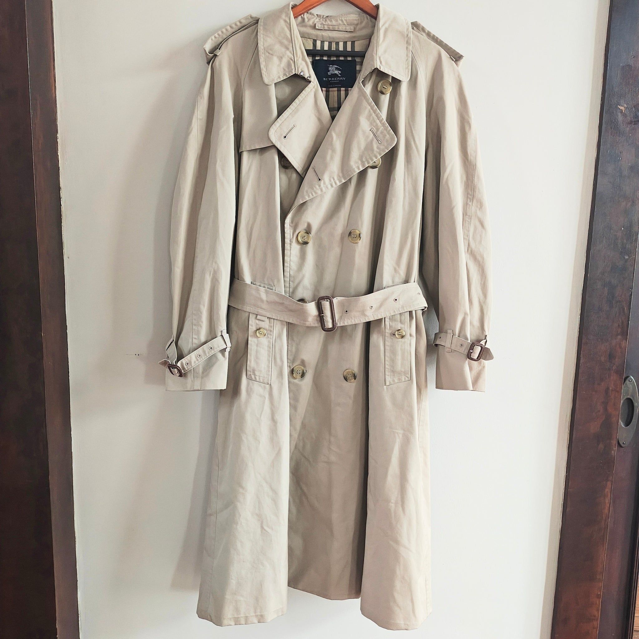 Vintage Burberry trench coat, with "Burberry London" branding on the label, which was used during a transition period around 1998-1999. Authentic Heritage Trench Coats from the brand are known for being made in England from gabardine fabric, a weather-resistant material invented by the founder.