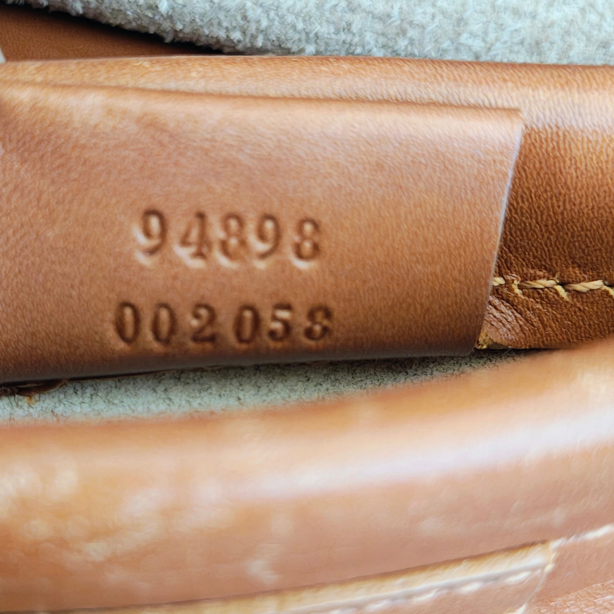 Condition: Pre-owned and shows signs of use. There is surface dirt that will require professional cleaning. This was taken to our cleaner with several other items and they would not clean Gucci suede. It will need to go to a cleaner that specializes in suede. Interior is in decent condition. Straps are in tact and functional. Hardware is in good come and leather Gucci tag remains. Please see all photos for exact condition.